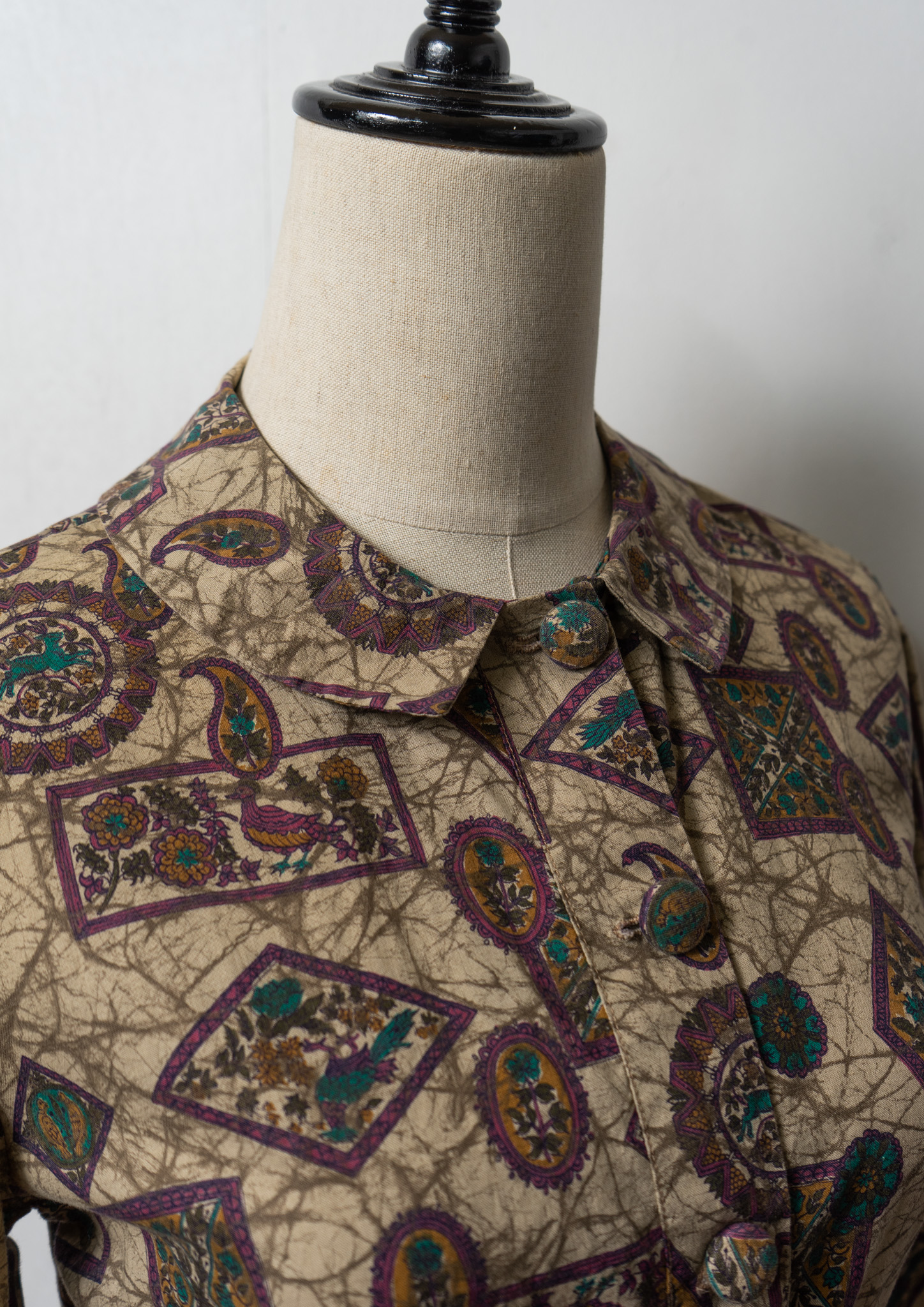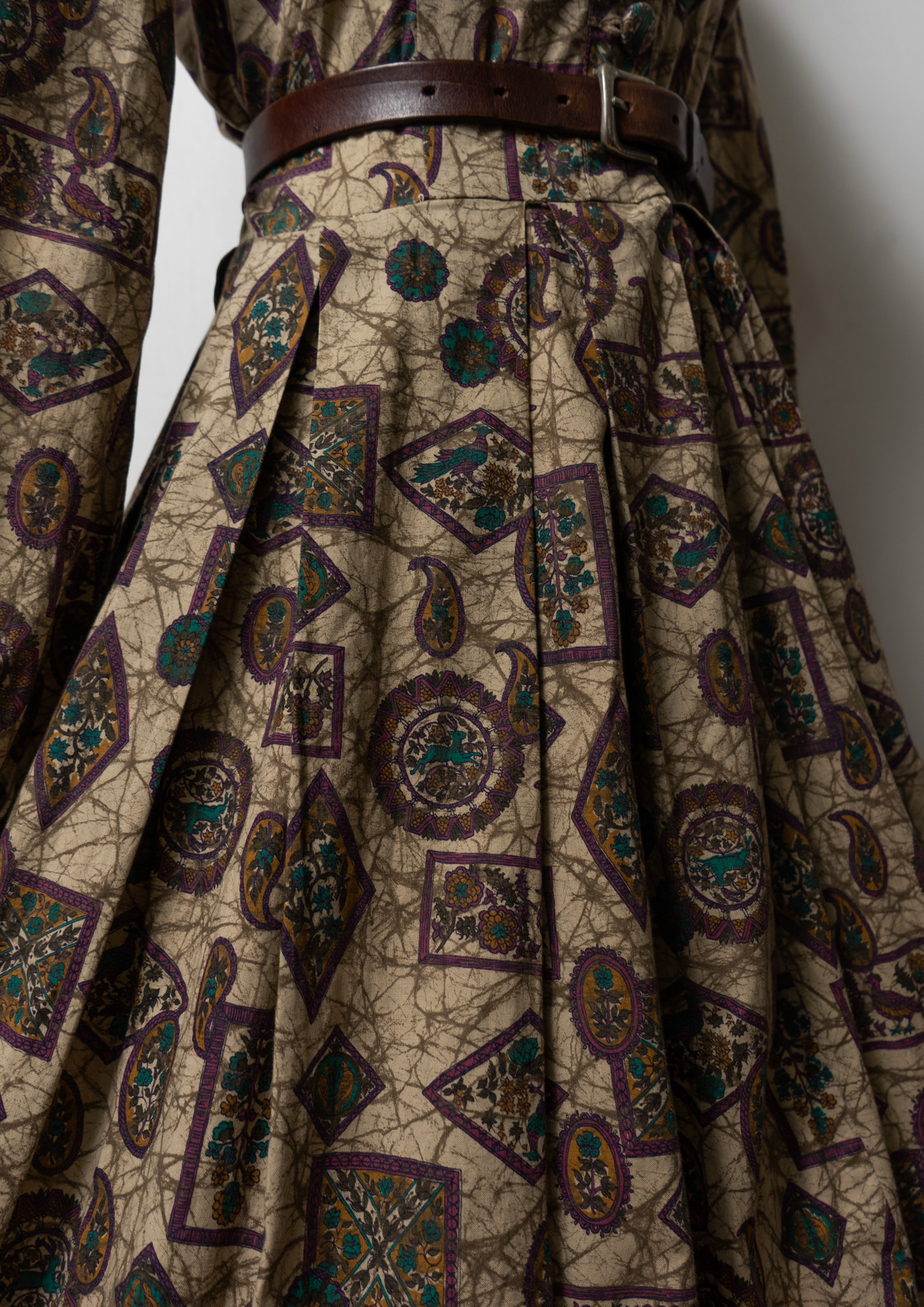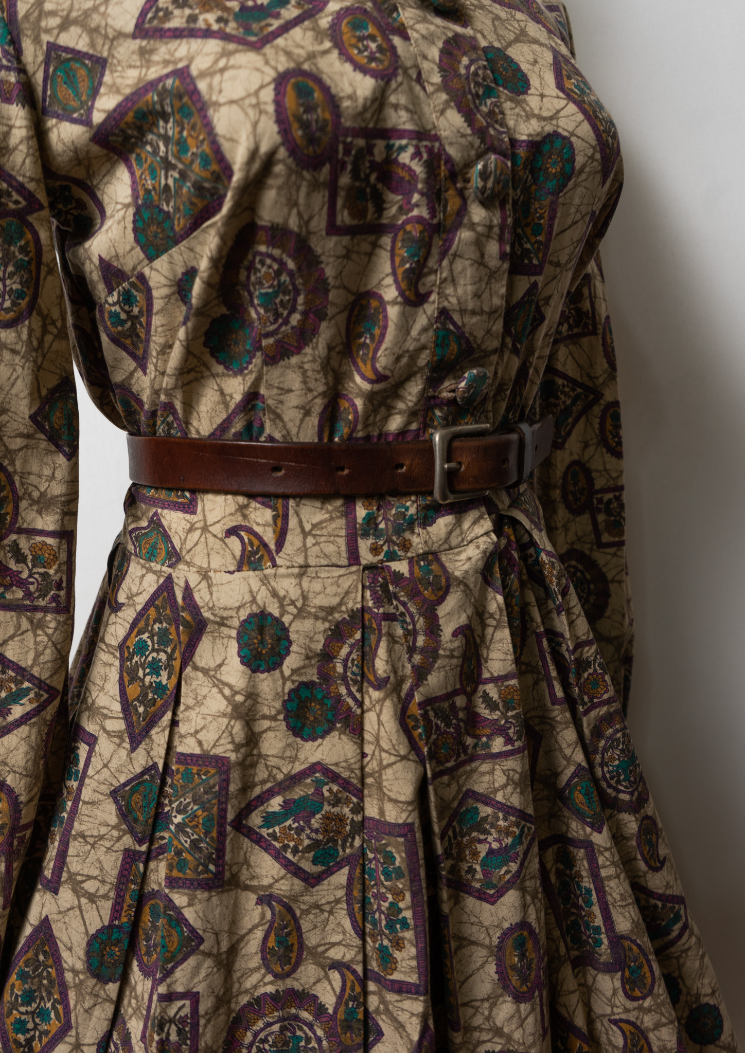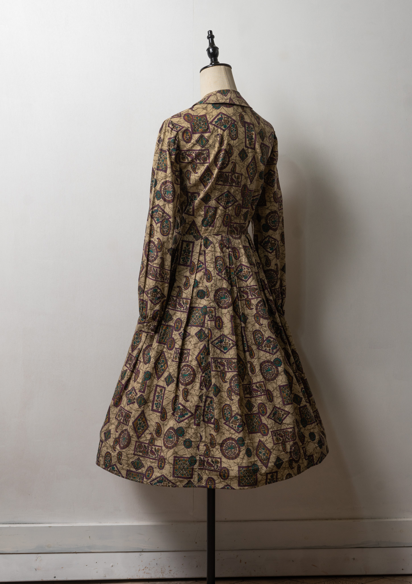 70's Frill Coller Pin Dot Pattern Over Dye Maxi Dress