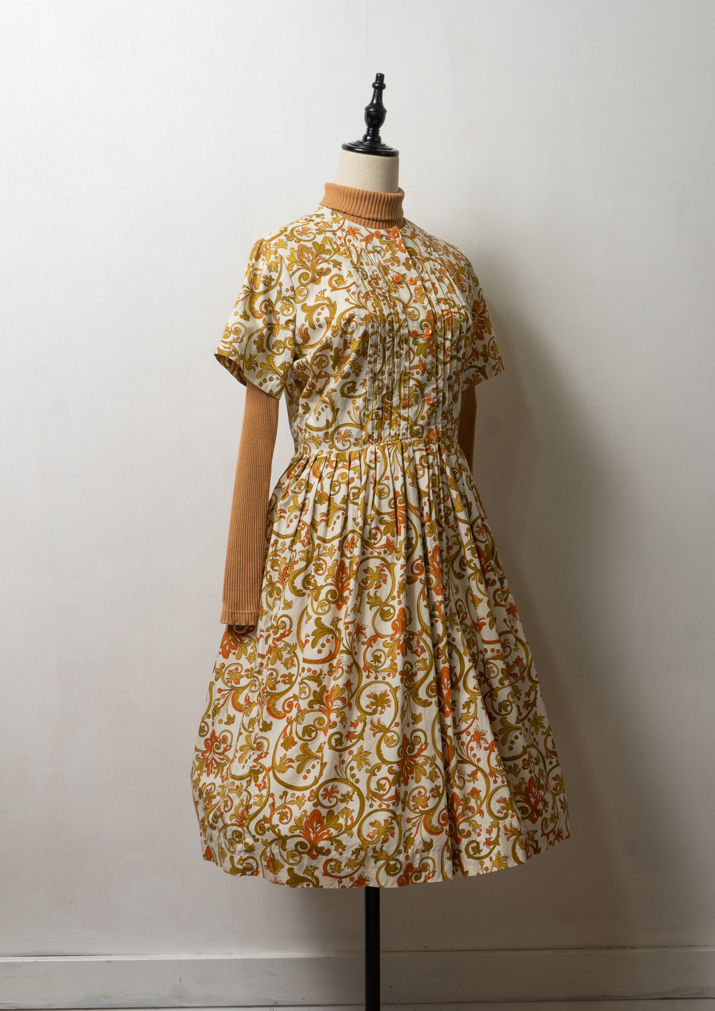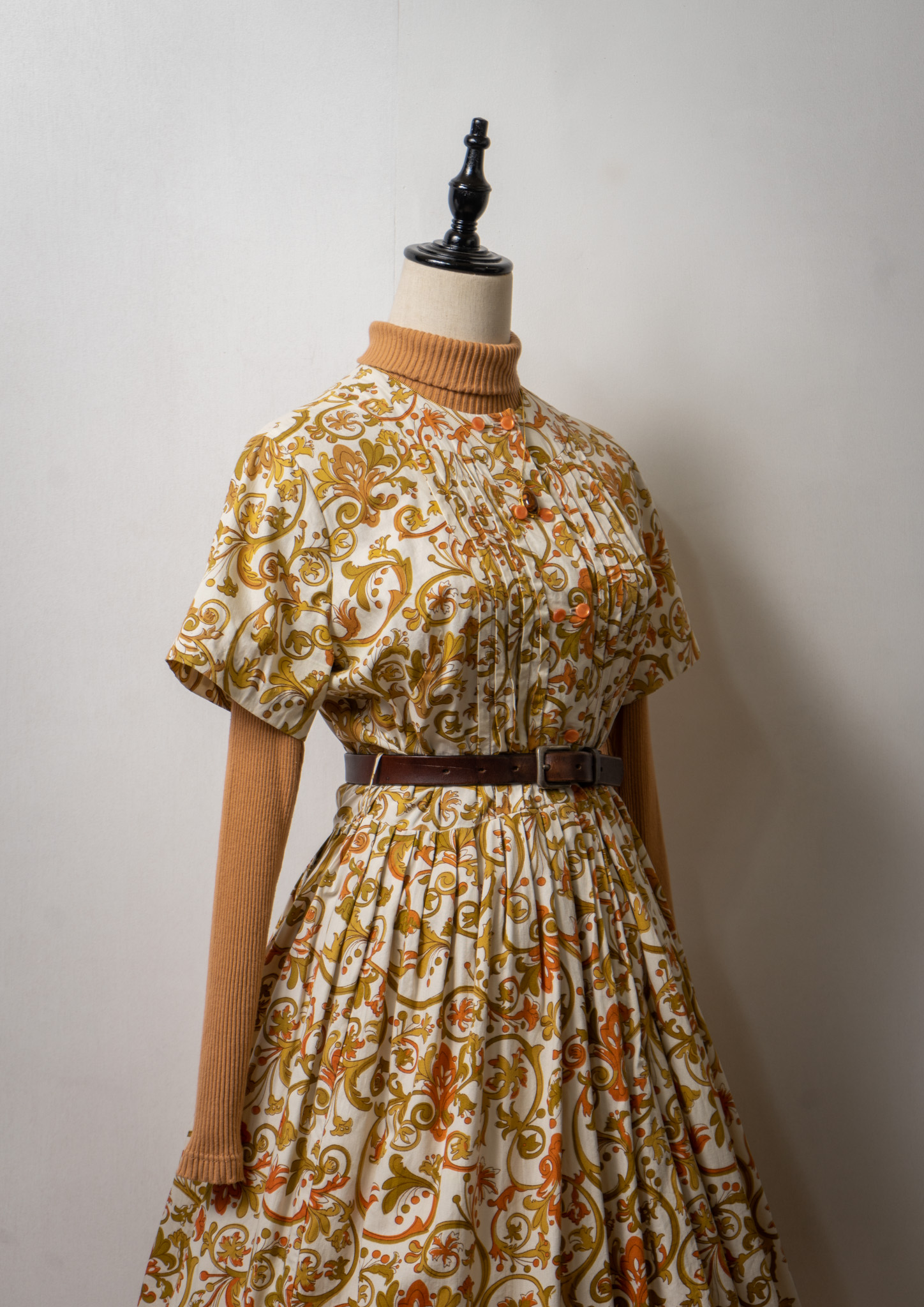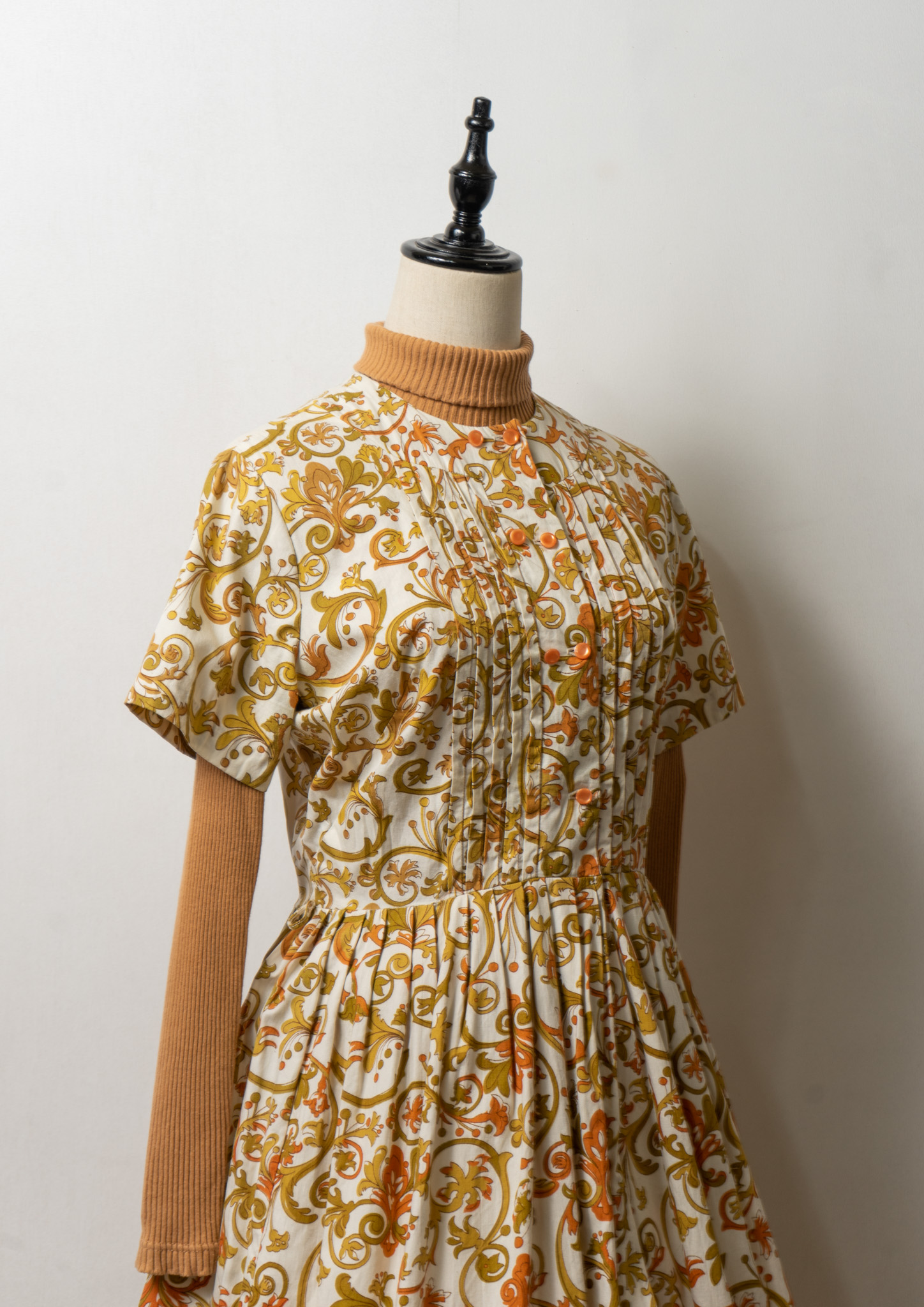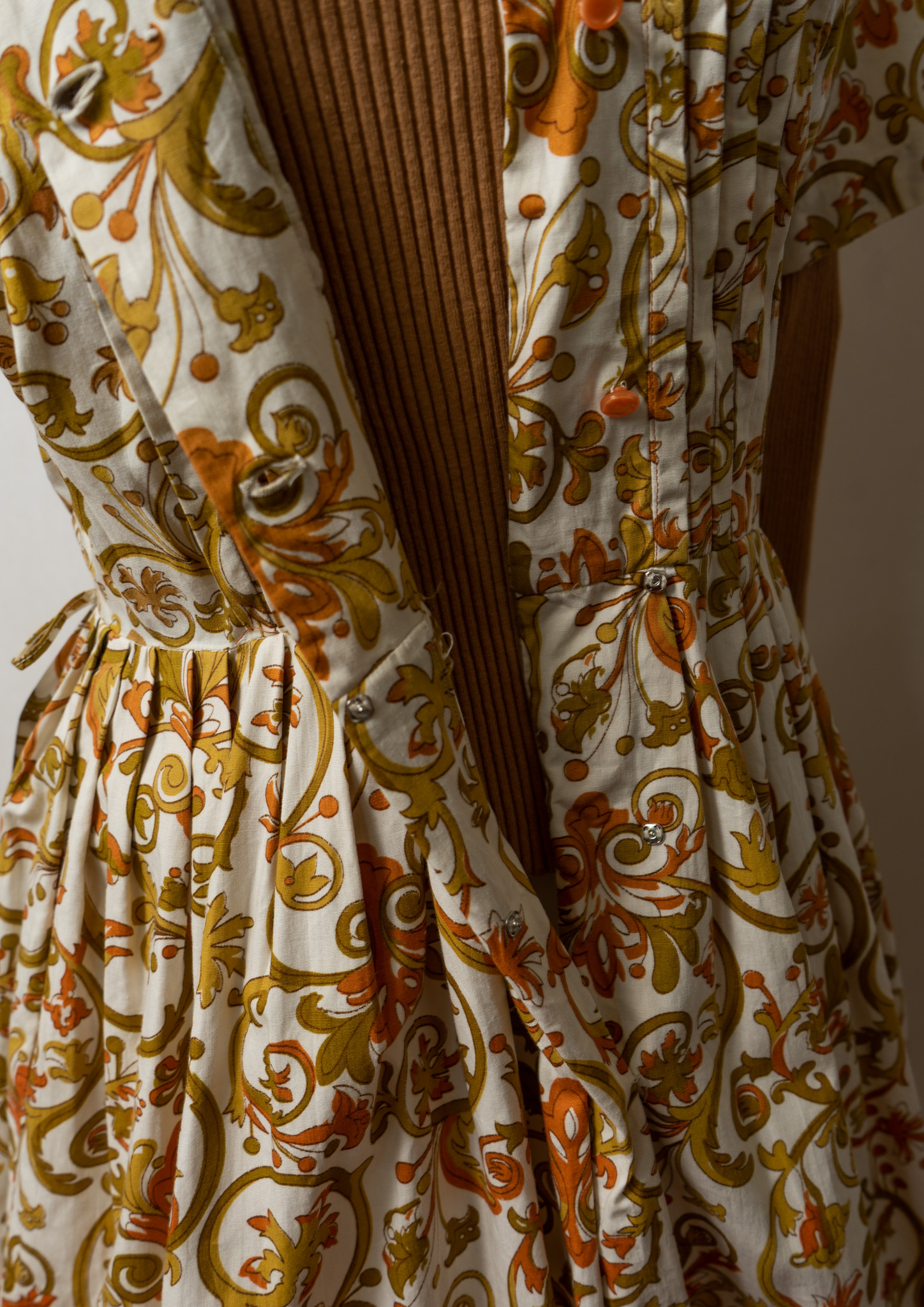 80~90's Unique Button Design Linen Tyrol Sleeveless Dress