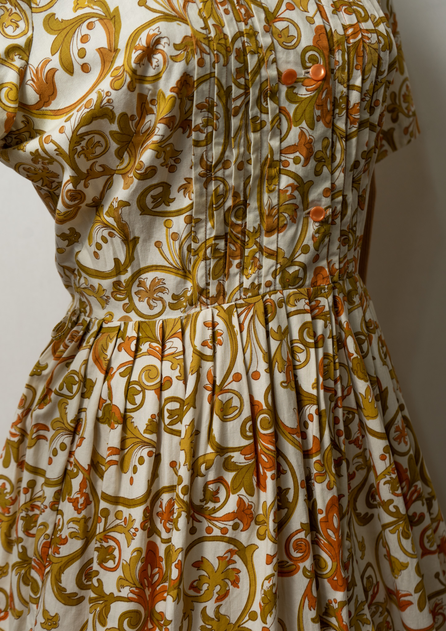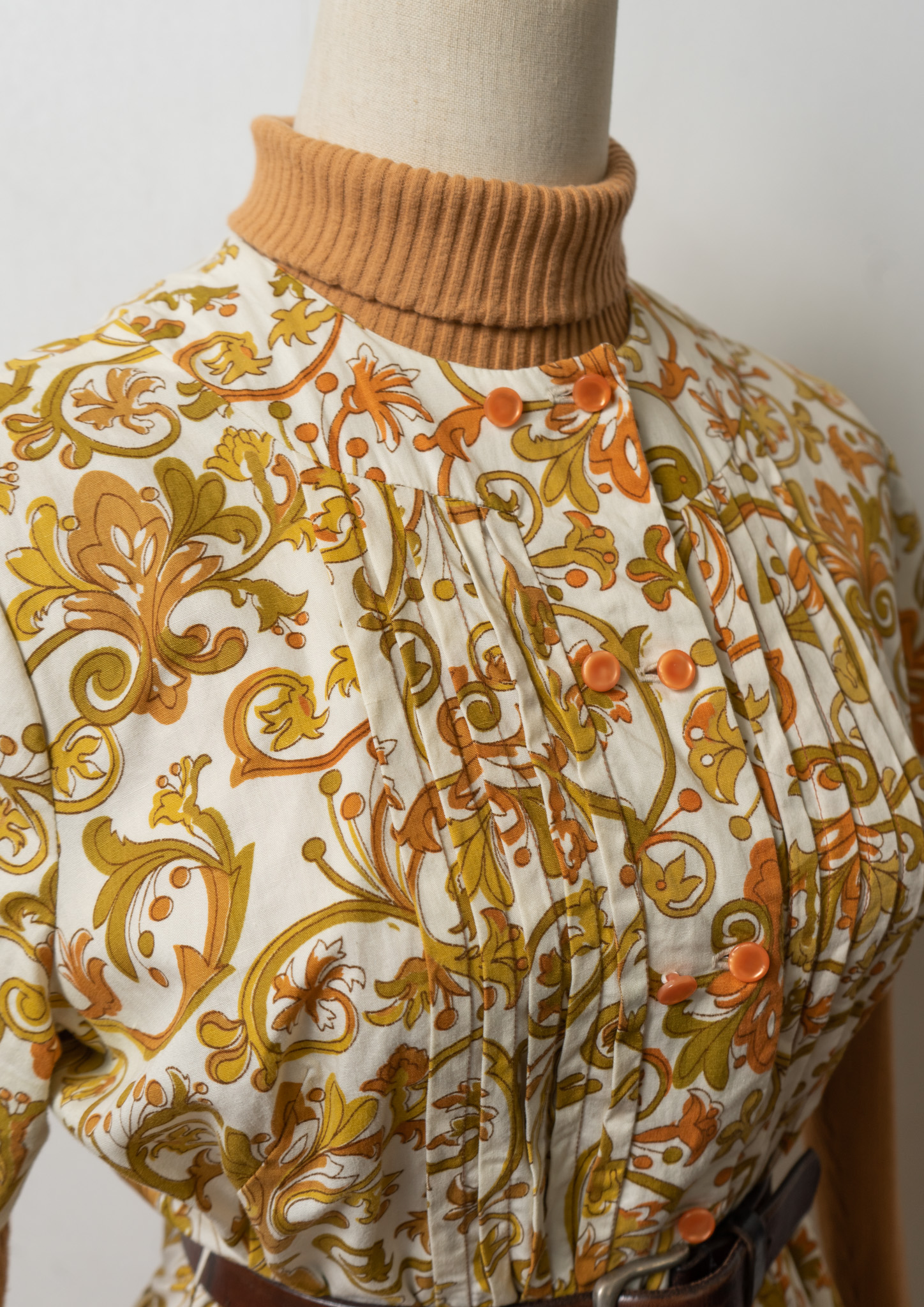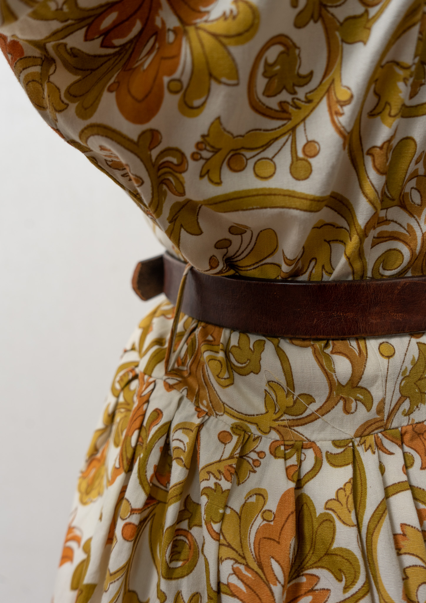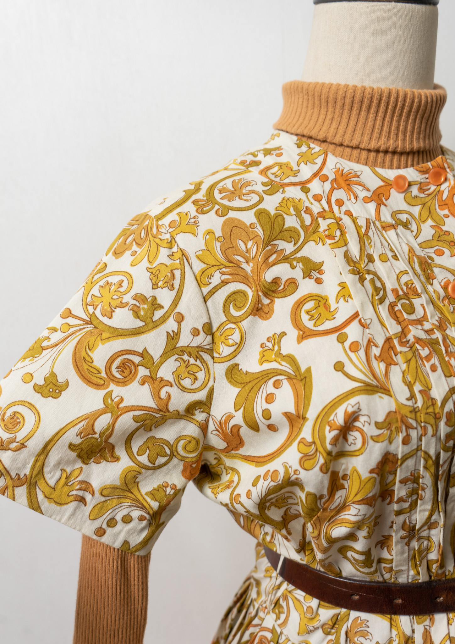80~90's Unique Button Design Linen Tyrol Sleeveless Dress