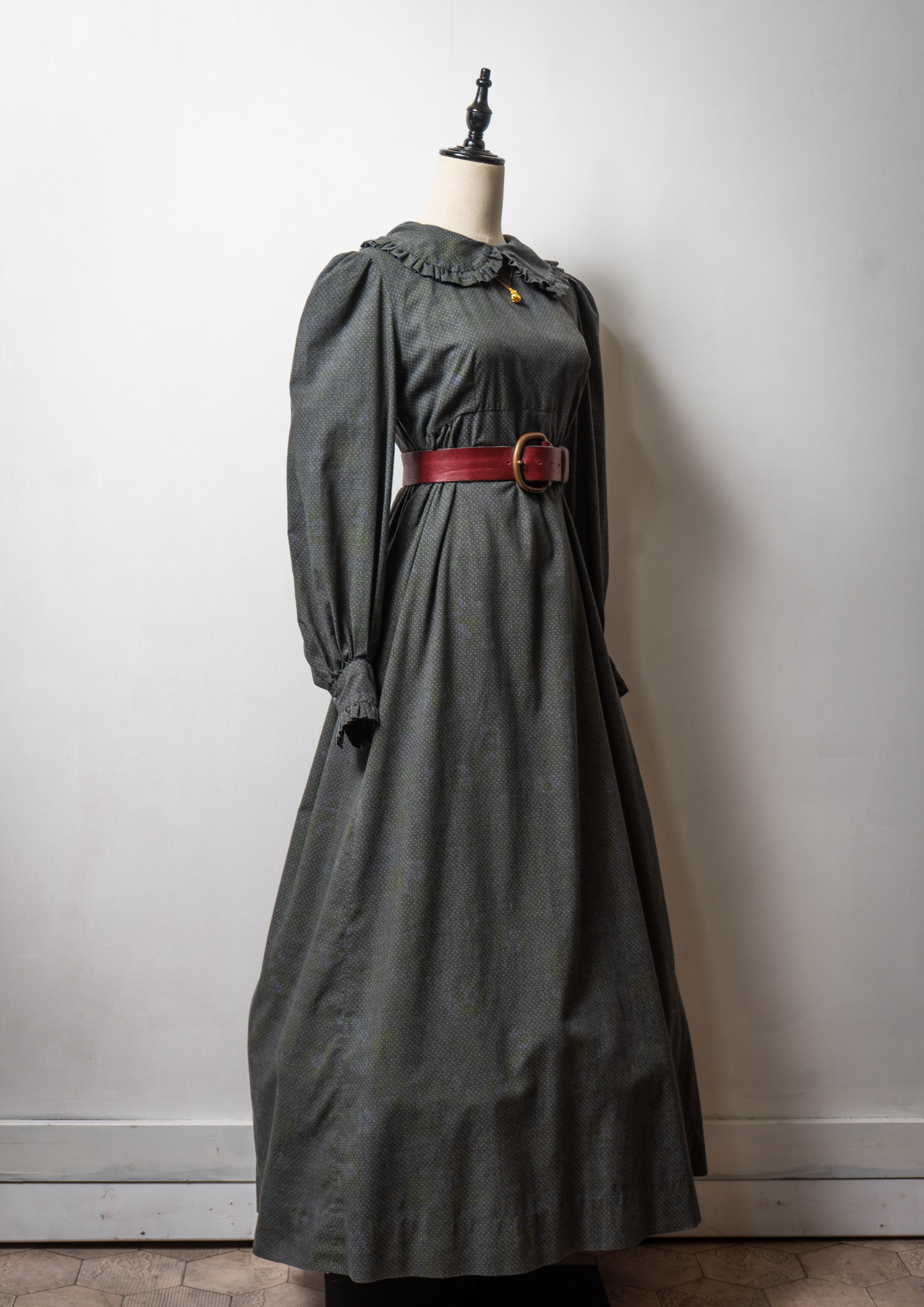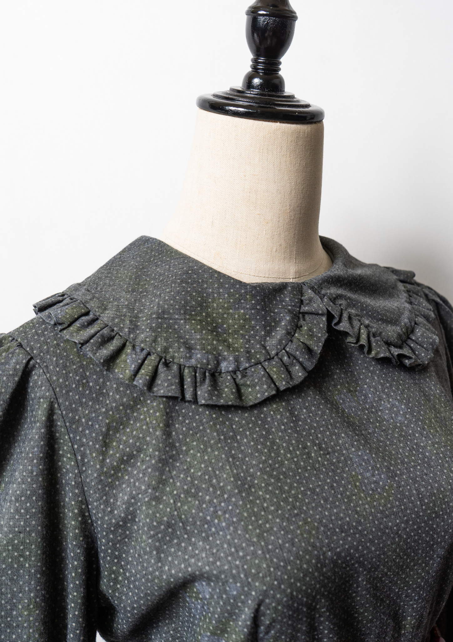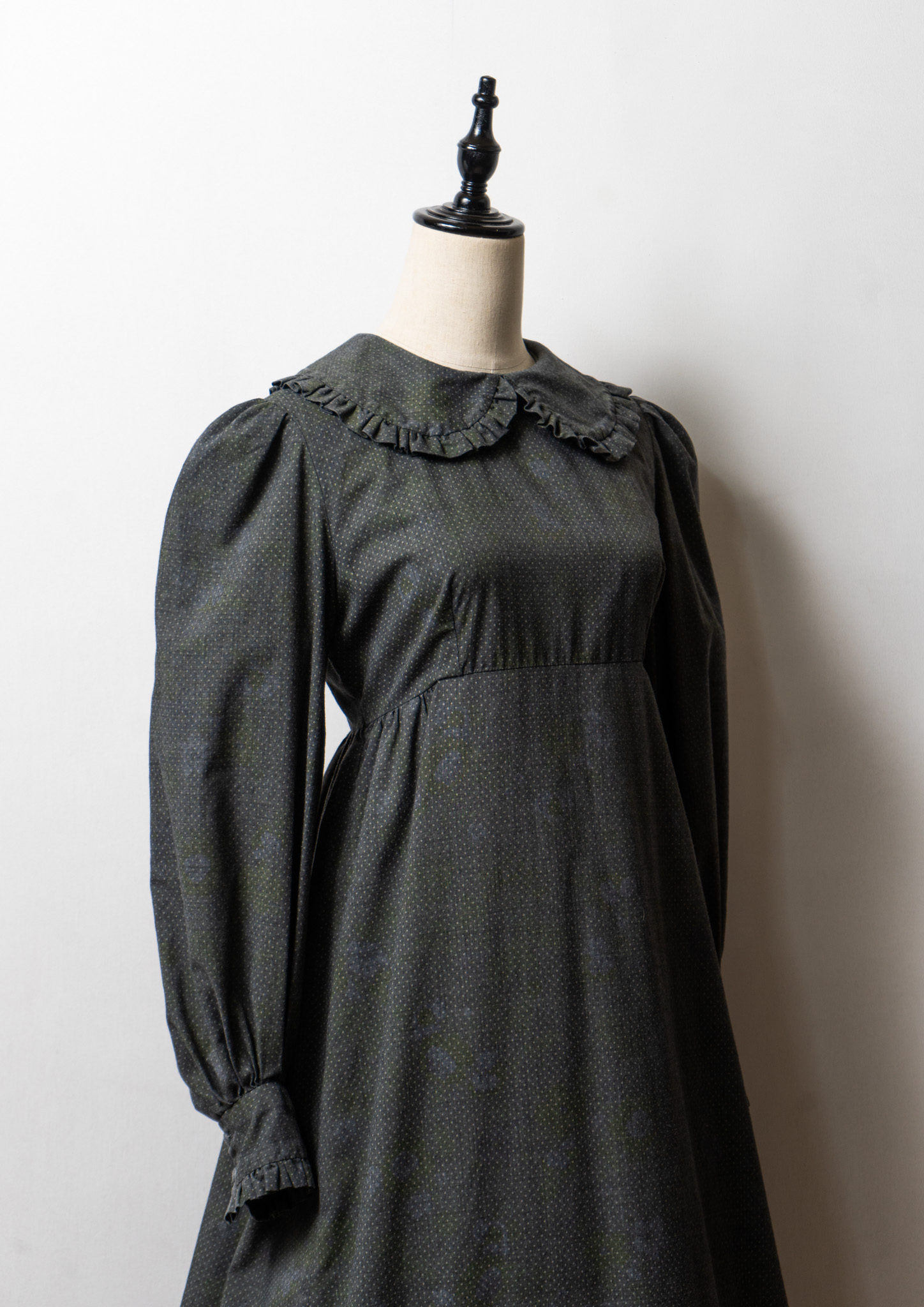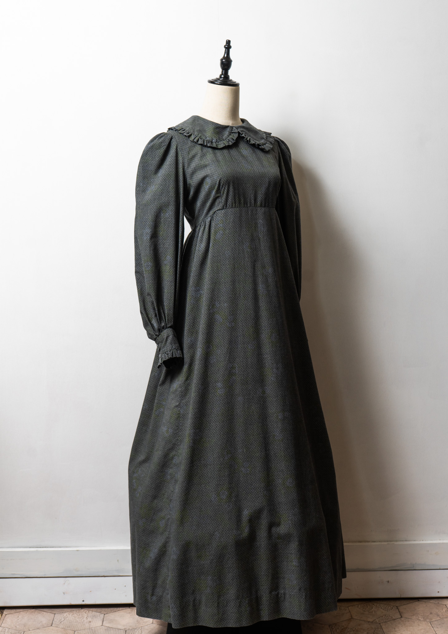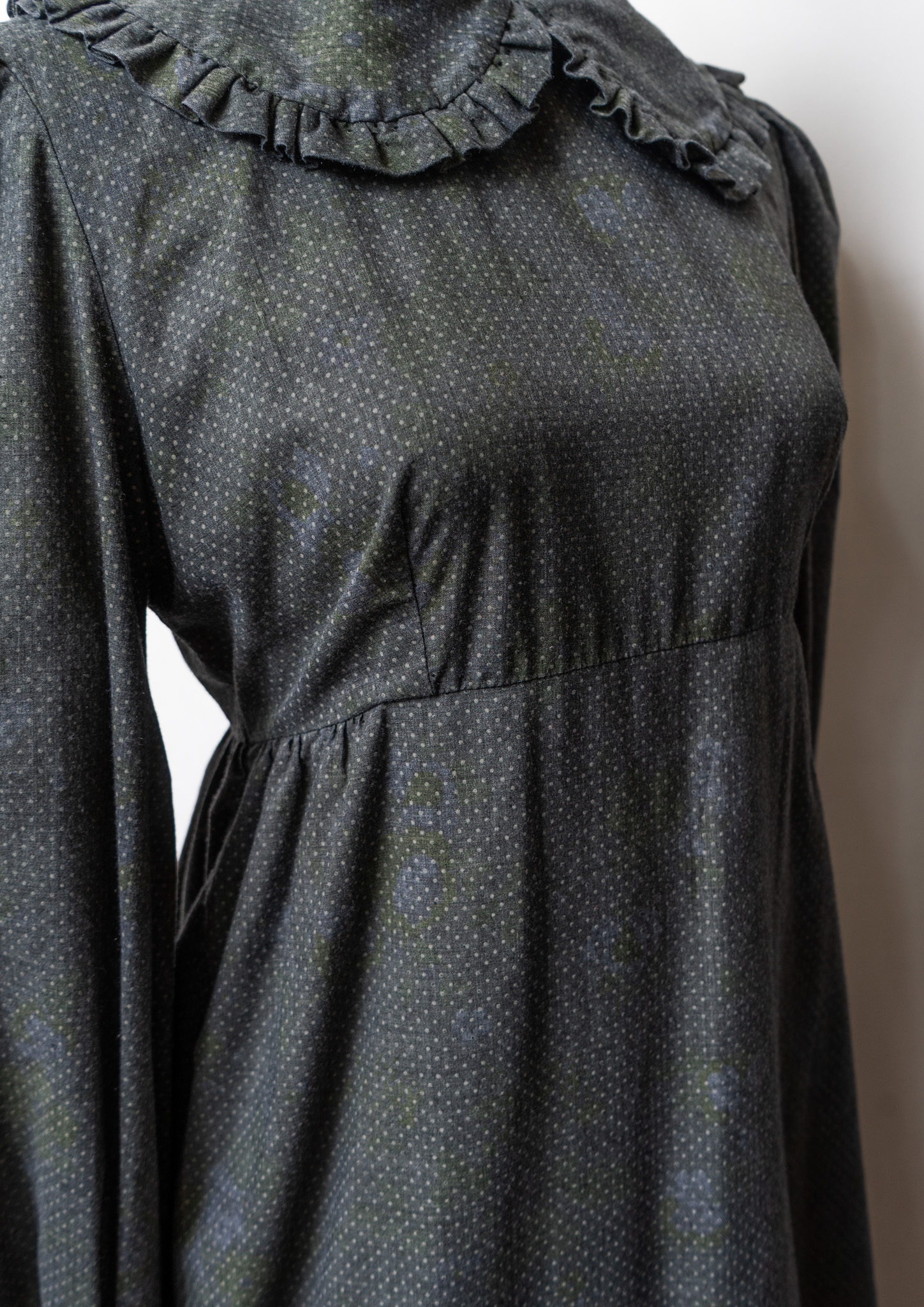 70's Frill Coller Pin Dot Pattern Over Dye Maxi Dress