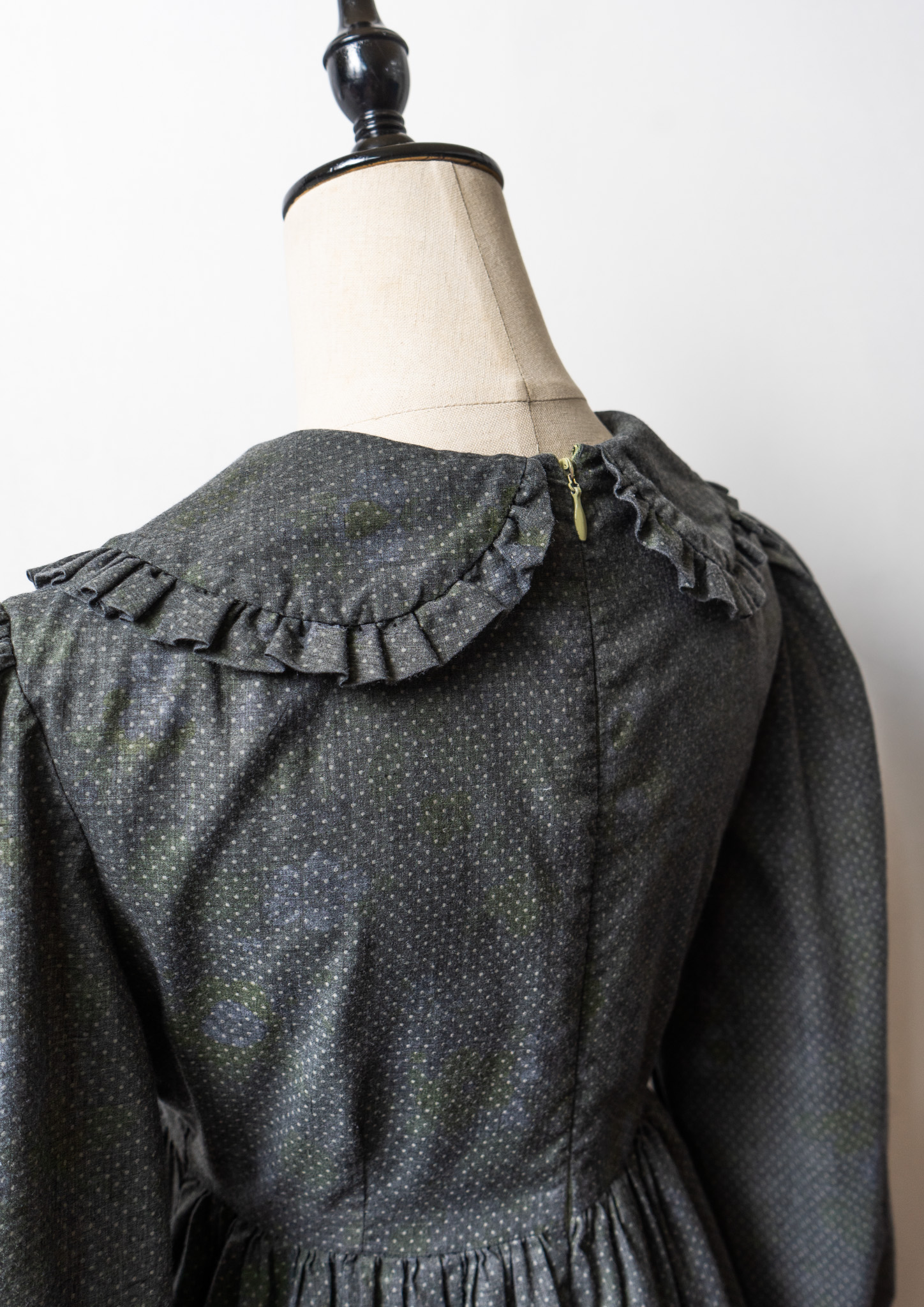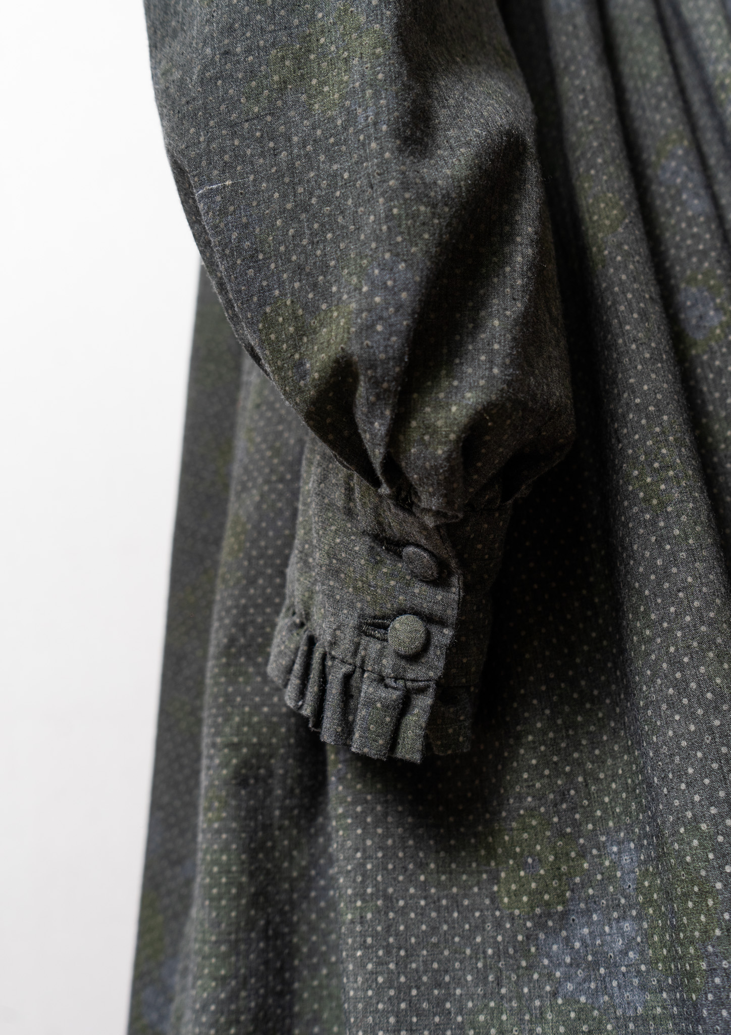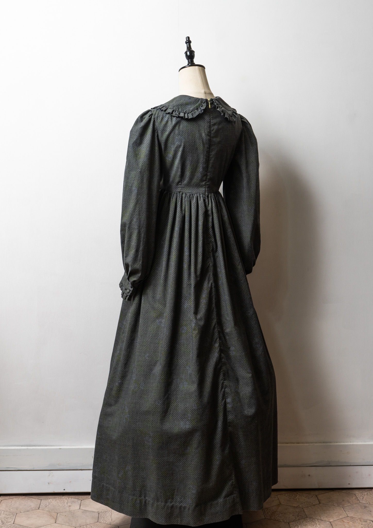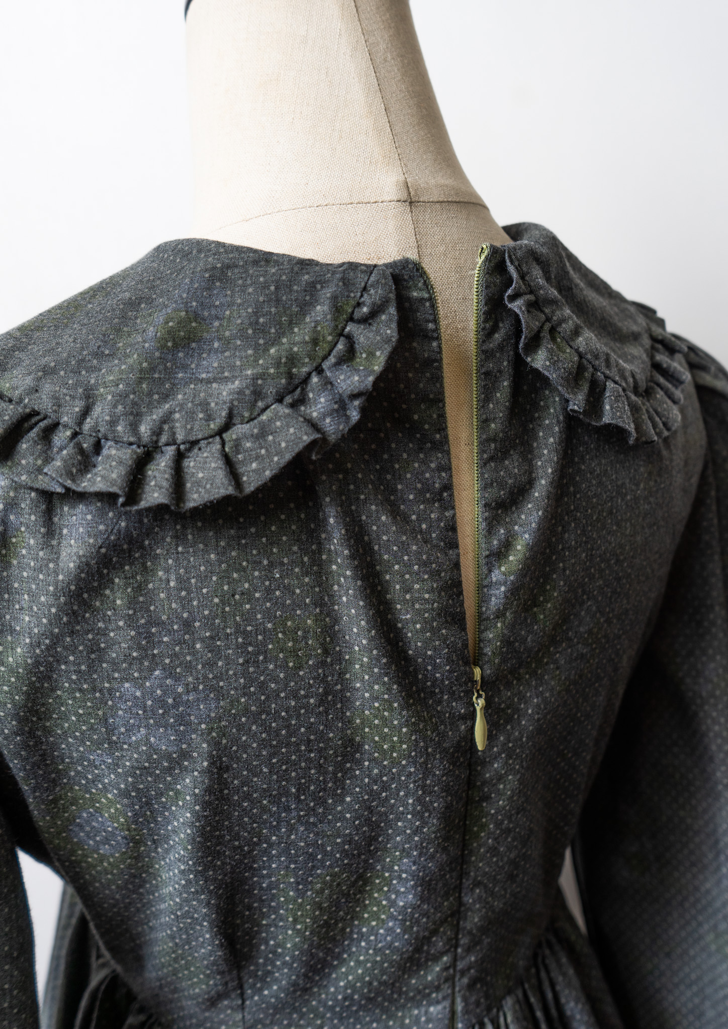 70's Frill Coller Pin Dot Pattern Over Dye Maxi Dress