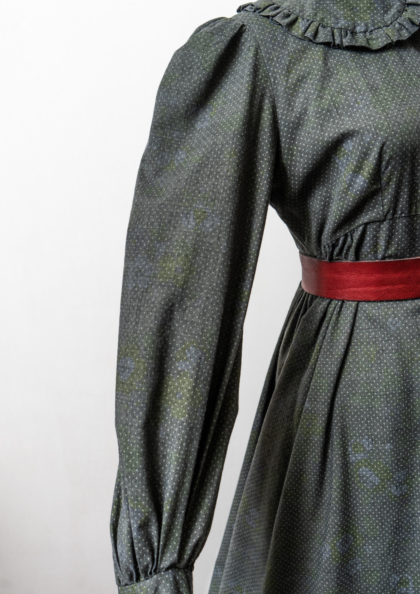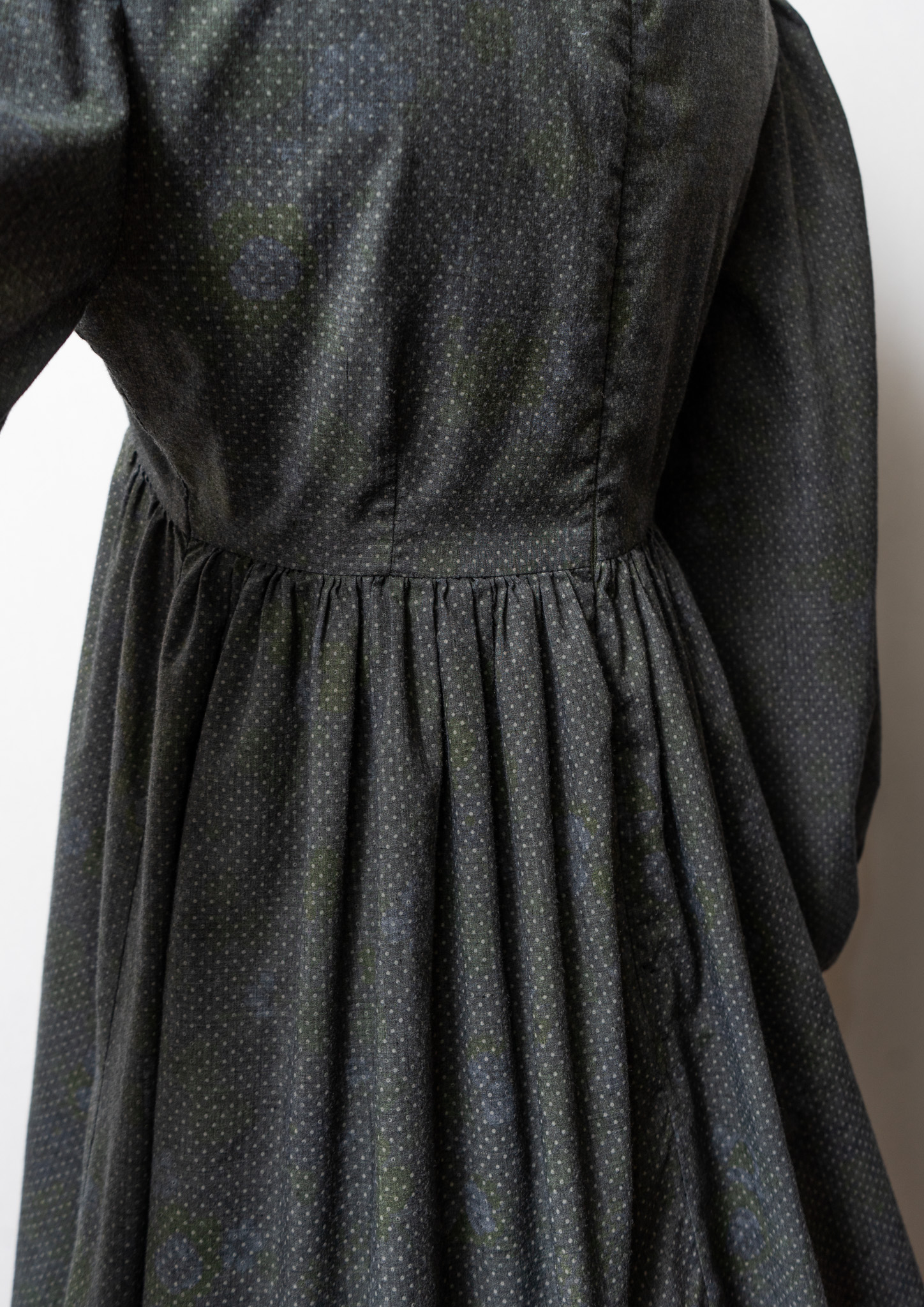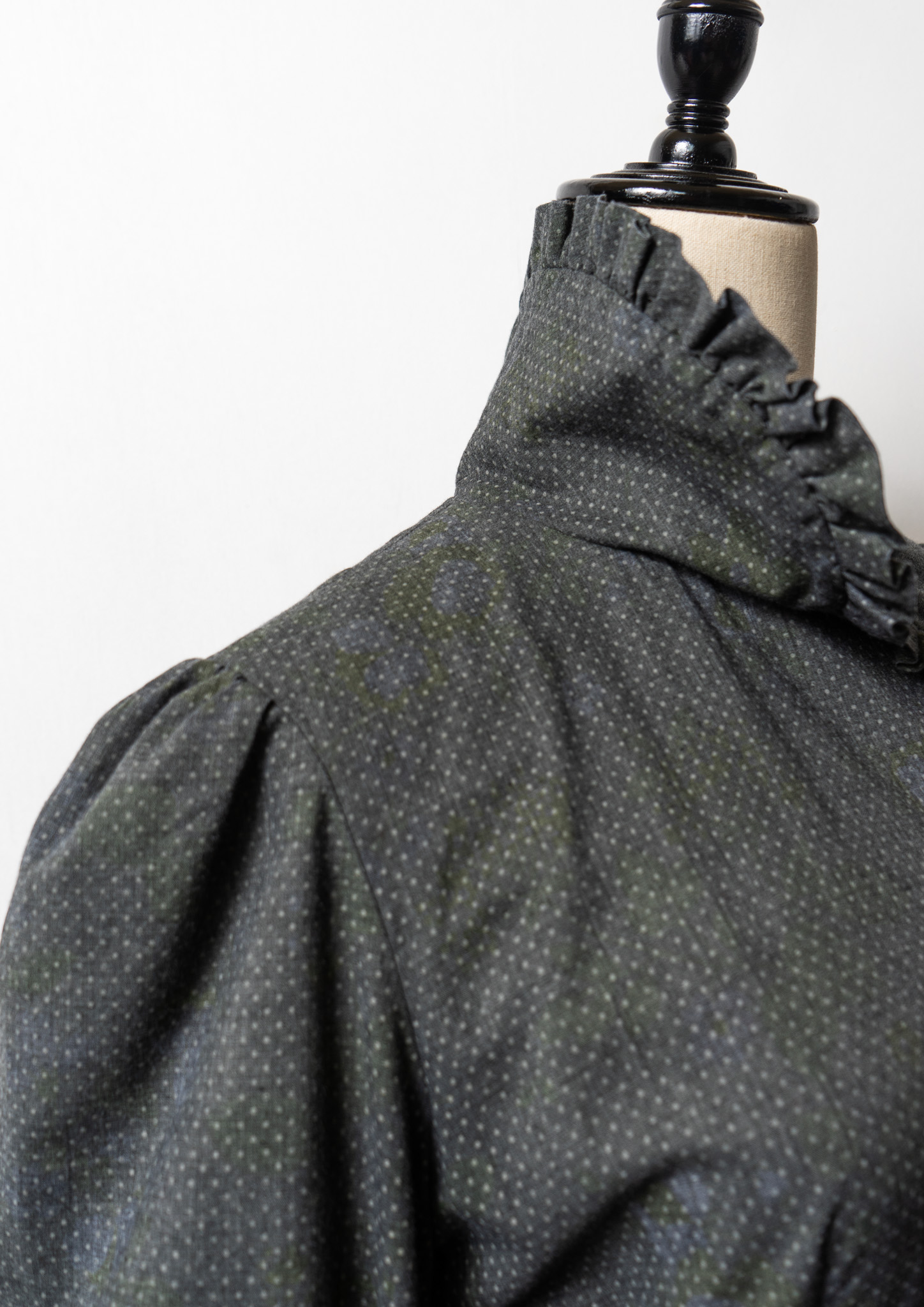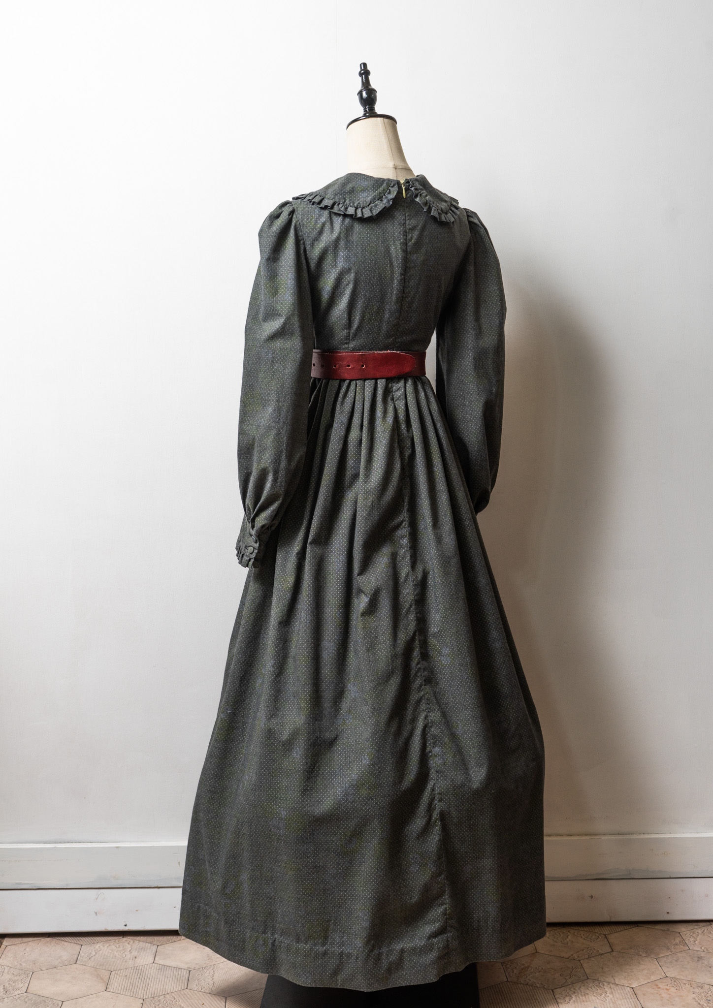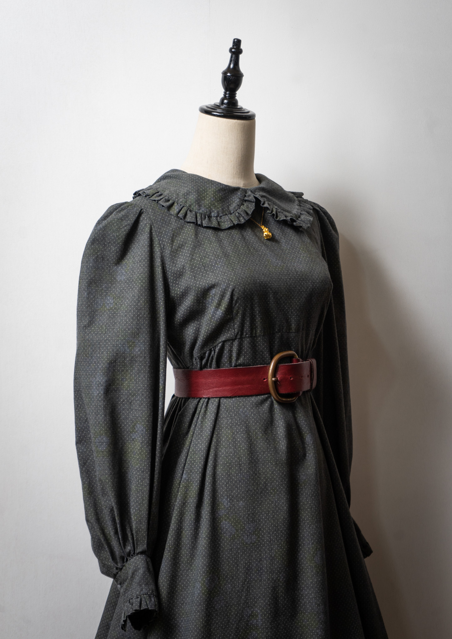 70's Frill Coller Pin Dot Pattern Over Dye Maxi Dress
