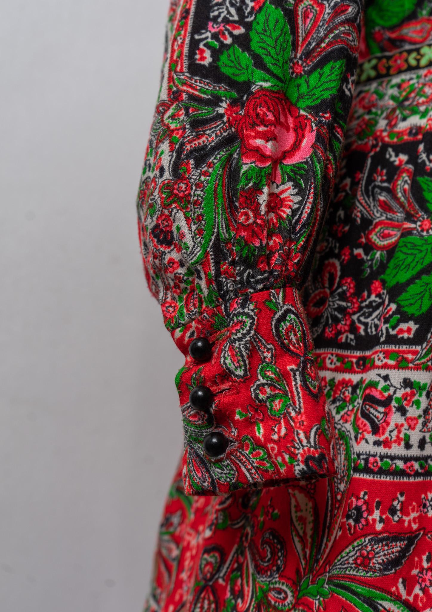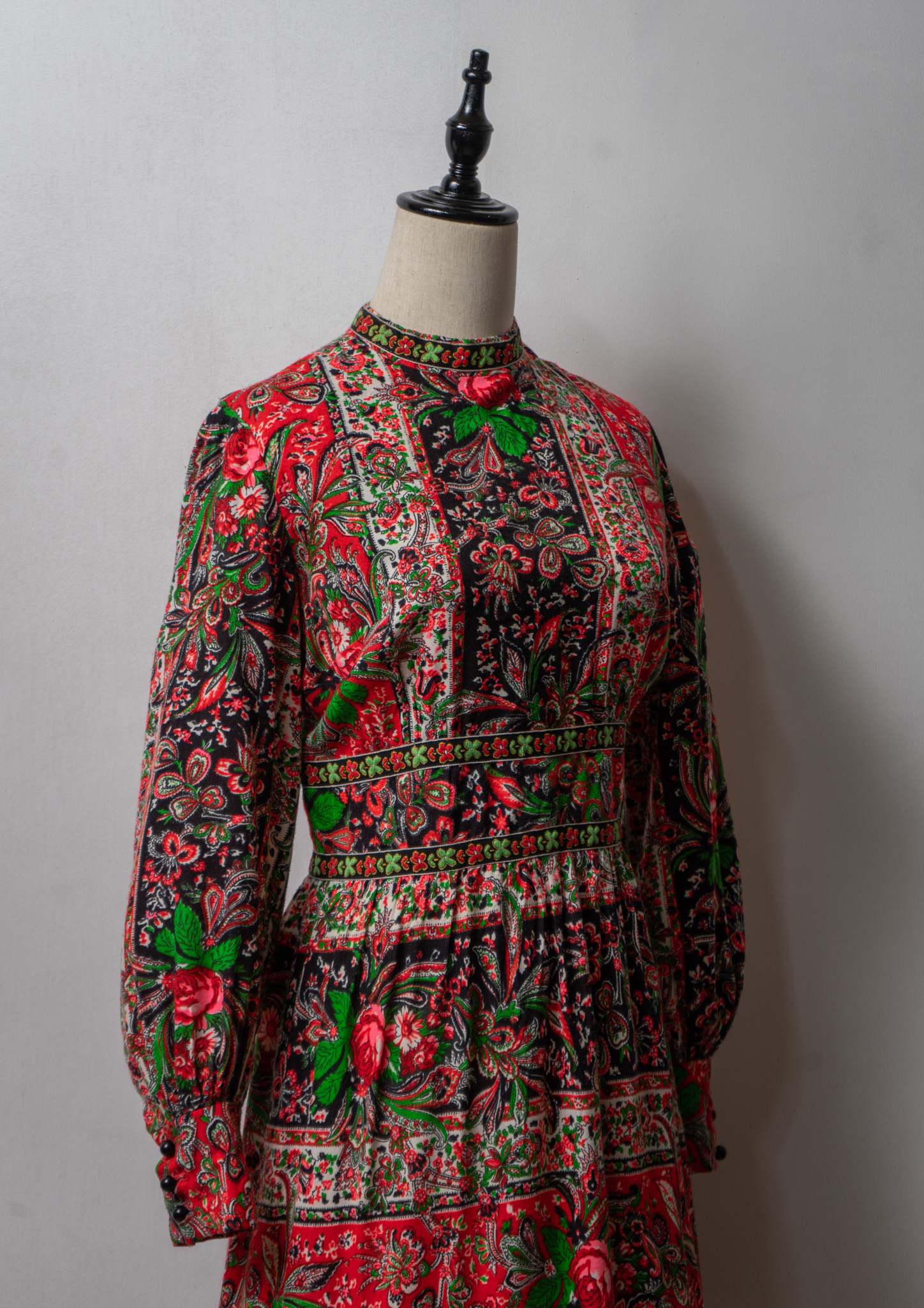 70's Frill Coller Pin Dot Pattern Over Dye Maxi Dress