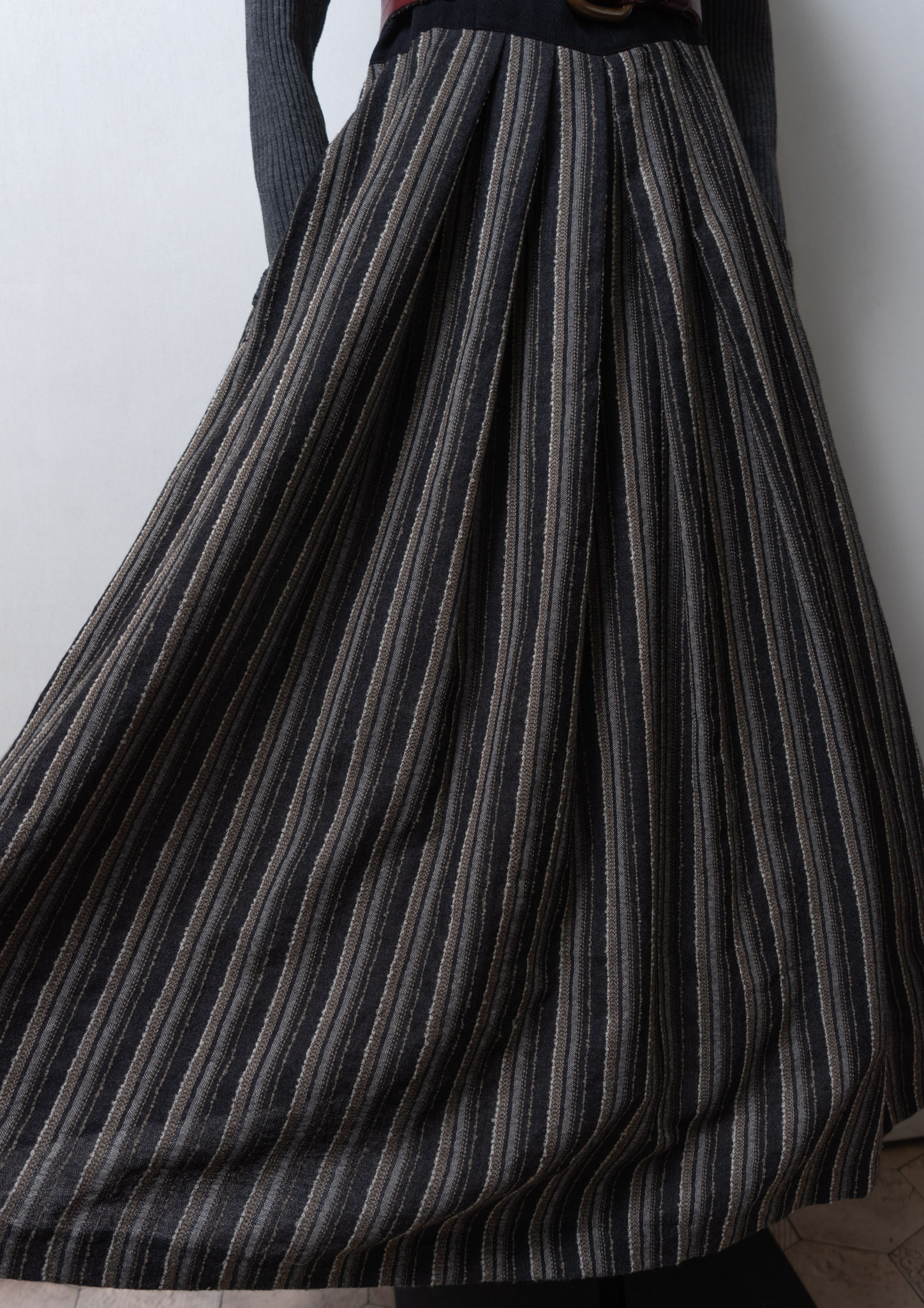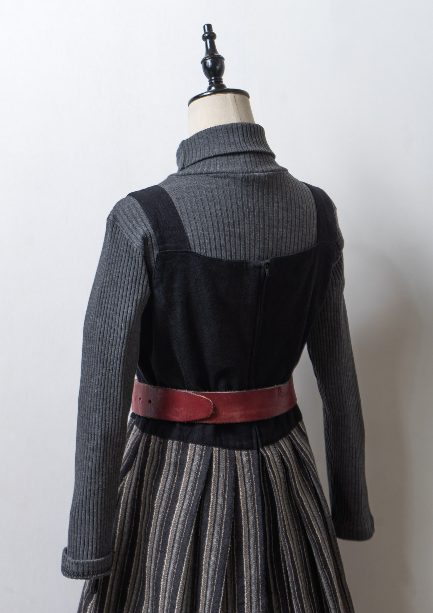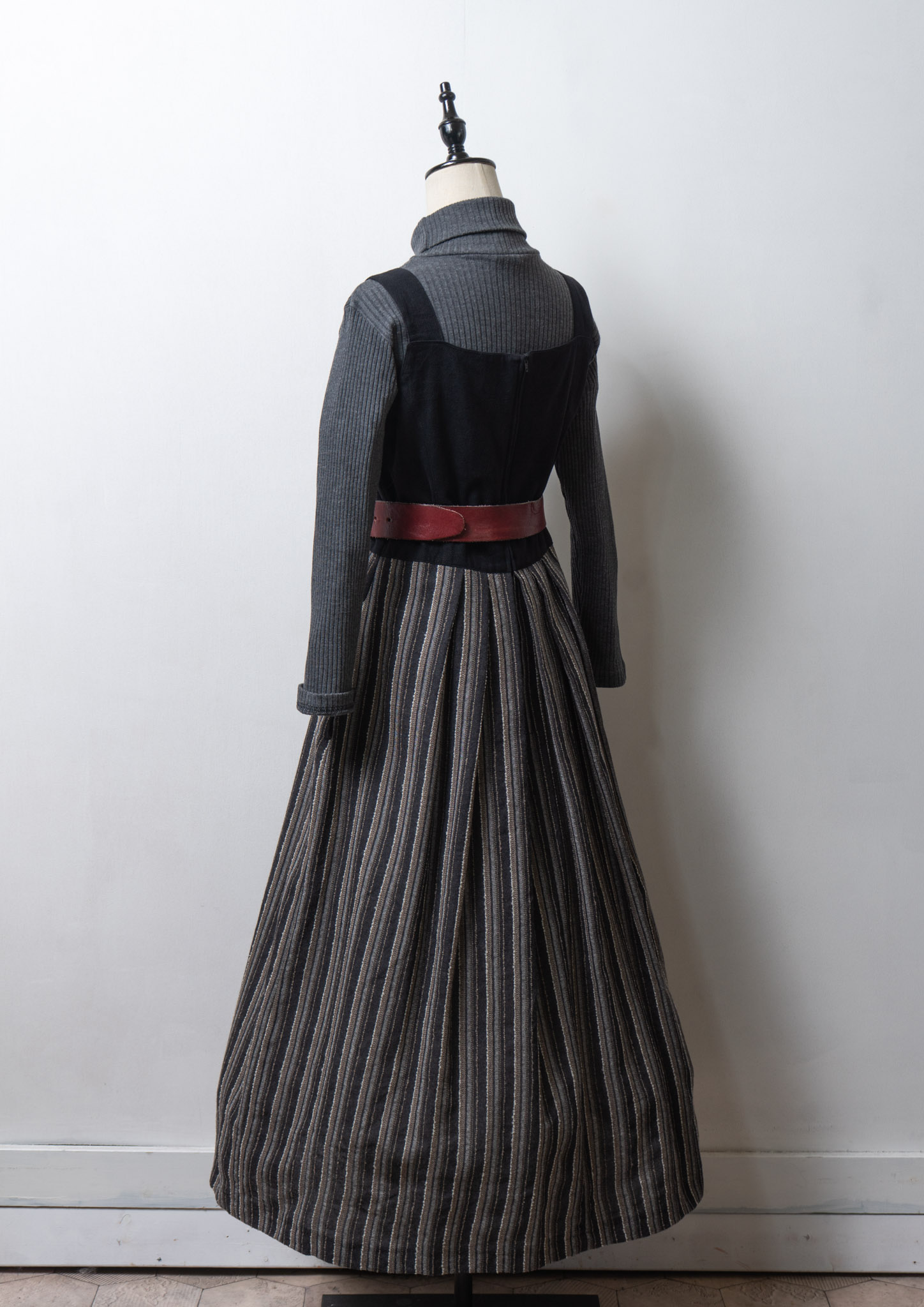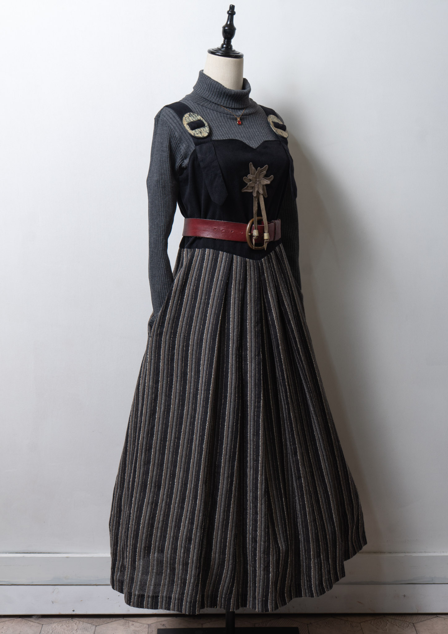 90's Euro Black × Gray Stripe Linen Pattern Tyrol Sleeveless Dress
