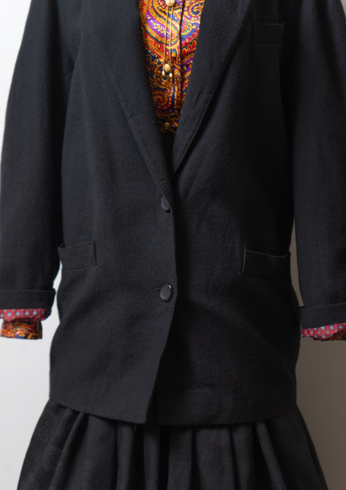 80's Euro C&A Double Pocket Black Tiered Jacket