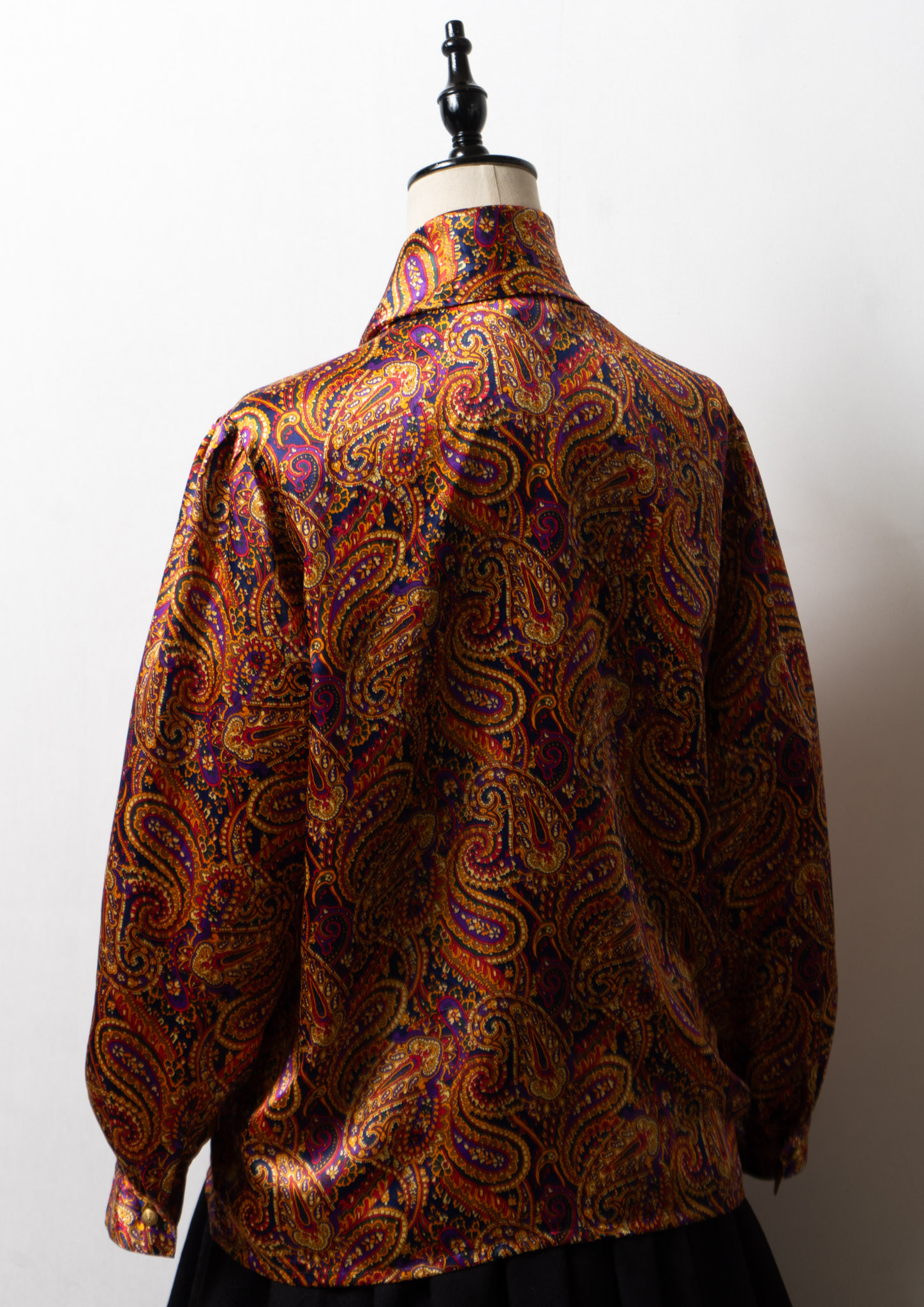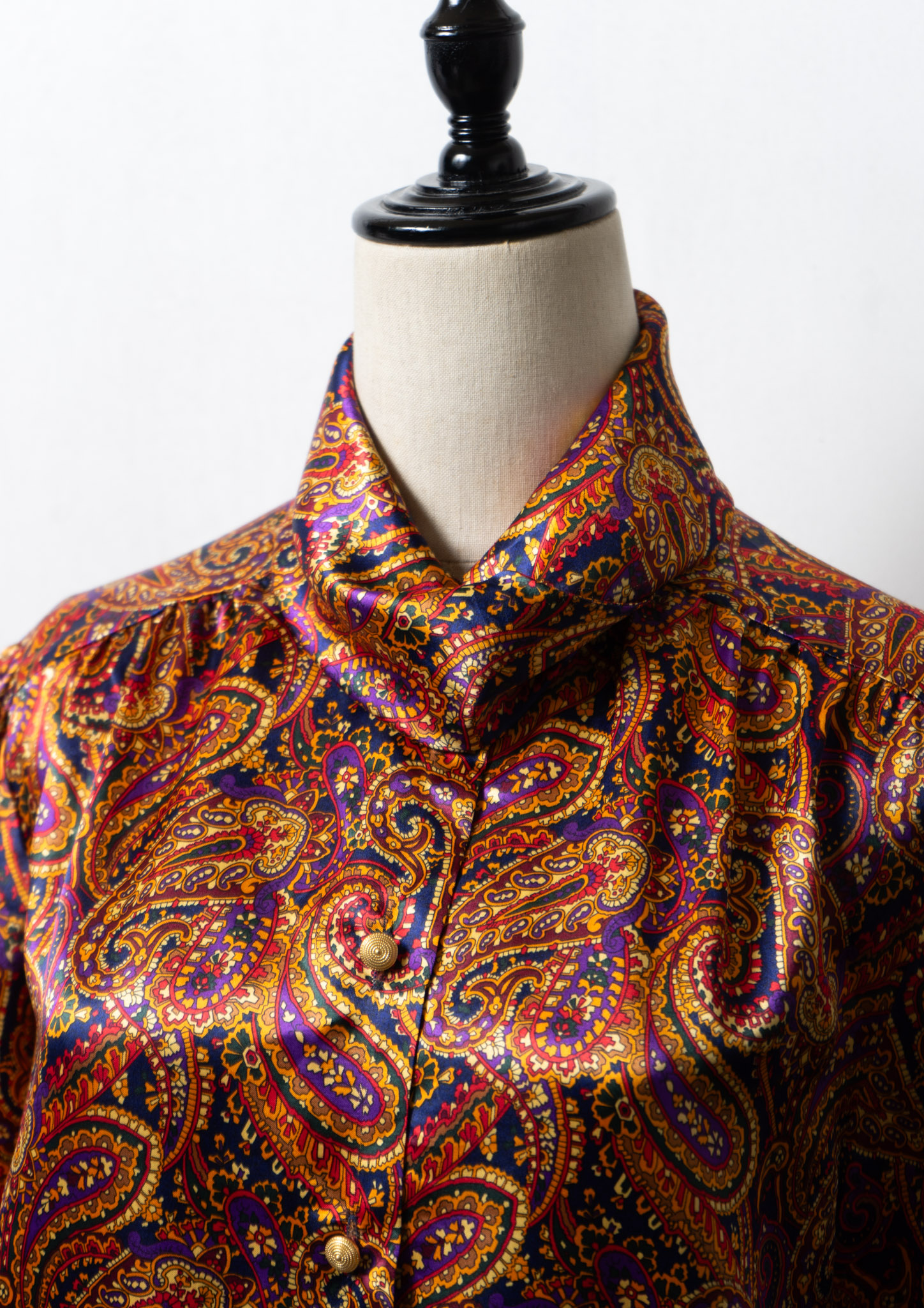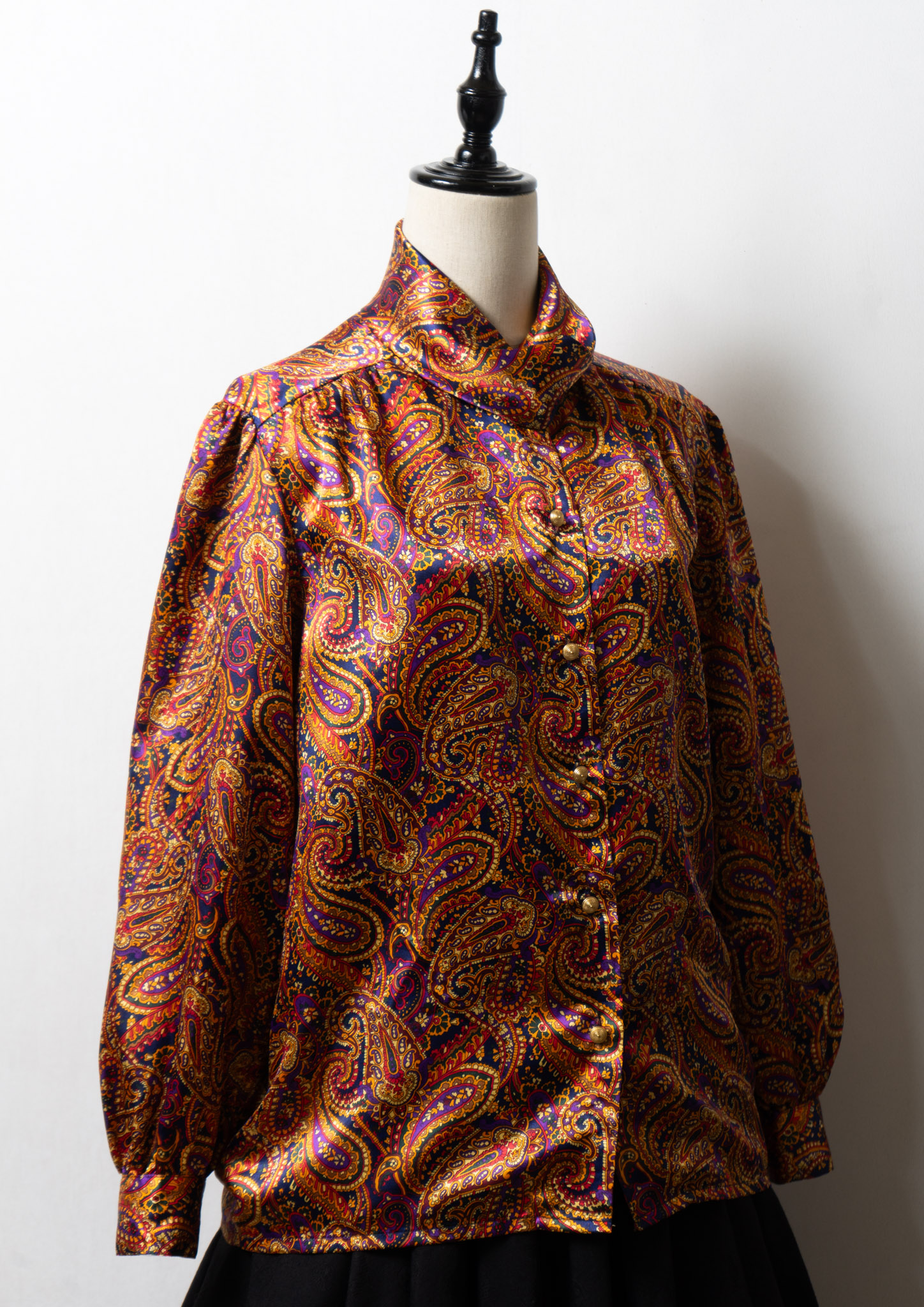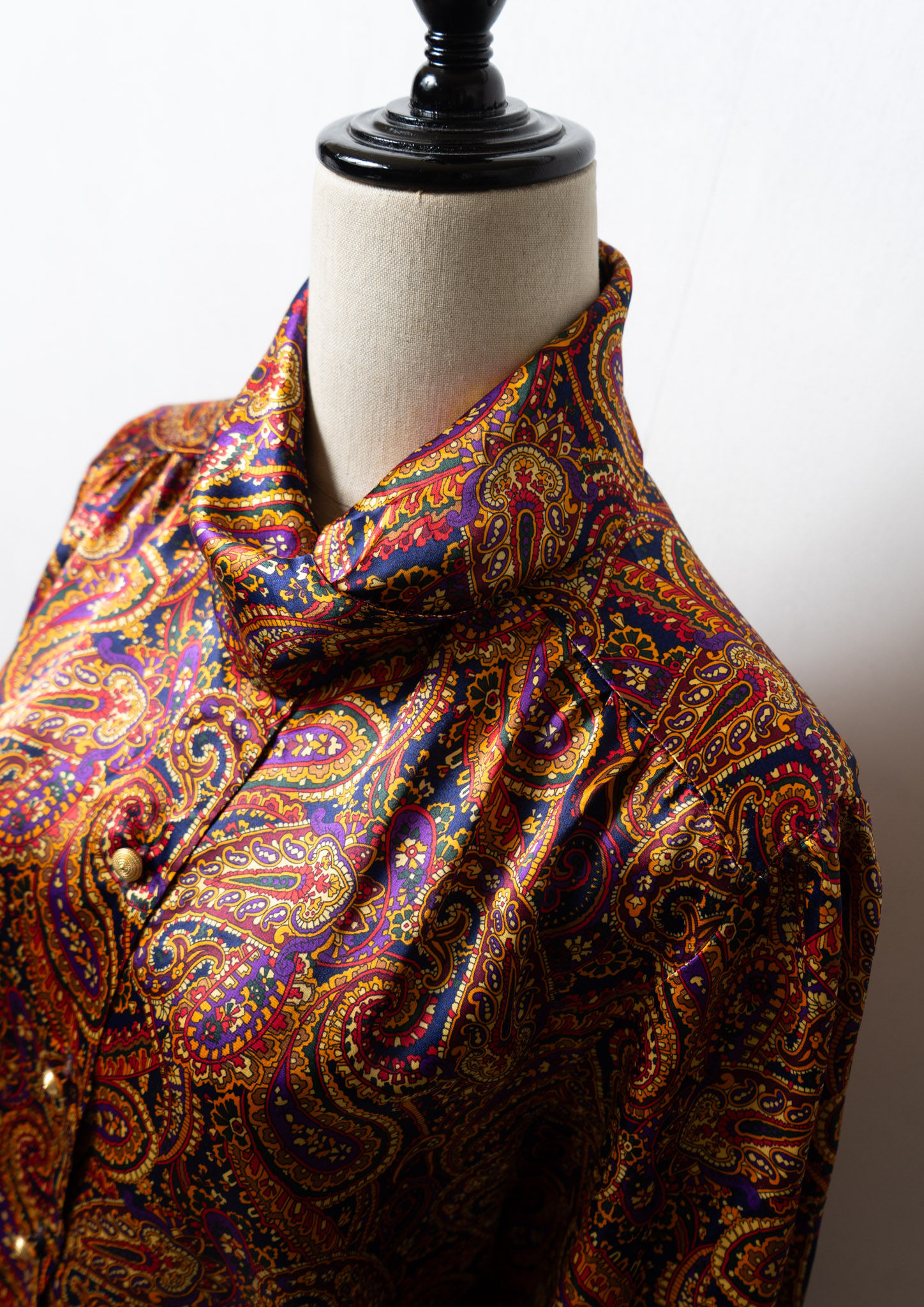80~90's Canada Multi Color Paisley Pattern Glossy Blouse