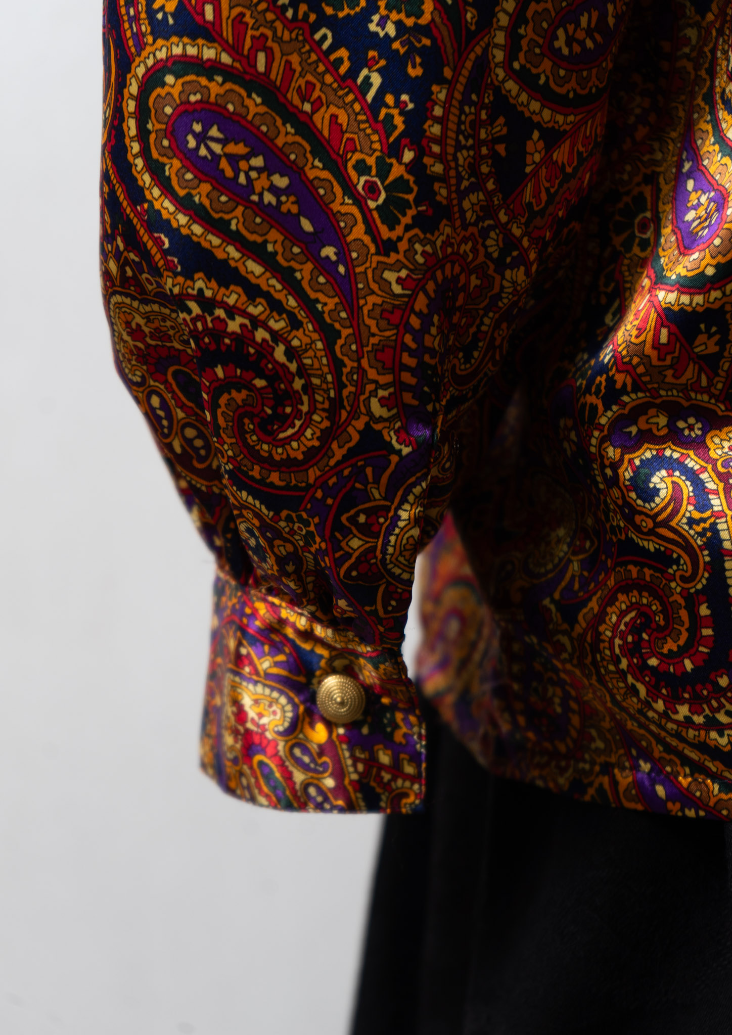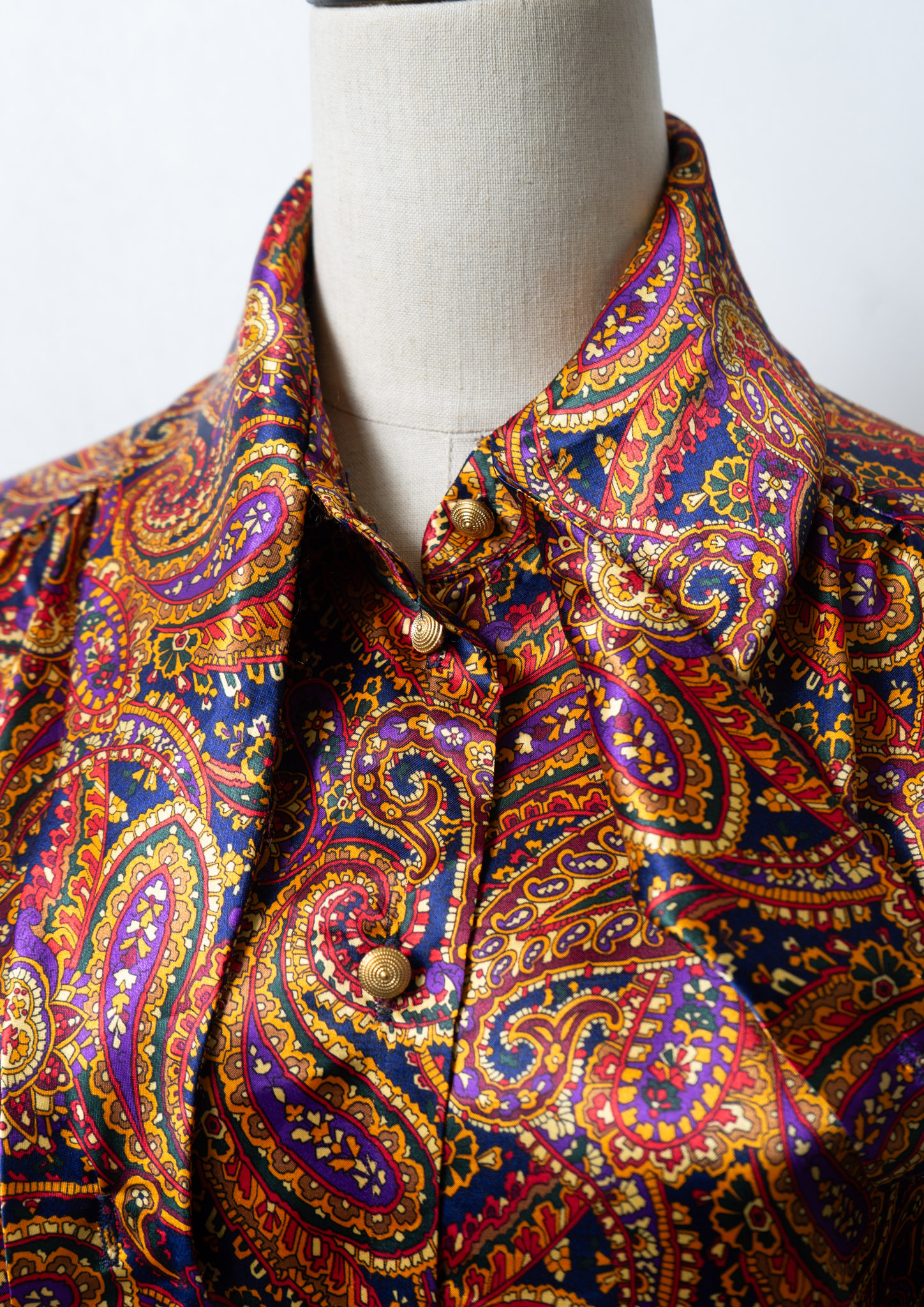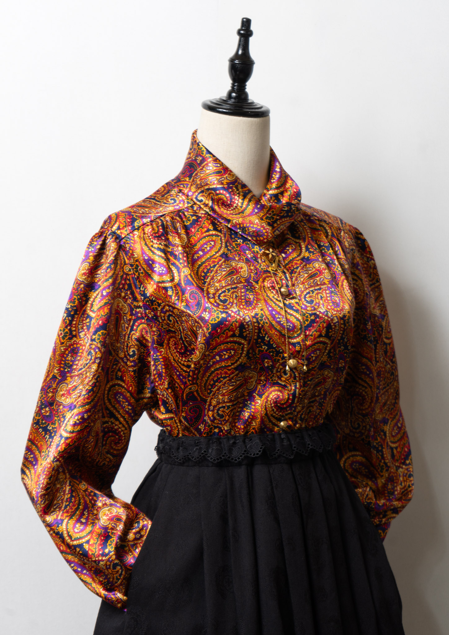 80~90's Canada Multi Color Paisley Pattern Glossy Blouse