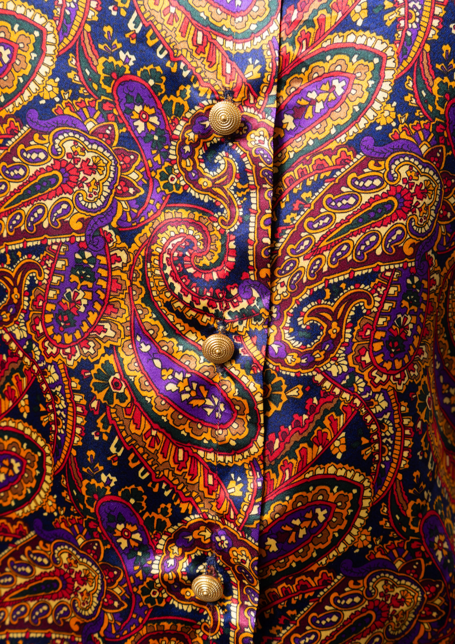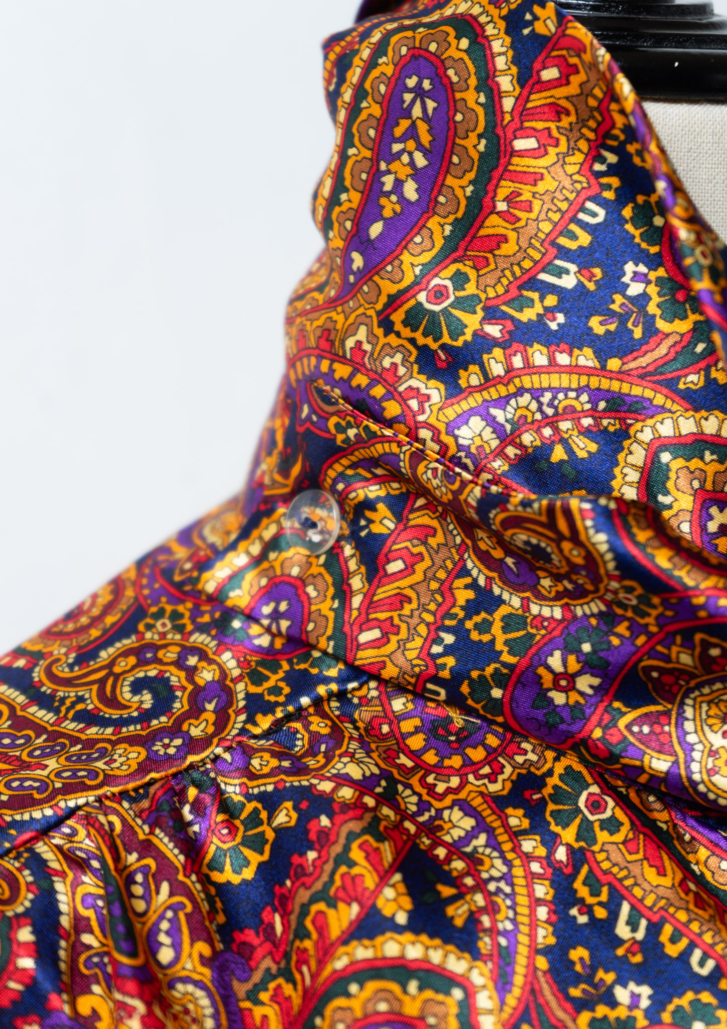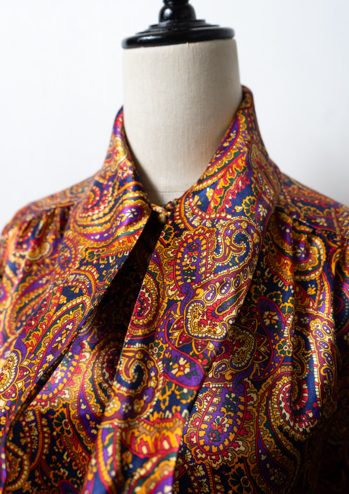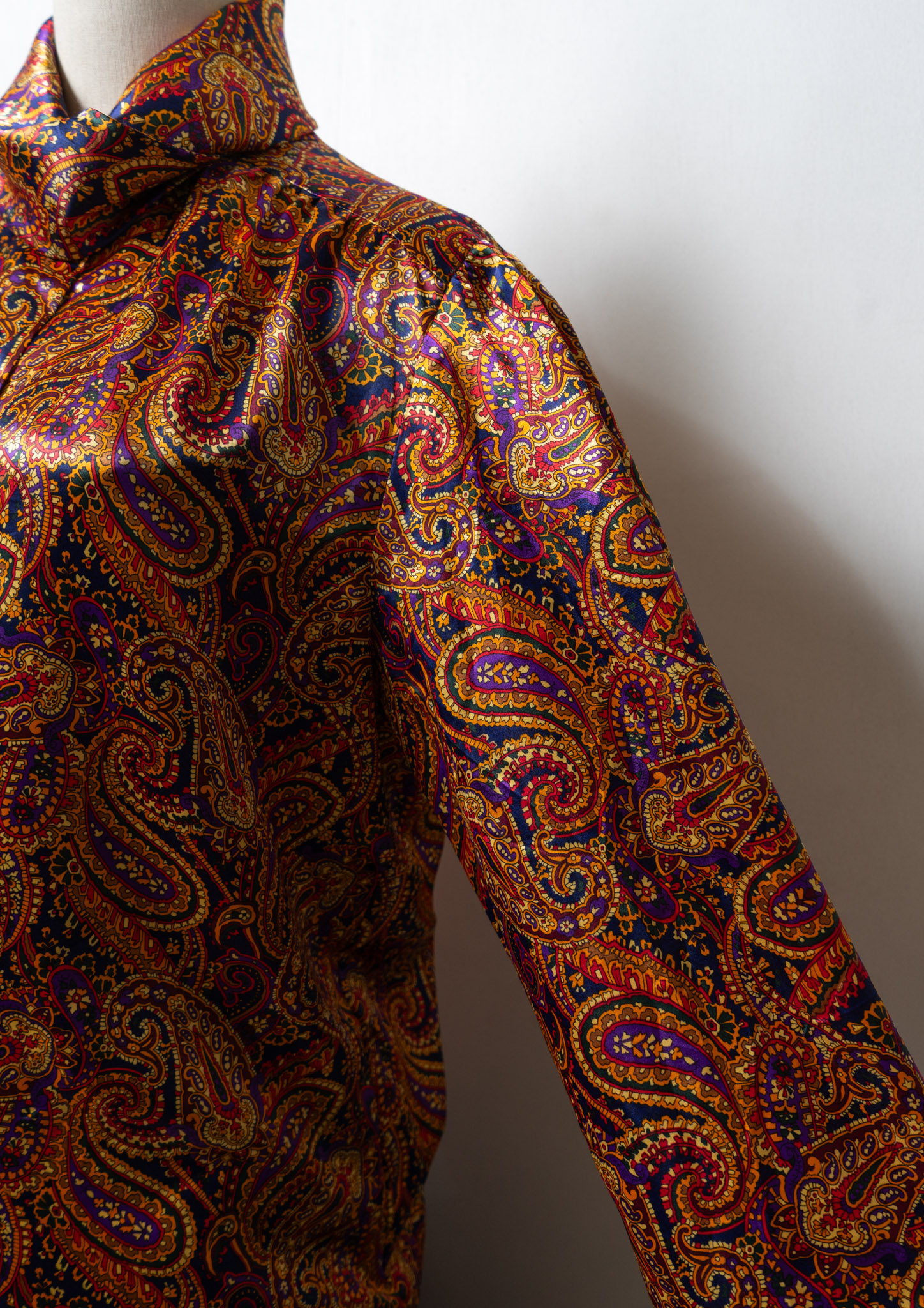 80~90's Canada Multi Color Paisley Pattern Glossy Blouse
