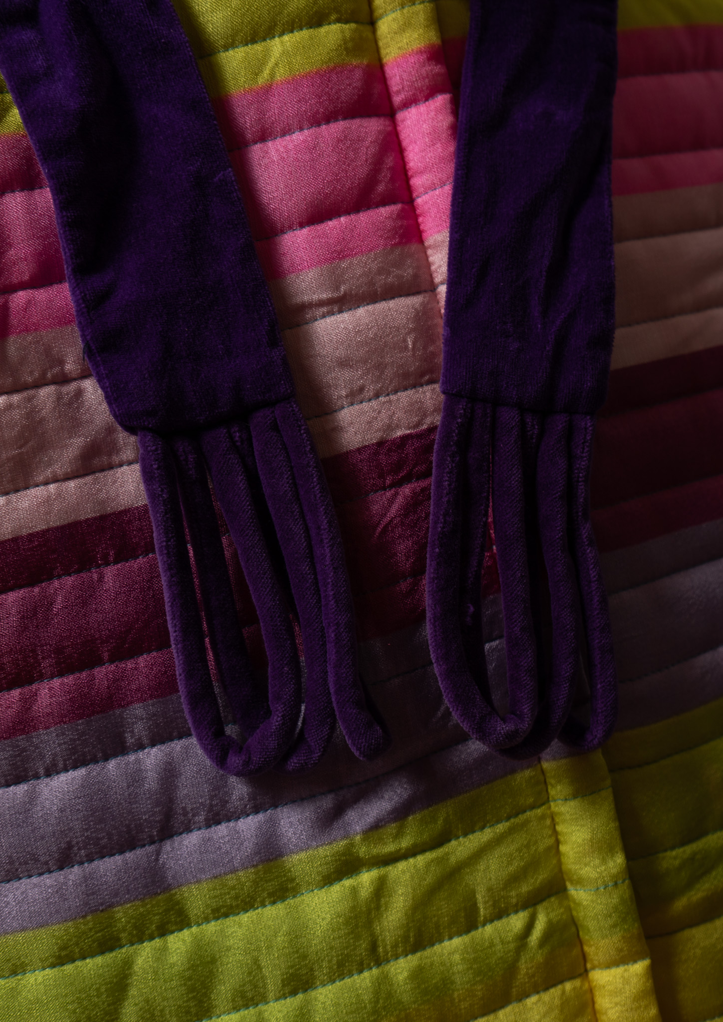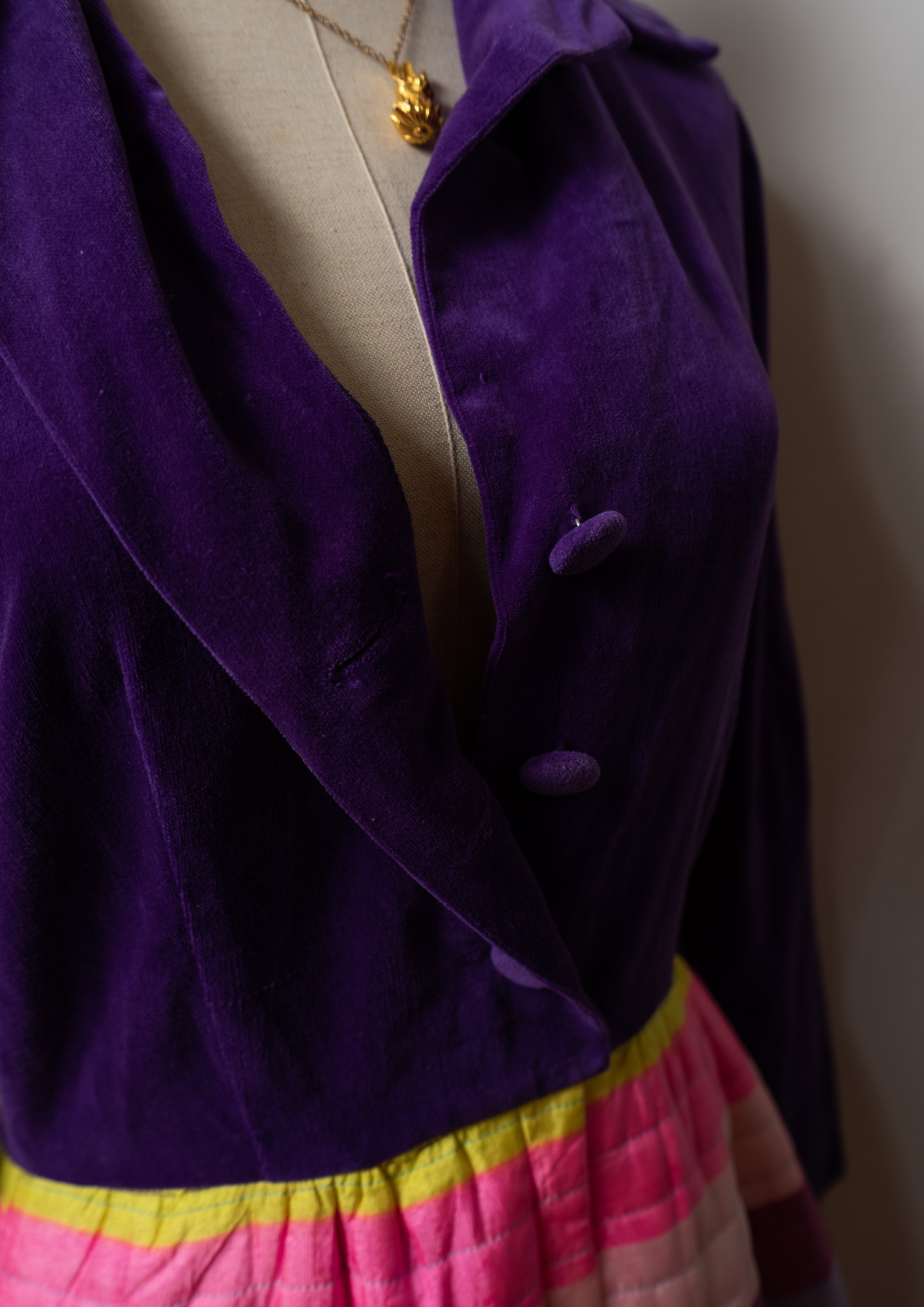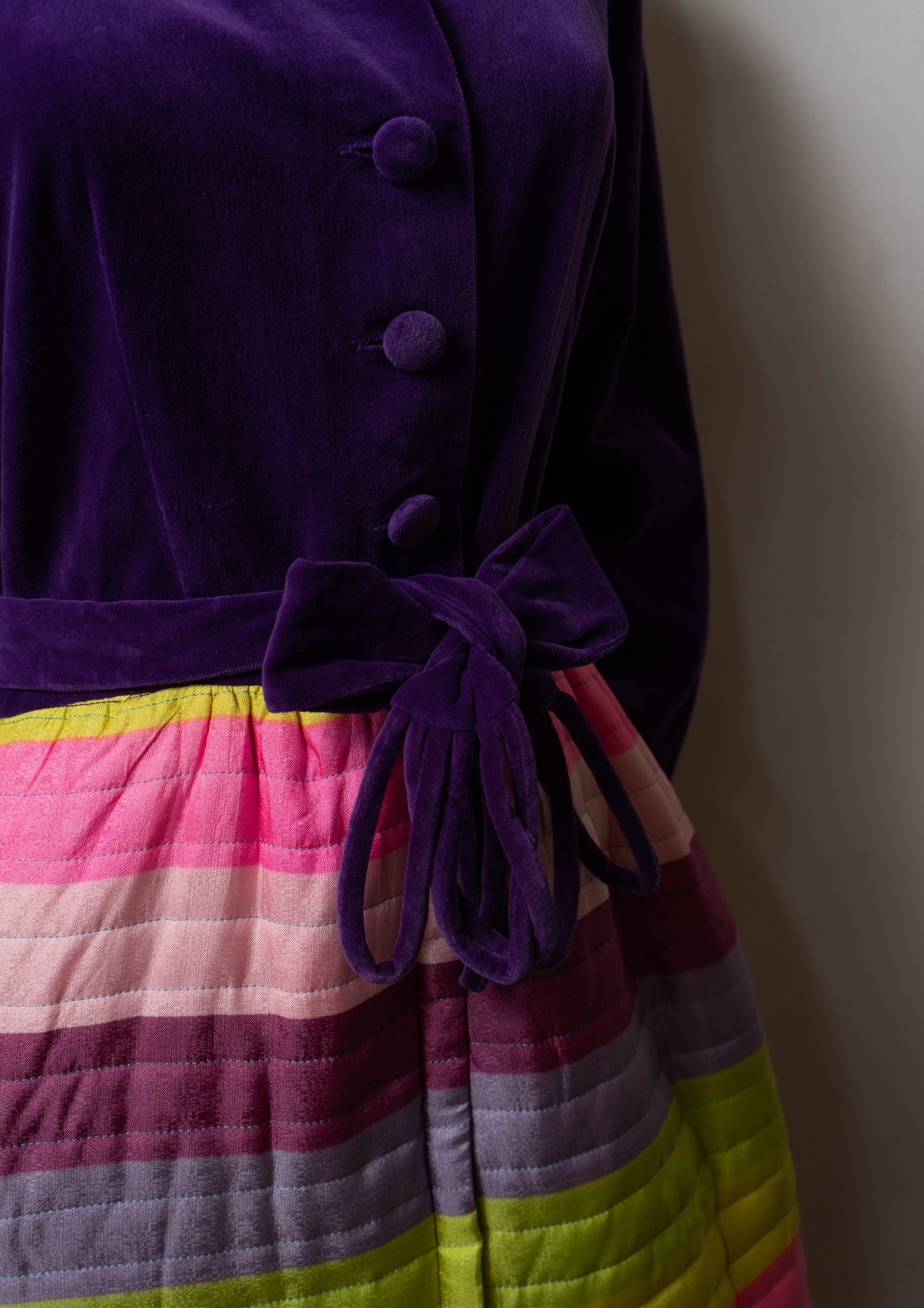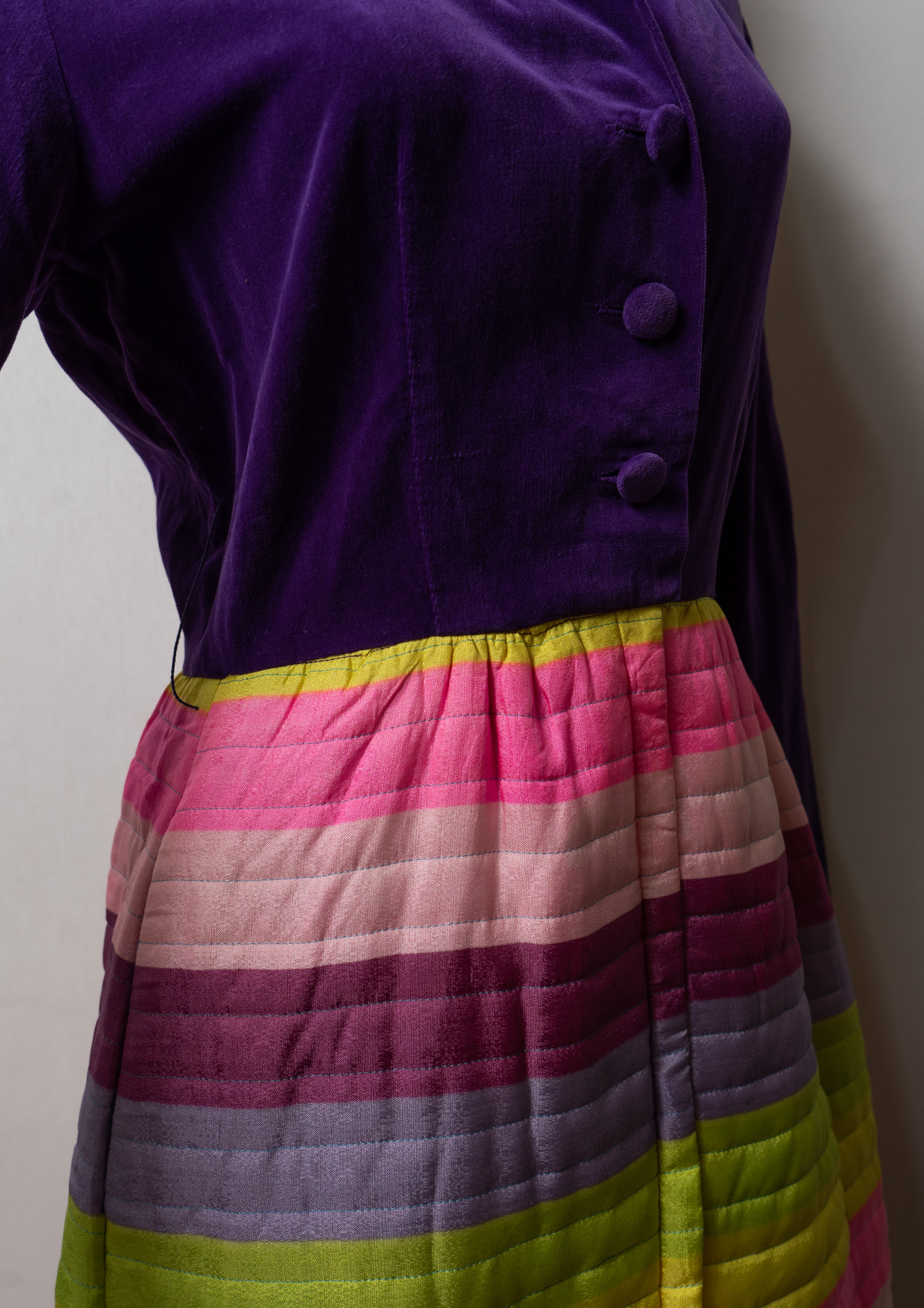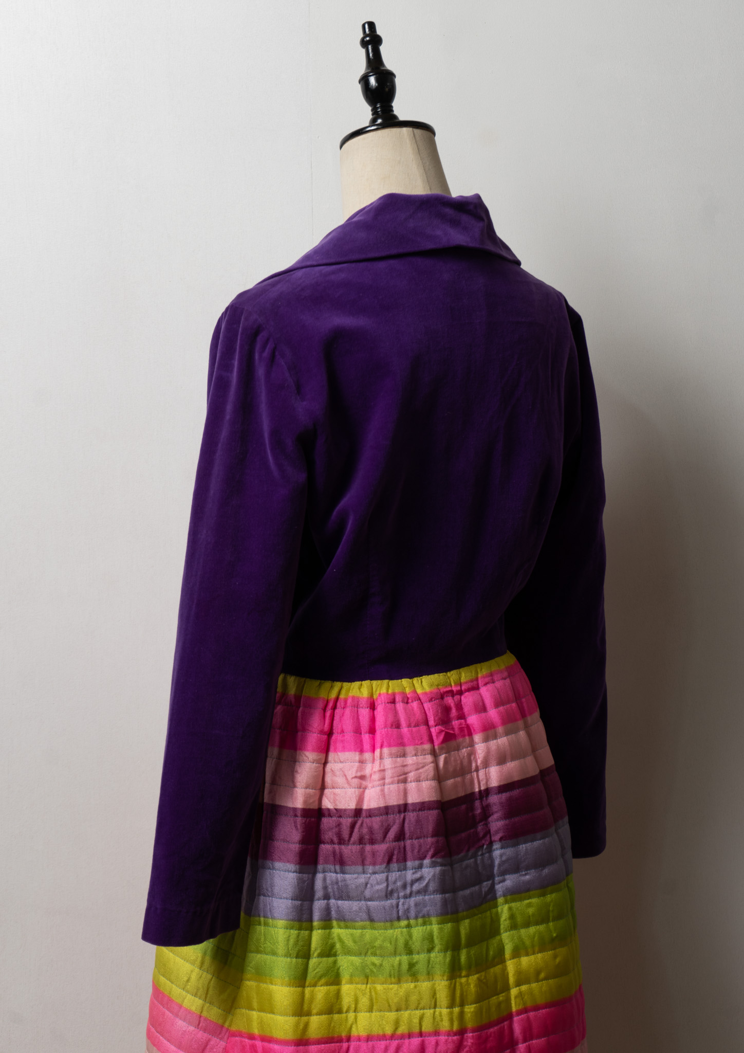 70's USA SAKS FIFTH AVENUE Velvet×Multi Color Quilting Skirt Dress