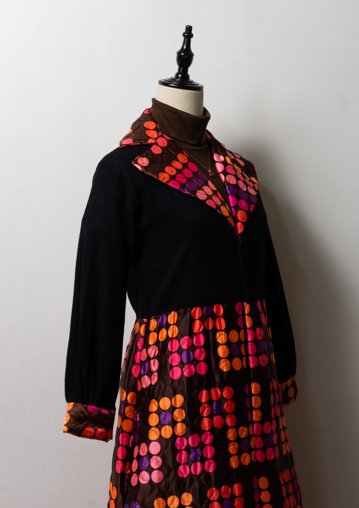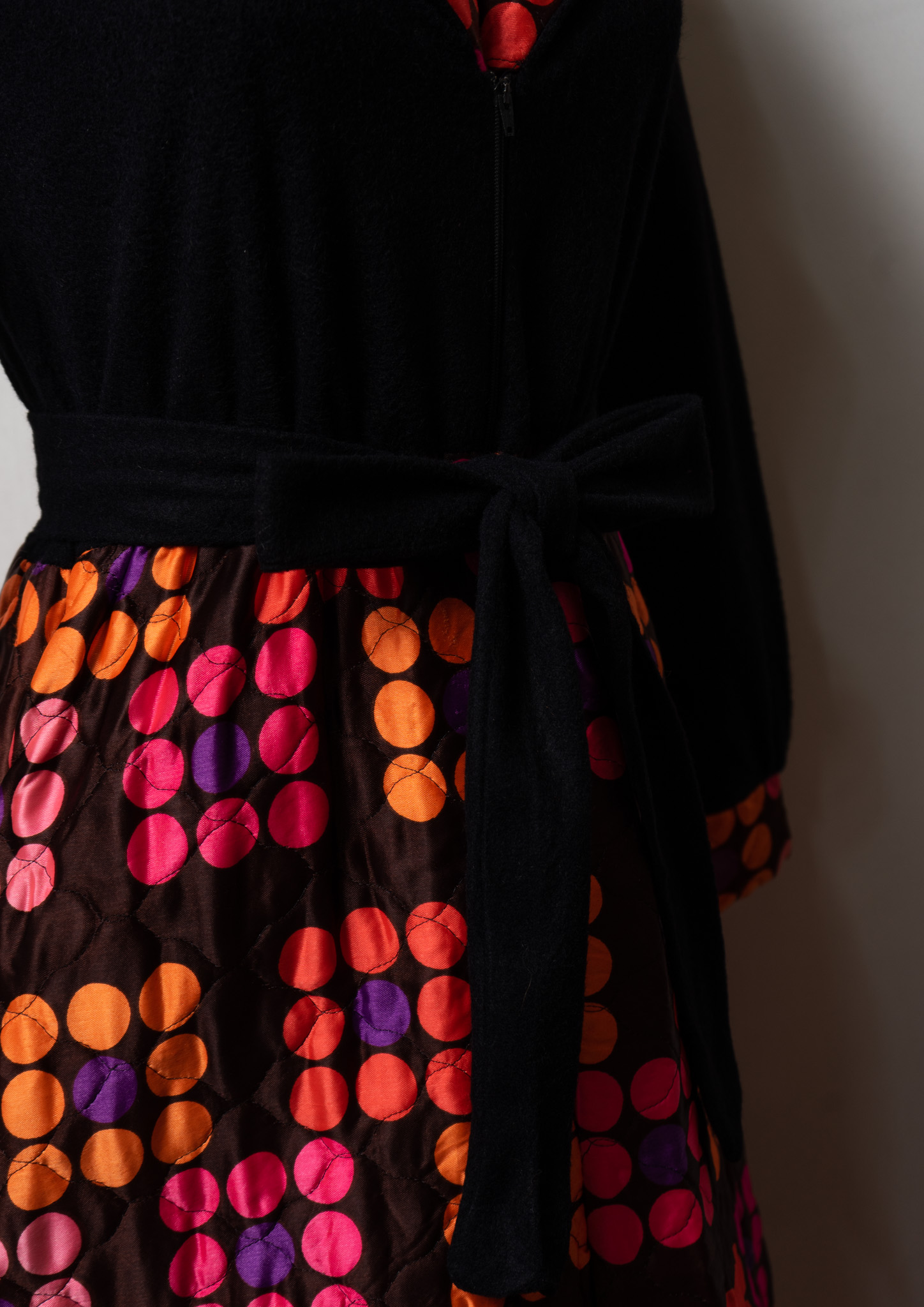70's USA Design Dot Pattern Quilting Skirt Dress