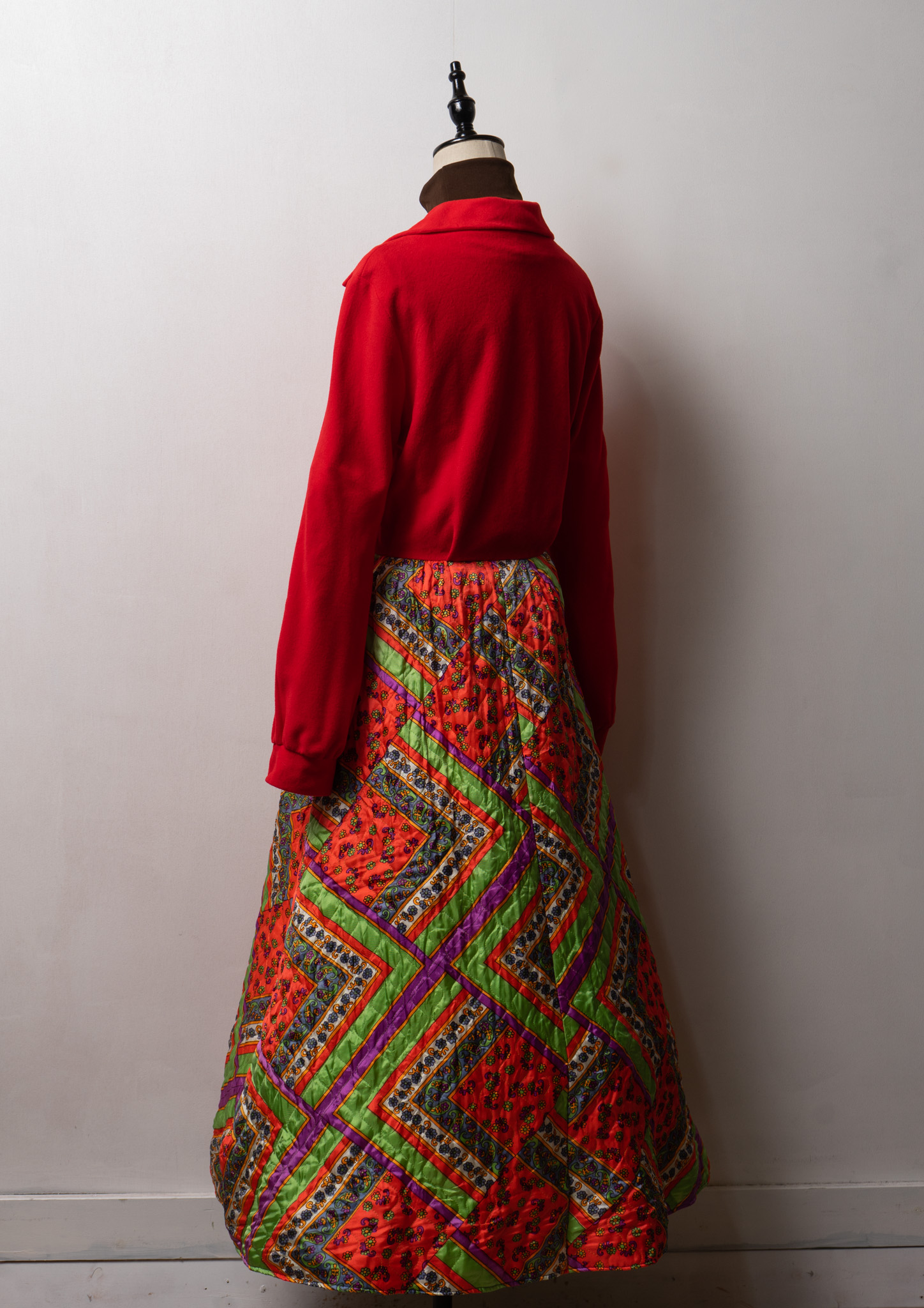 70's USA Skirf Like Pattern Quilting Skirt Dress
