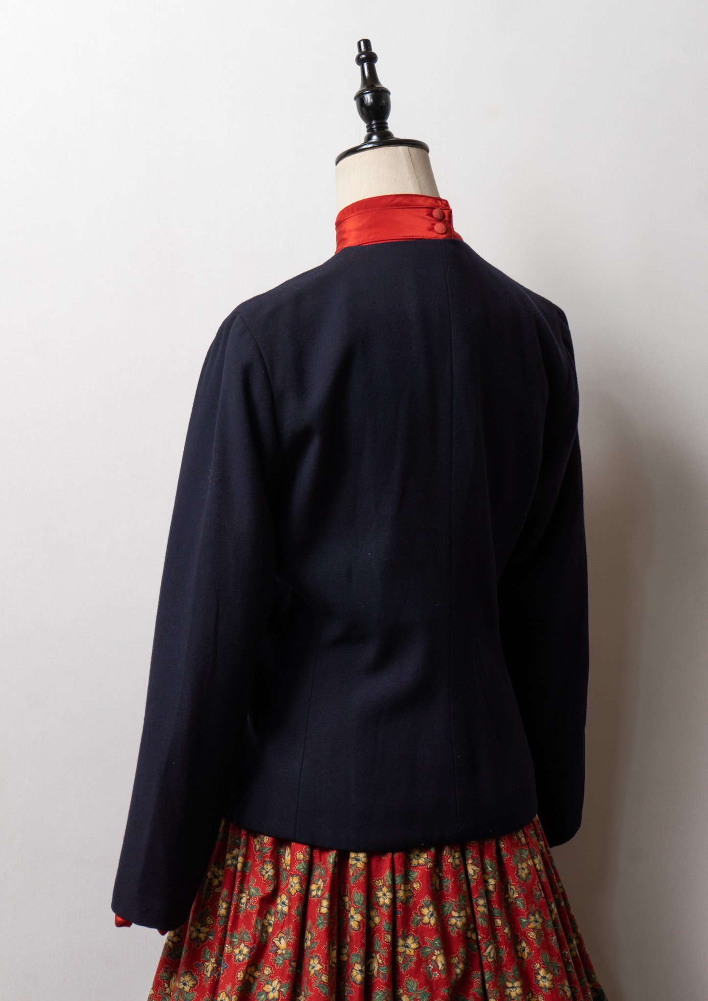 90's Euro Round Shoulder Black Velours Cropped Jacket