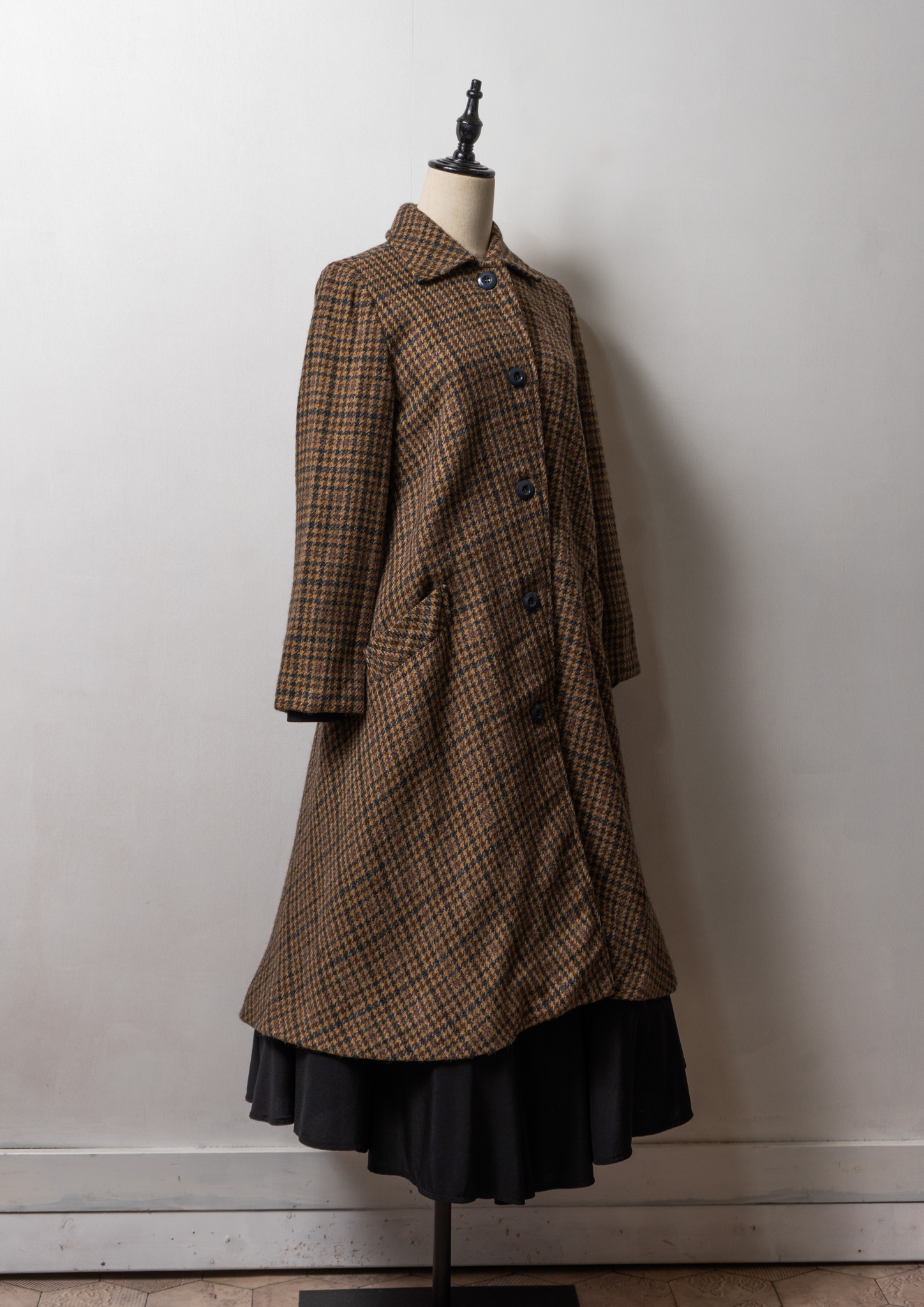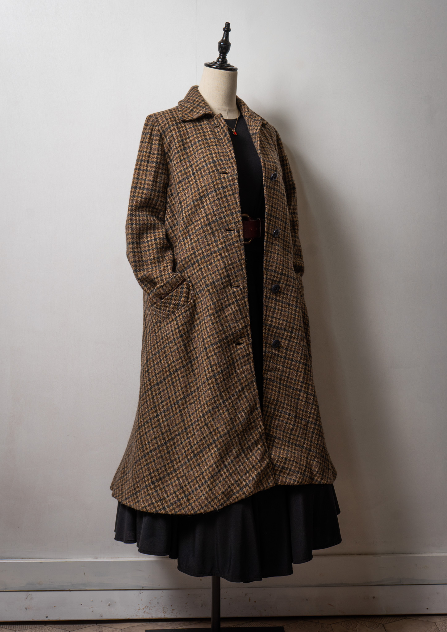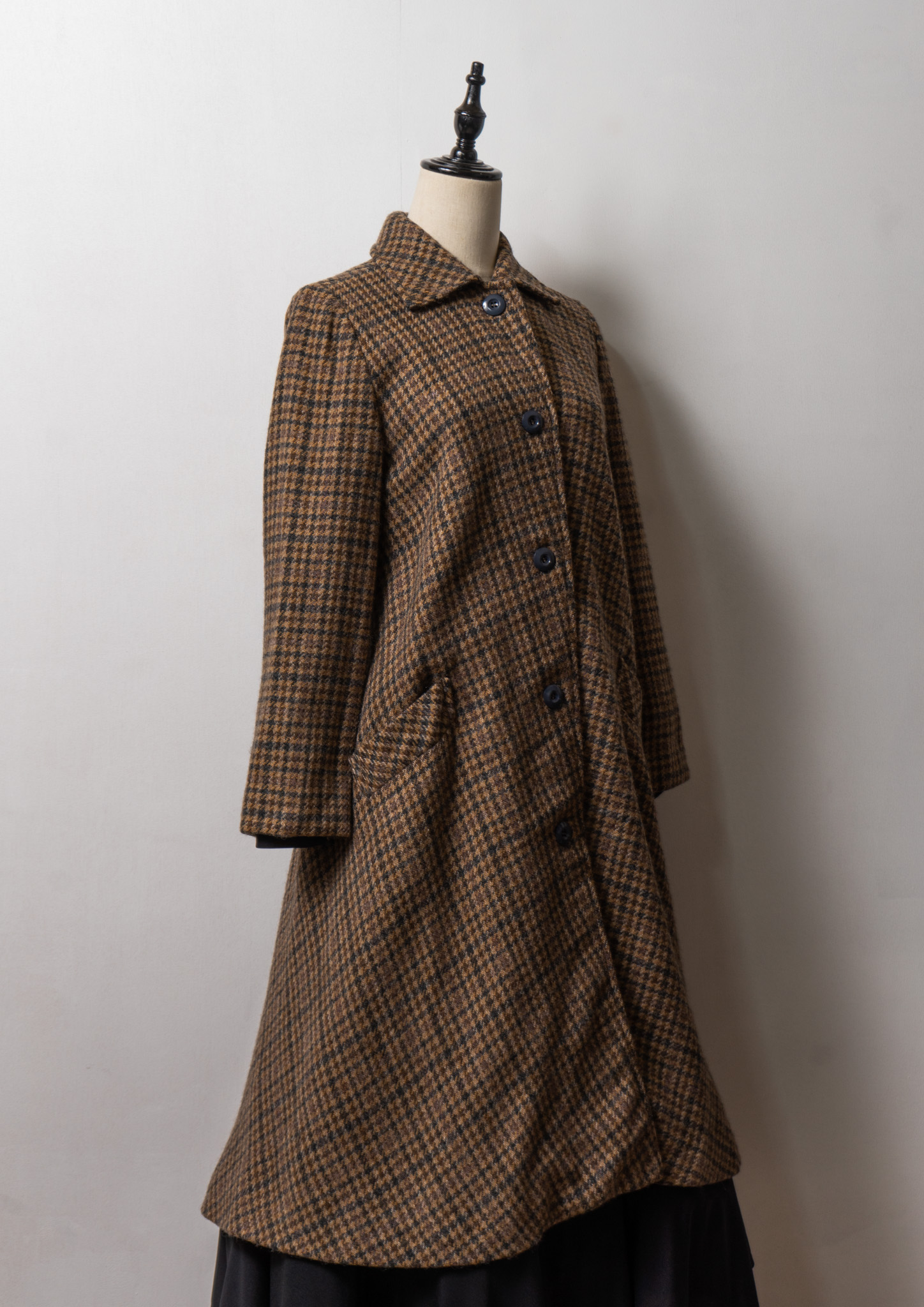 60~70's Double Pocket Design Blue Check Pattern Coat
