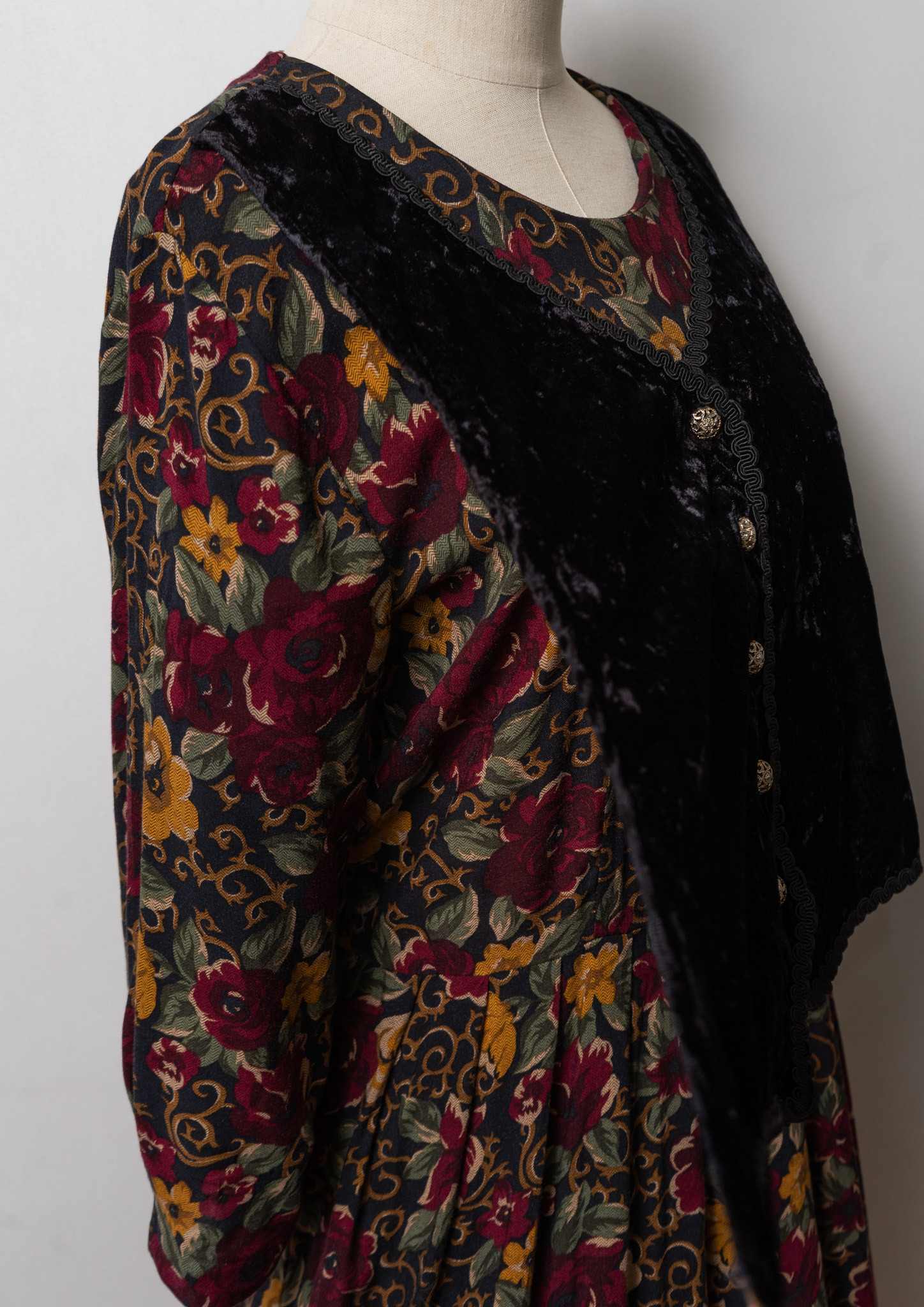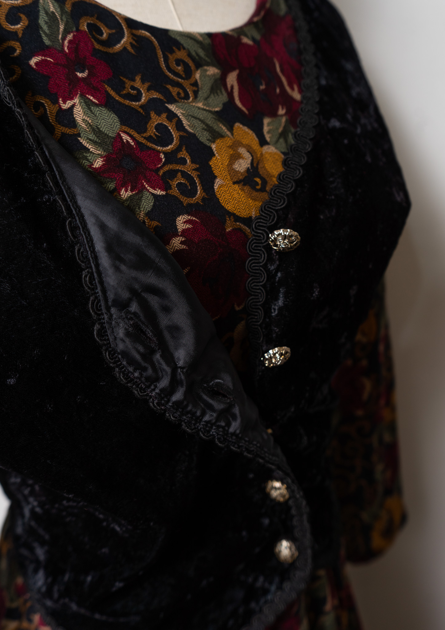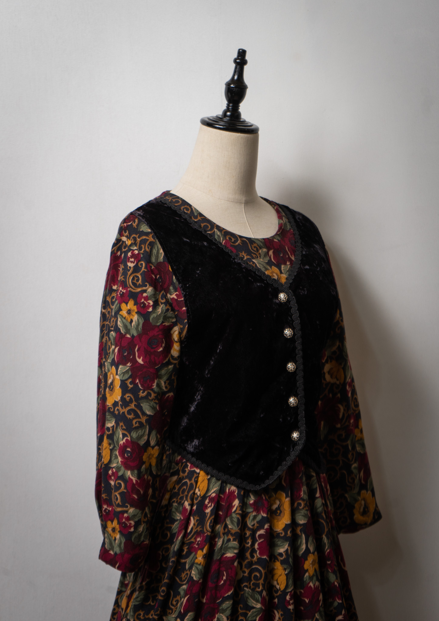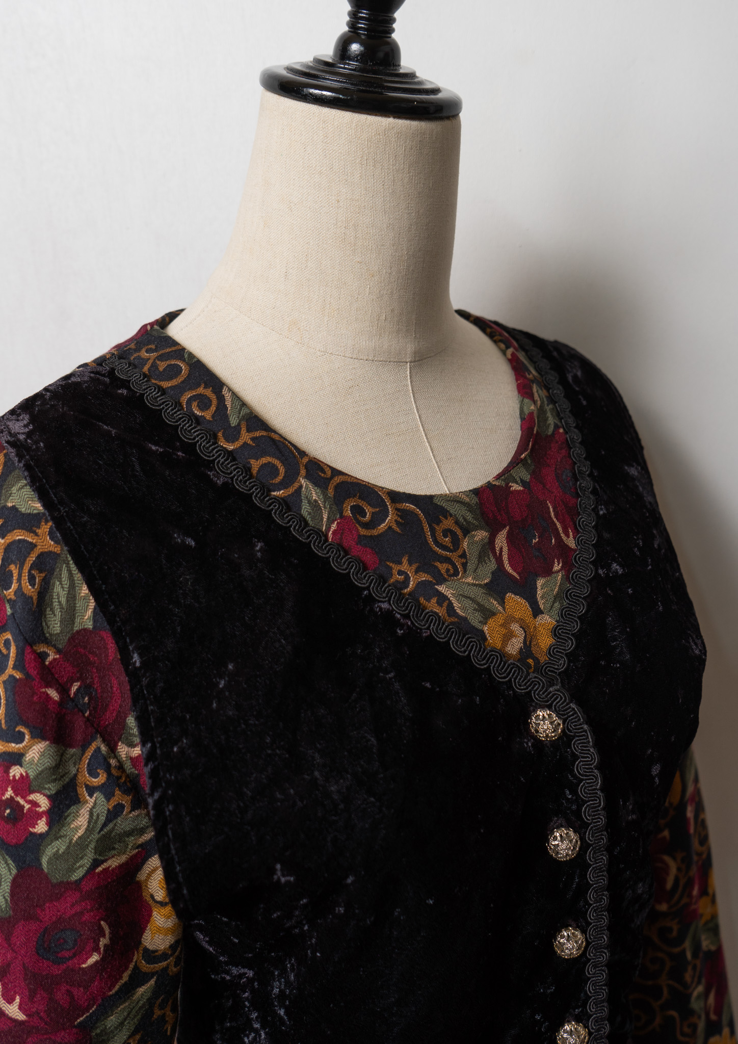 70's USA SAKS FIFTH AVENUE Velvet×Multi Color Quilting Skirt Dress