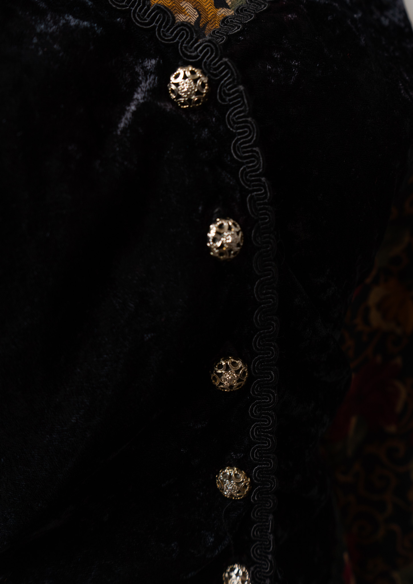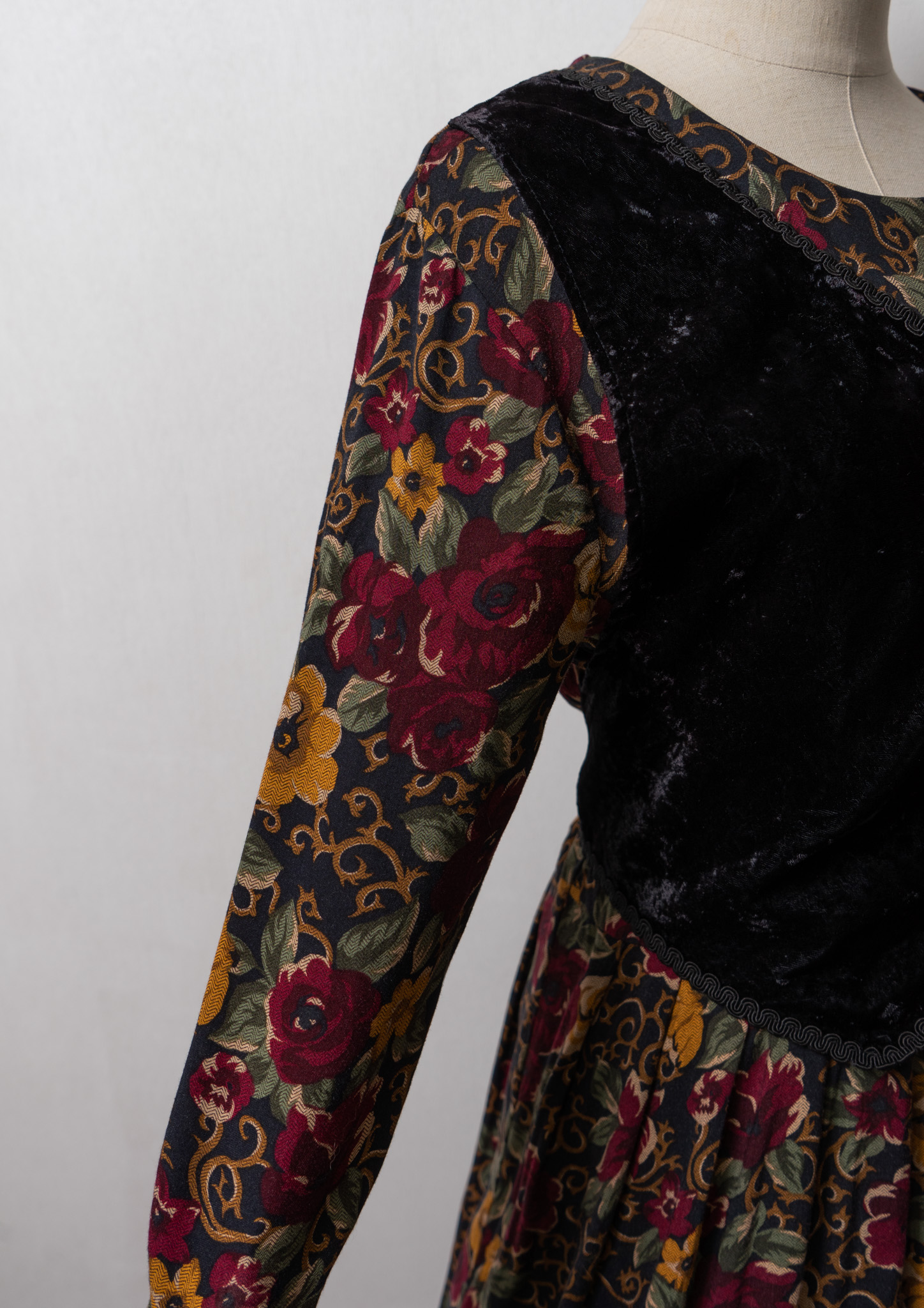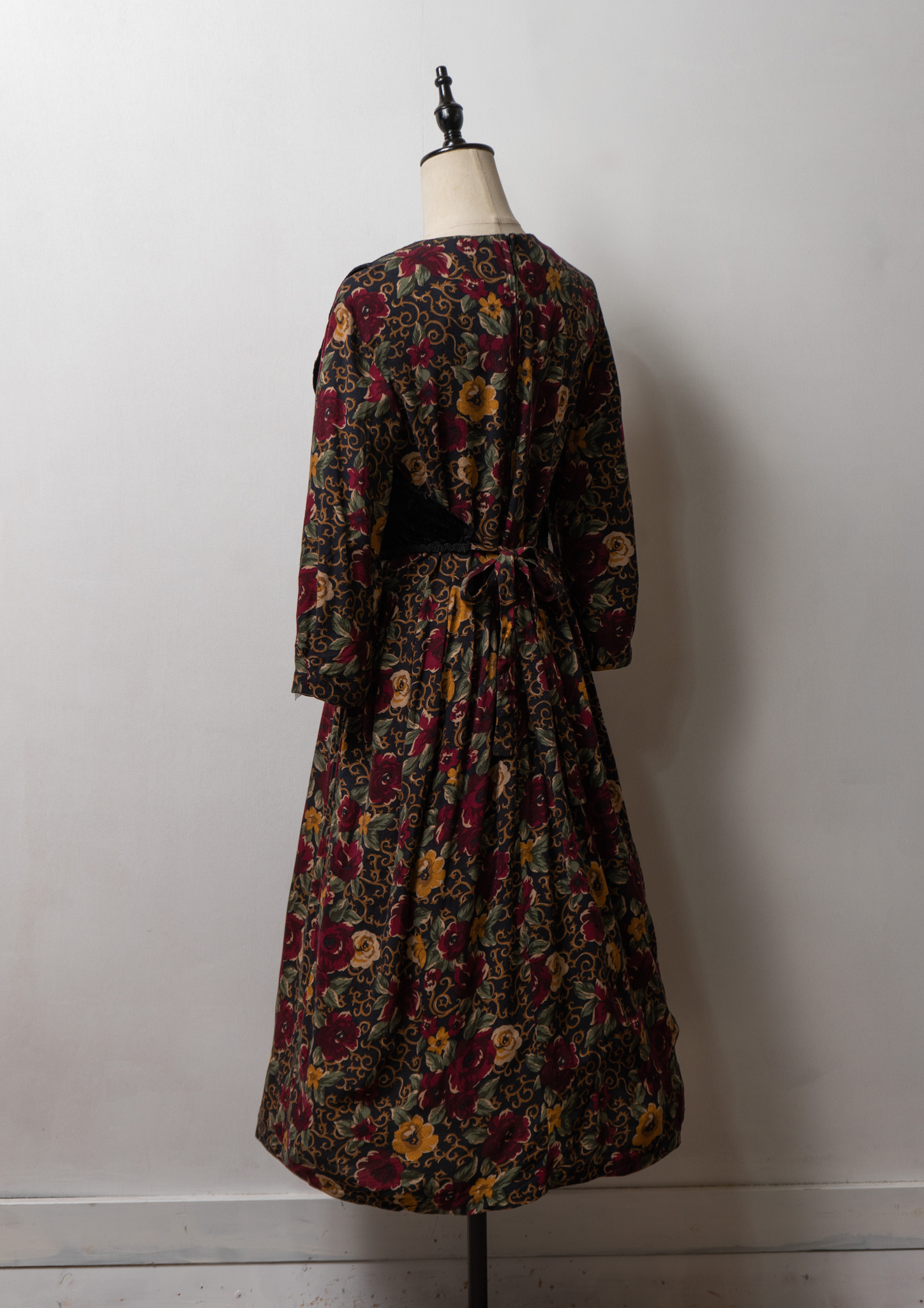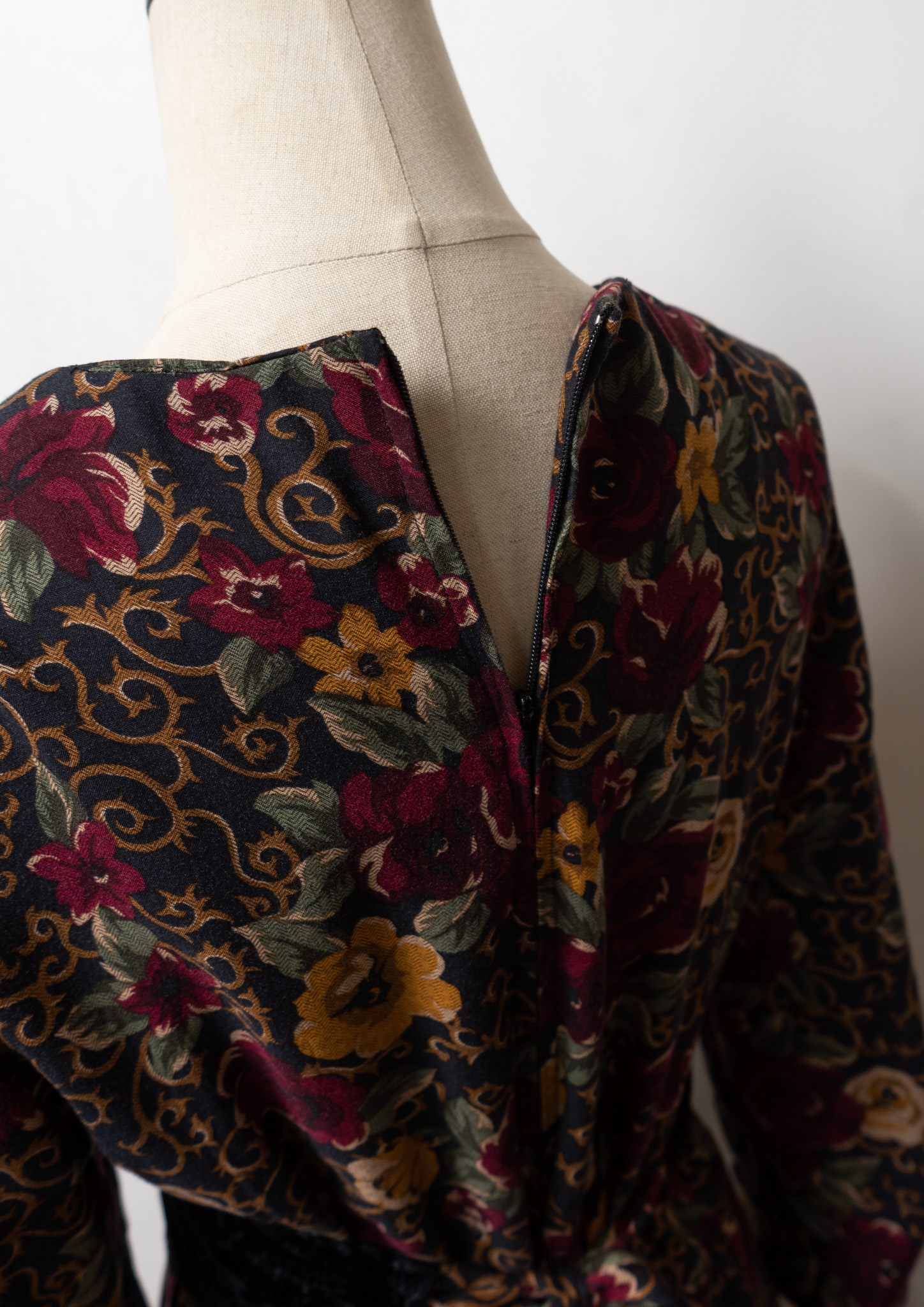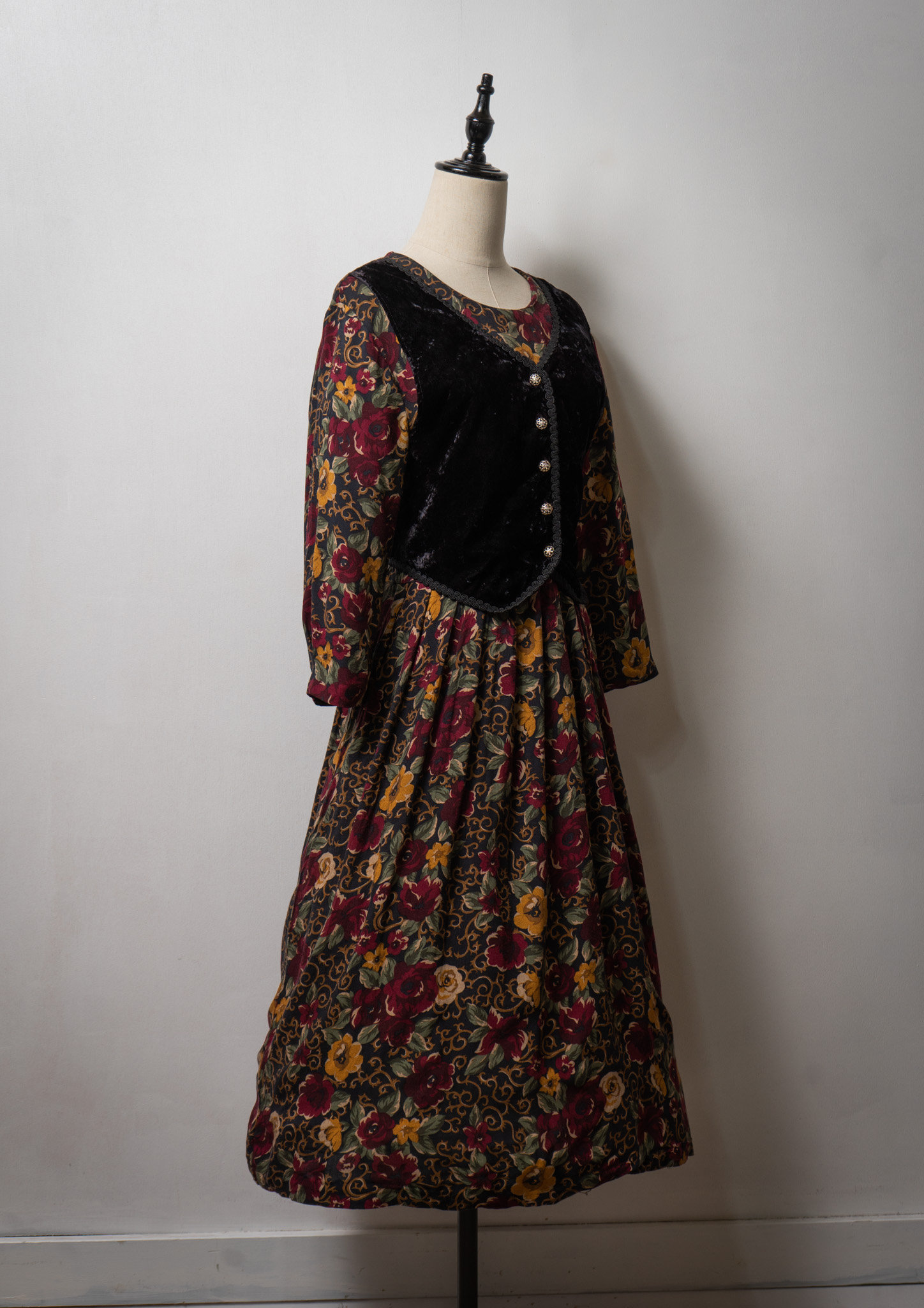 70's USA SAKS FIFTH AVENUE Velvet×Multi Color Quilting Skirt Dress