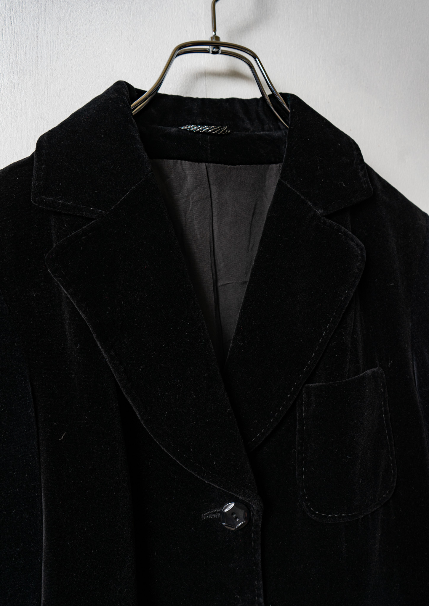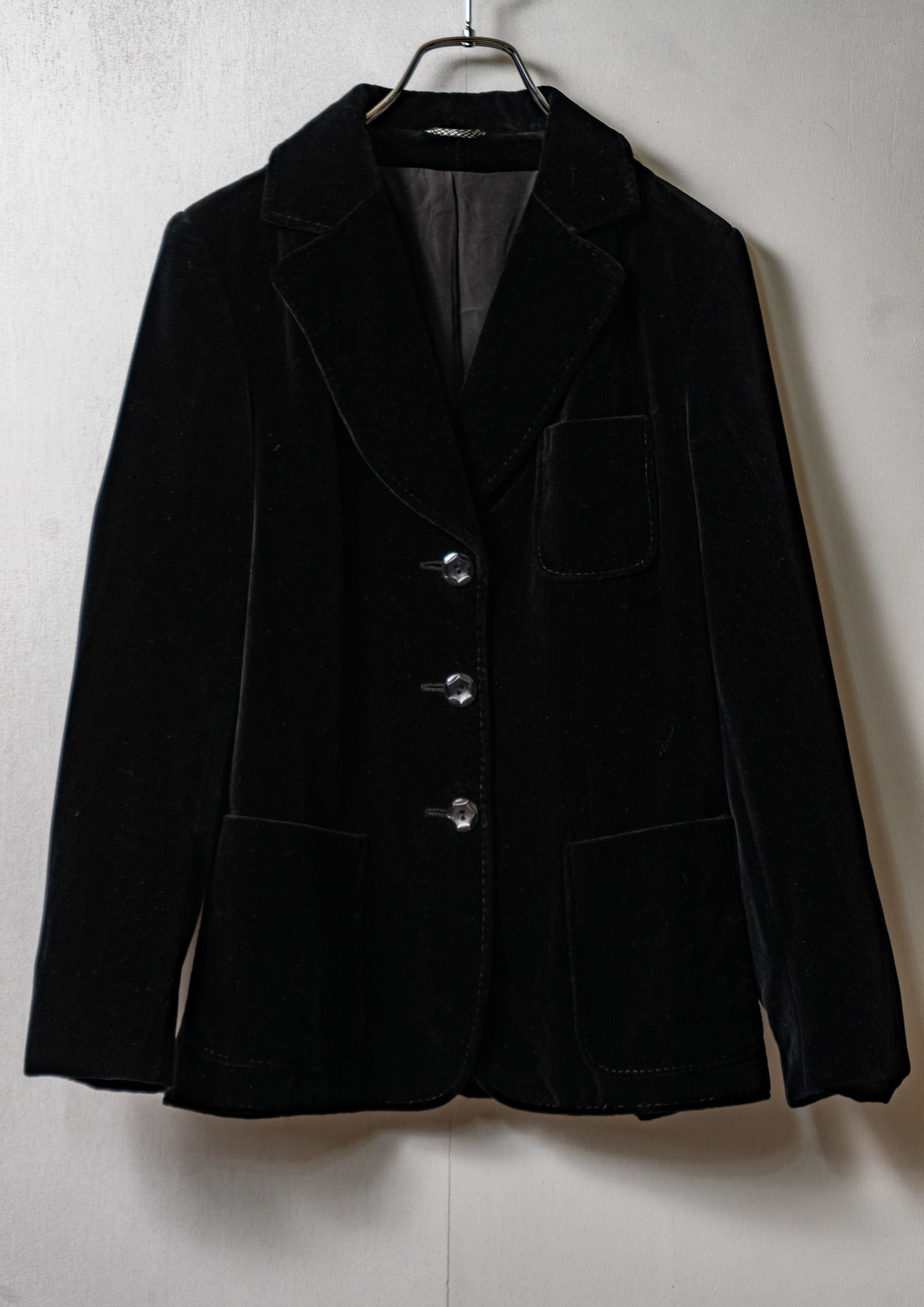 70~80's Pocket Design Black Velvet Tailored Jacket