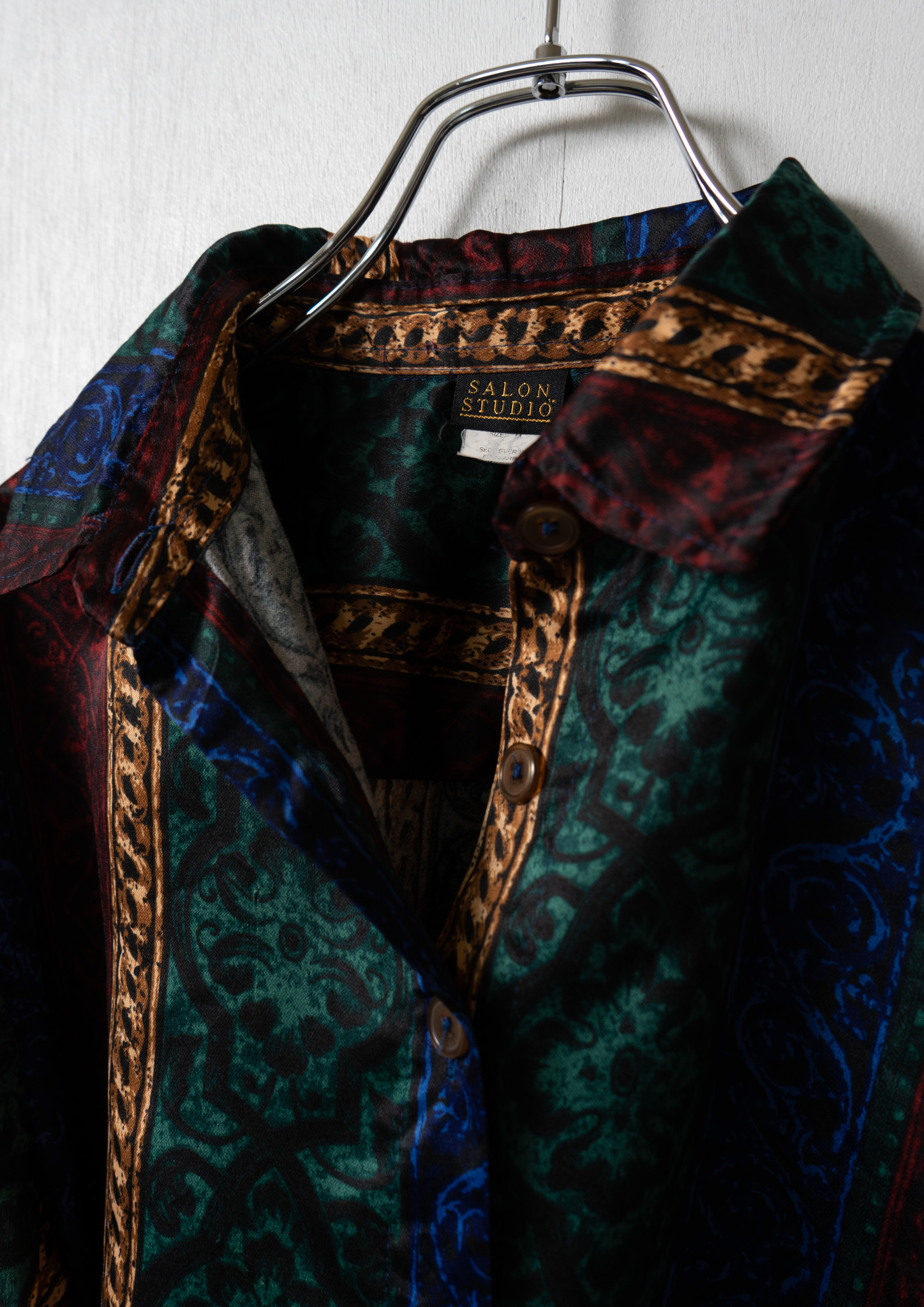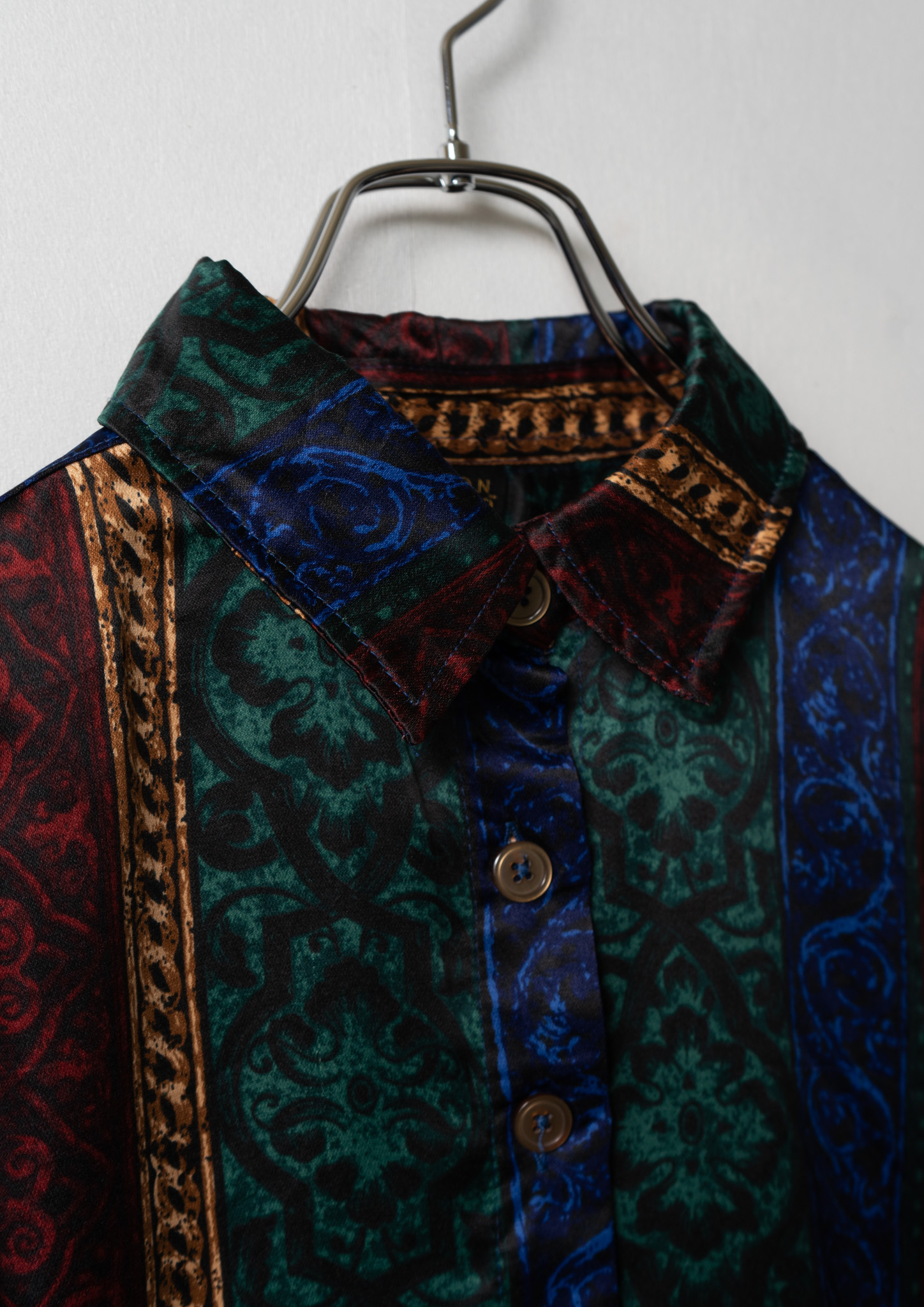 80's Multi Color Damask × Stripe pattern Blouse