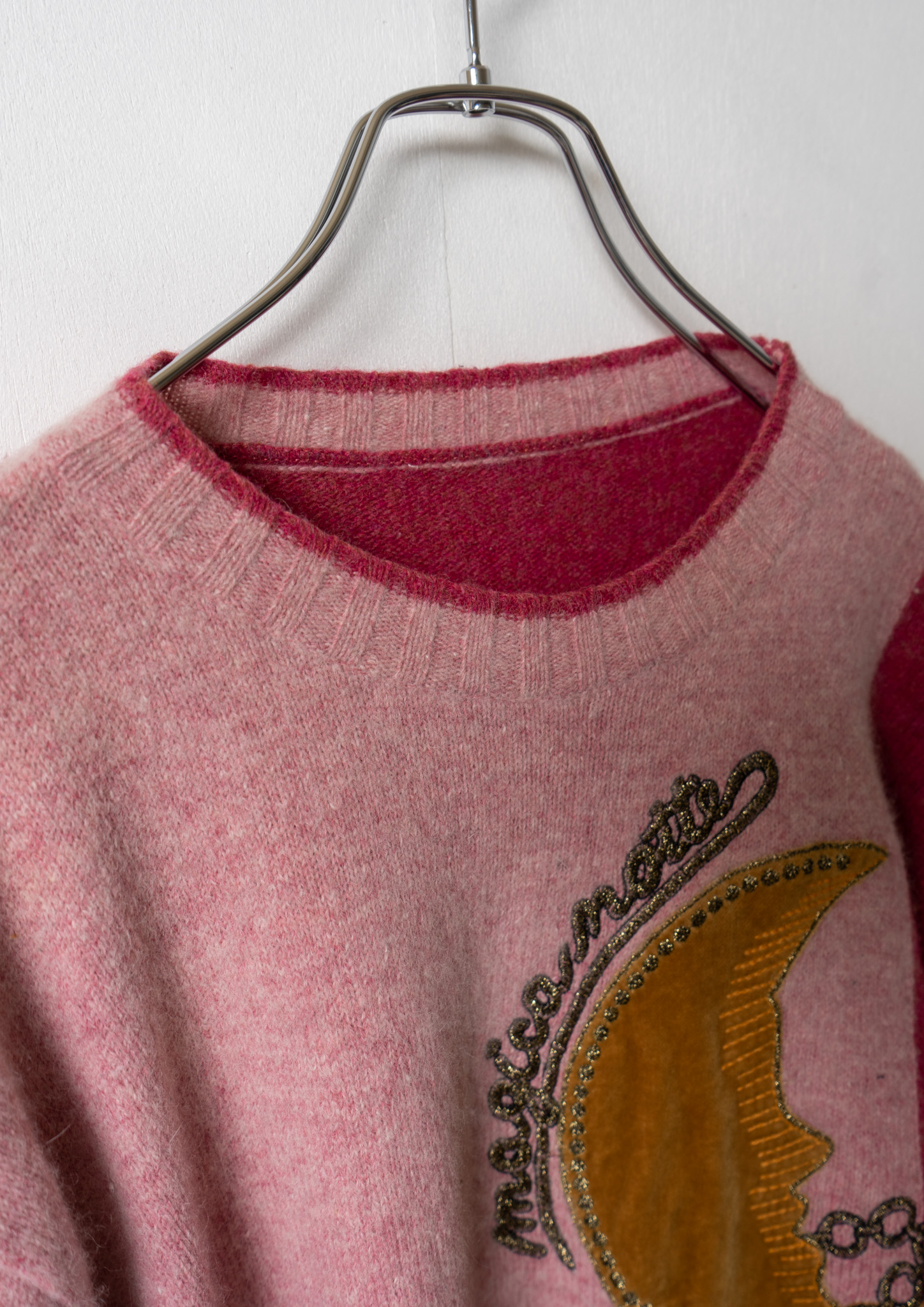 90's Cat × Moon Point Lame Design Pink Sweater