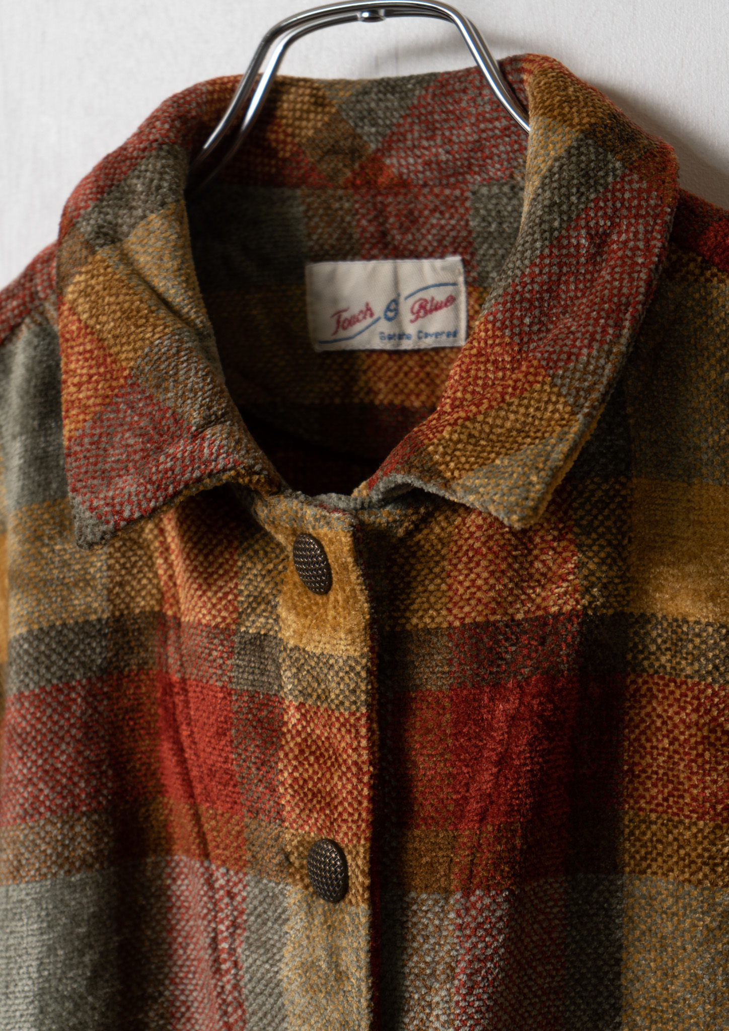 80's Austria Tape×Patchwork Design Black Velours Jacket