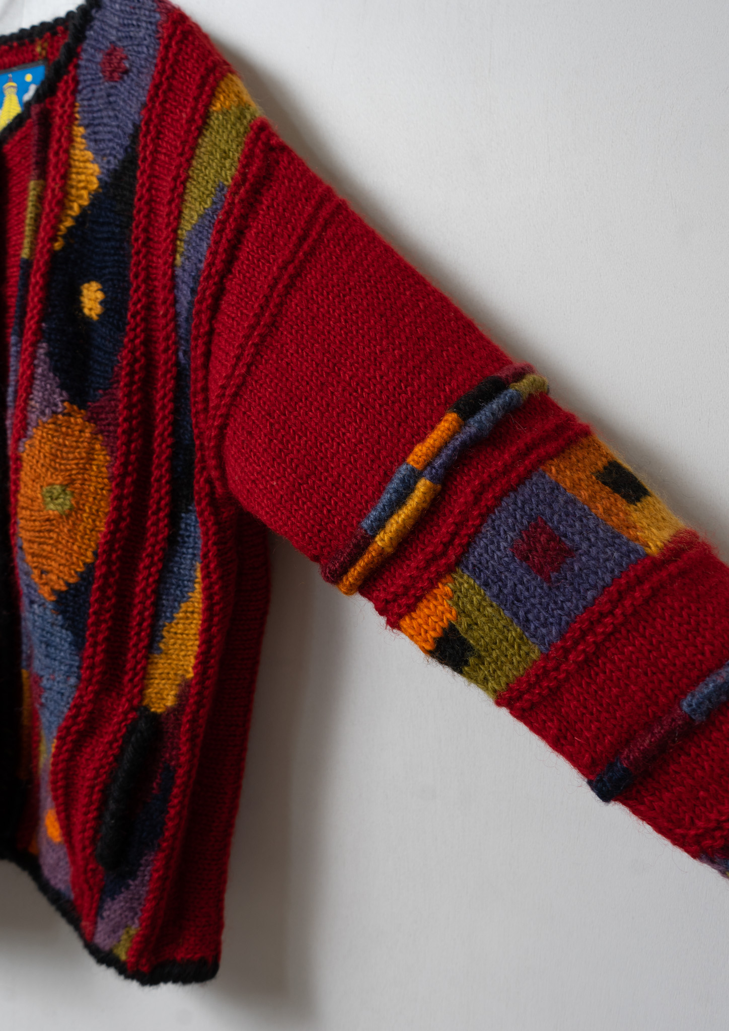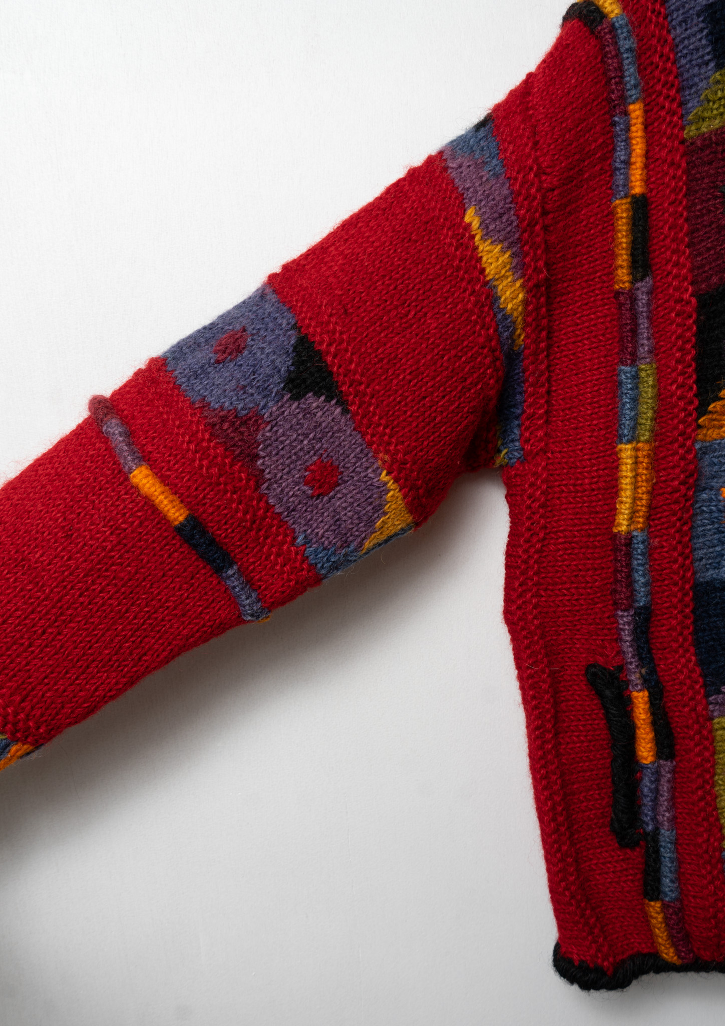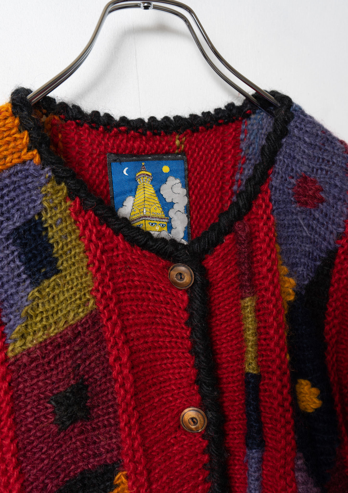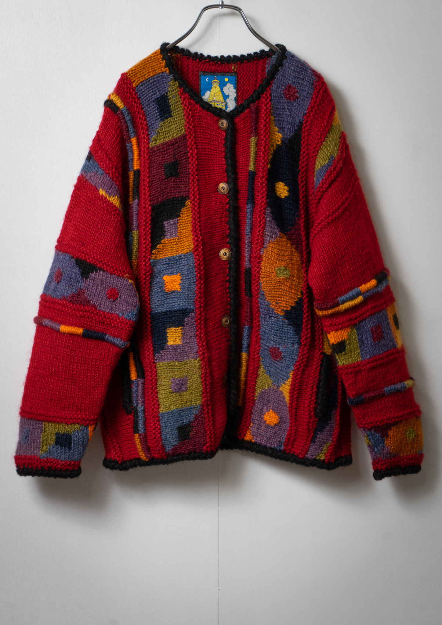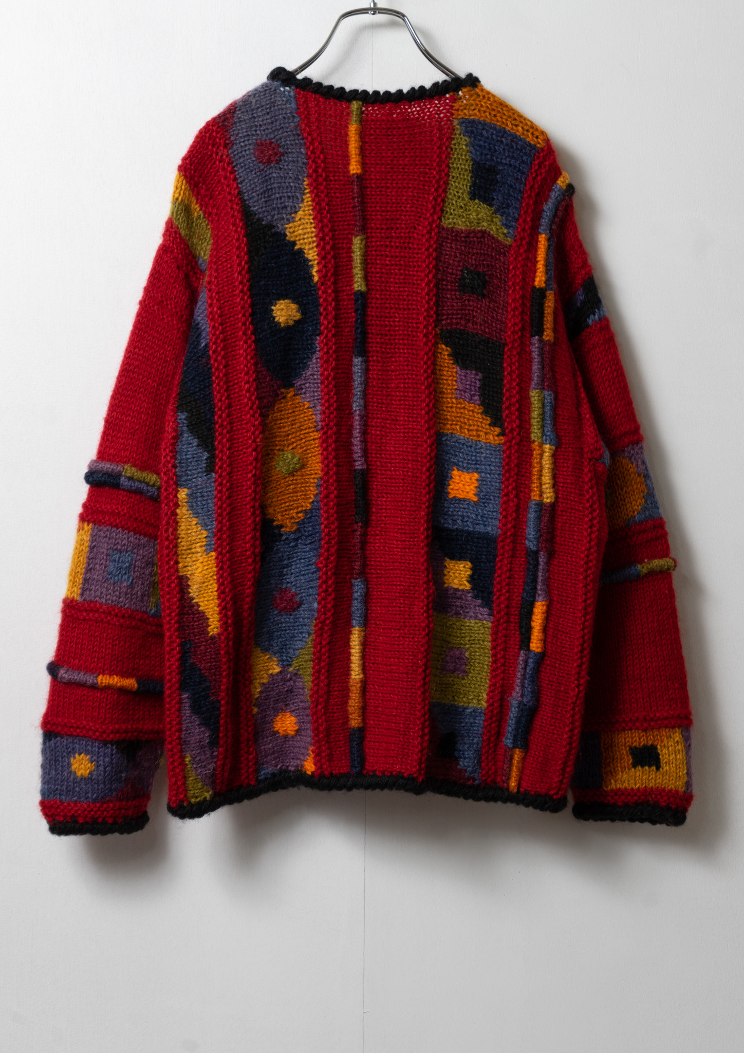 80~90's Unique Pattern Multi Collor Wool Cardigan