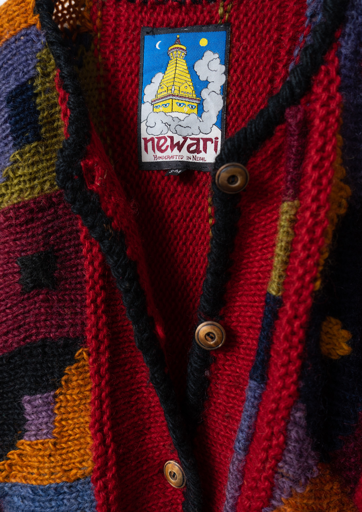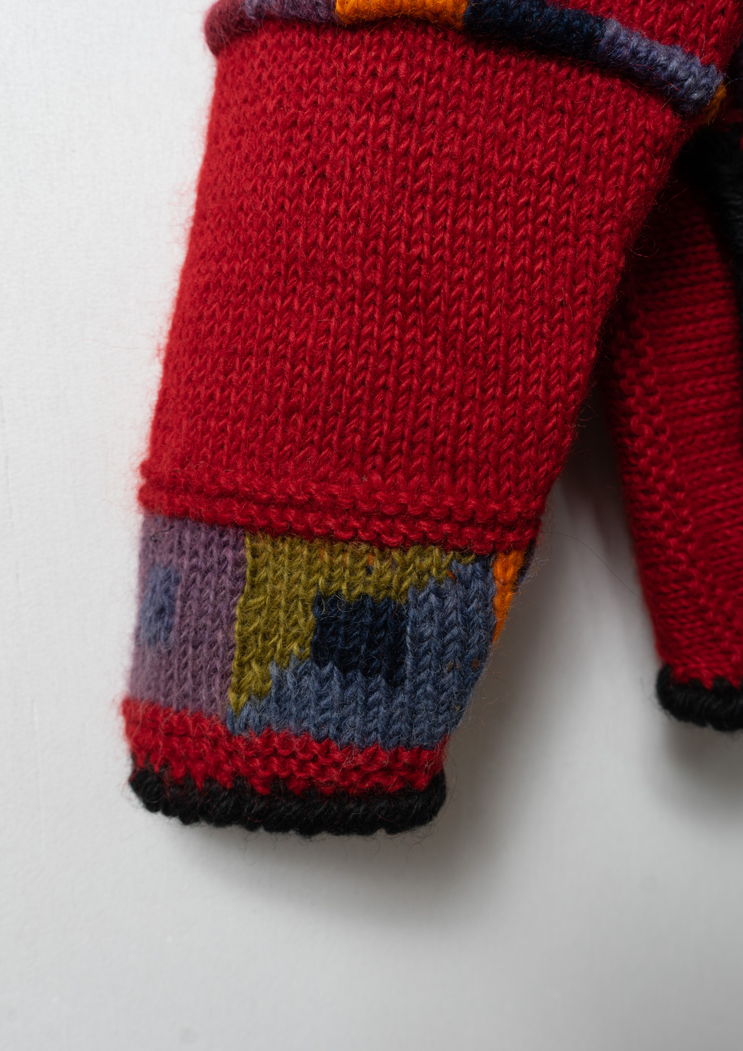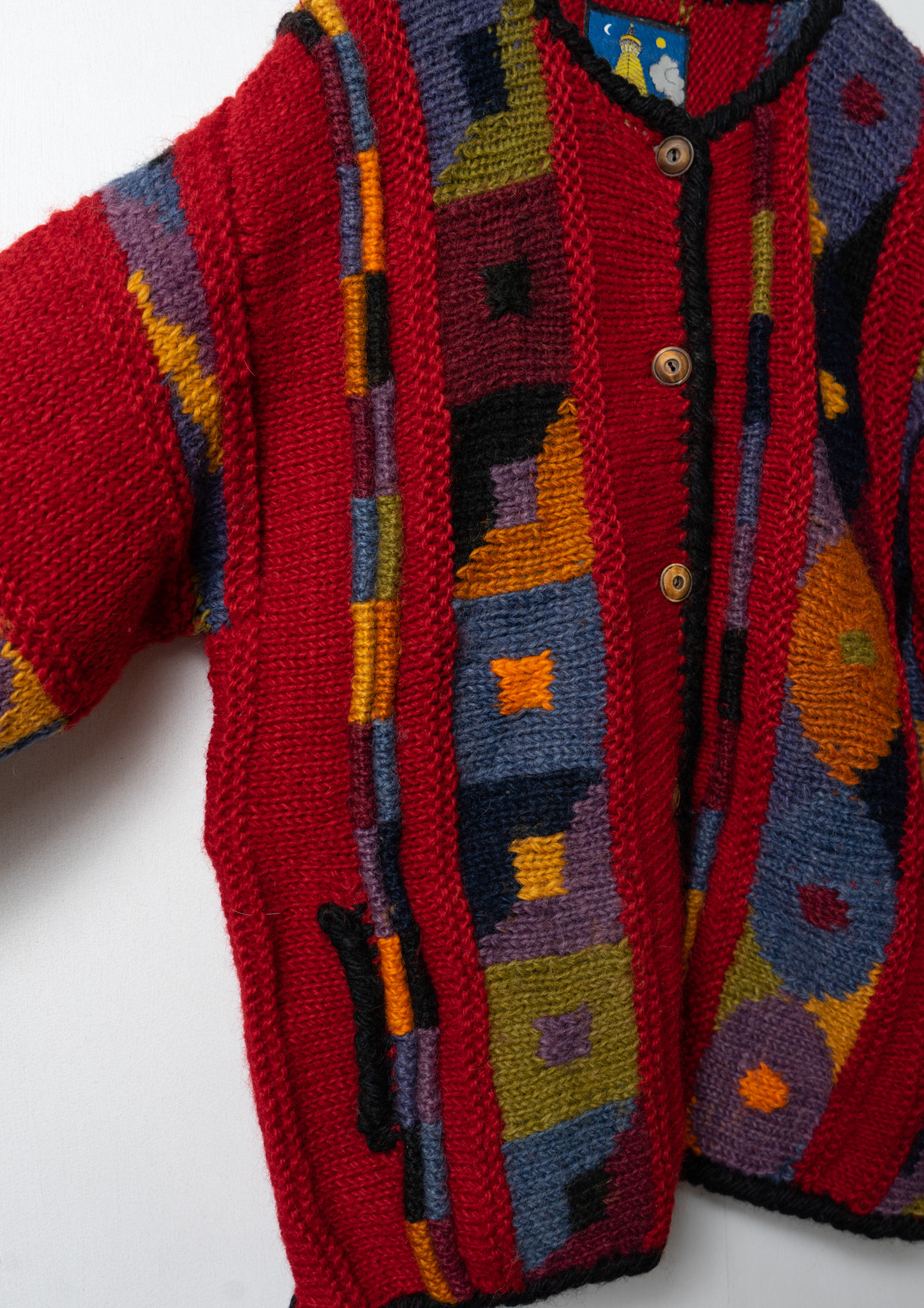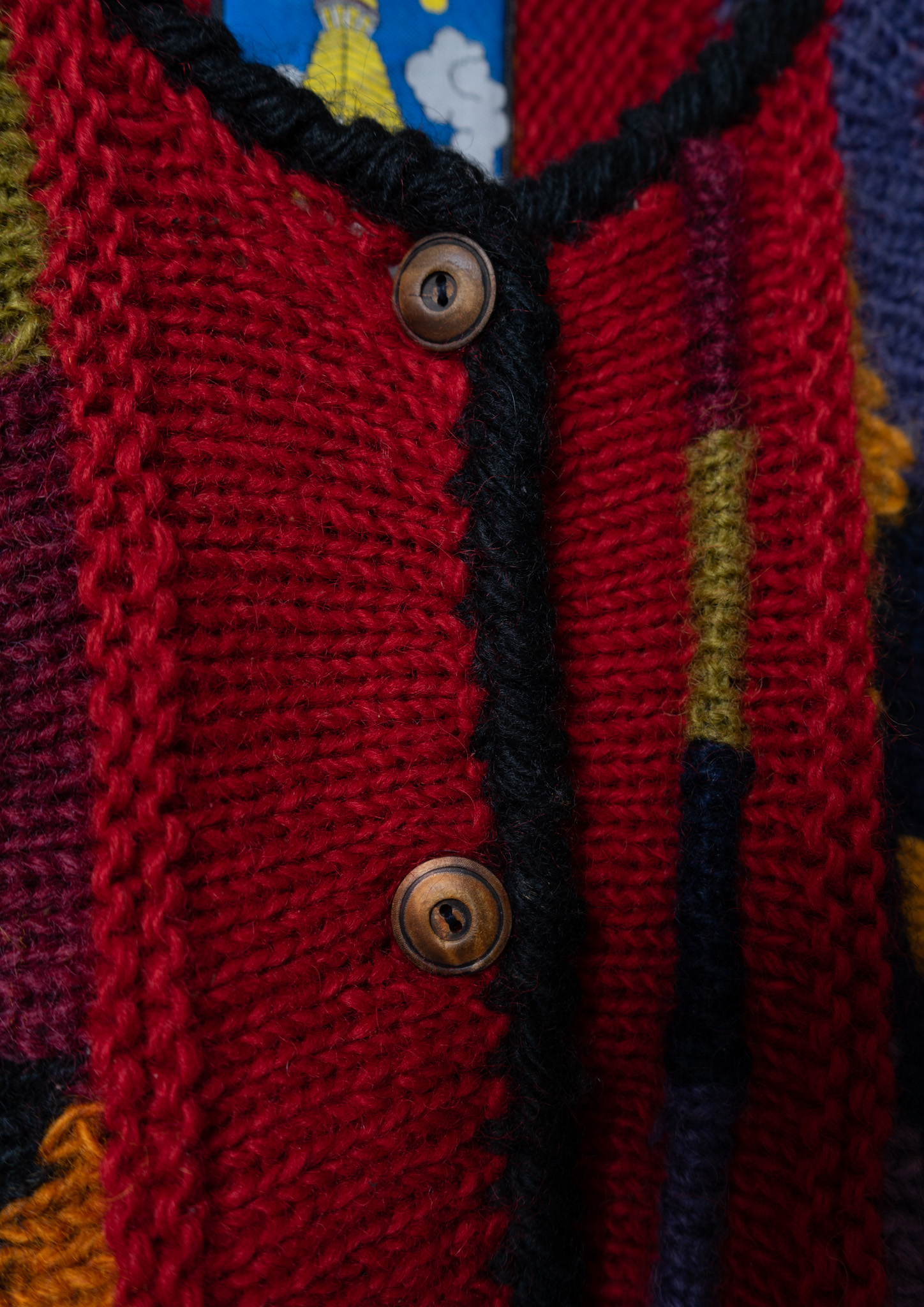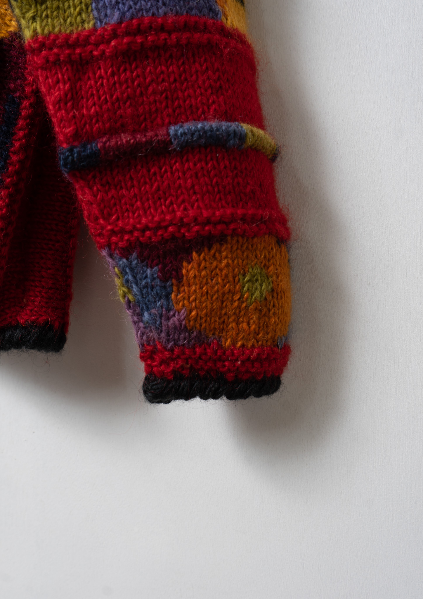 80~90's Unique Pattern Multi Collor Wool Cardigan