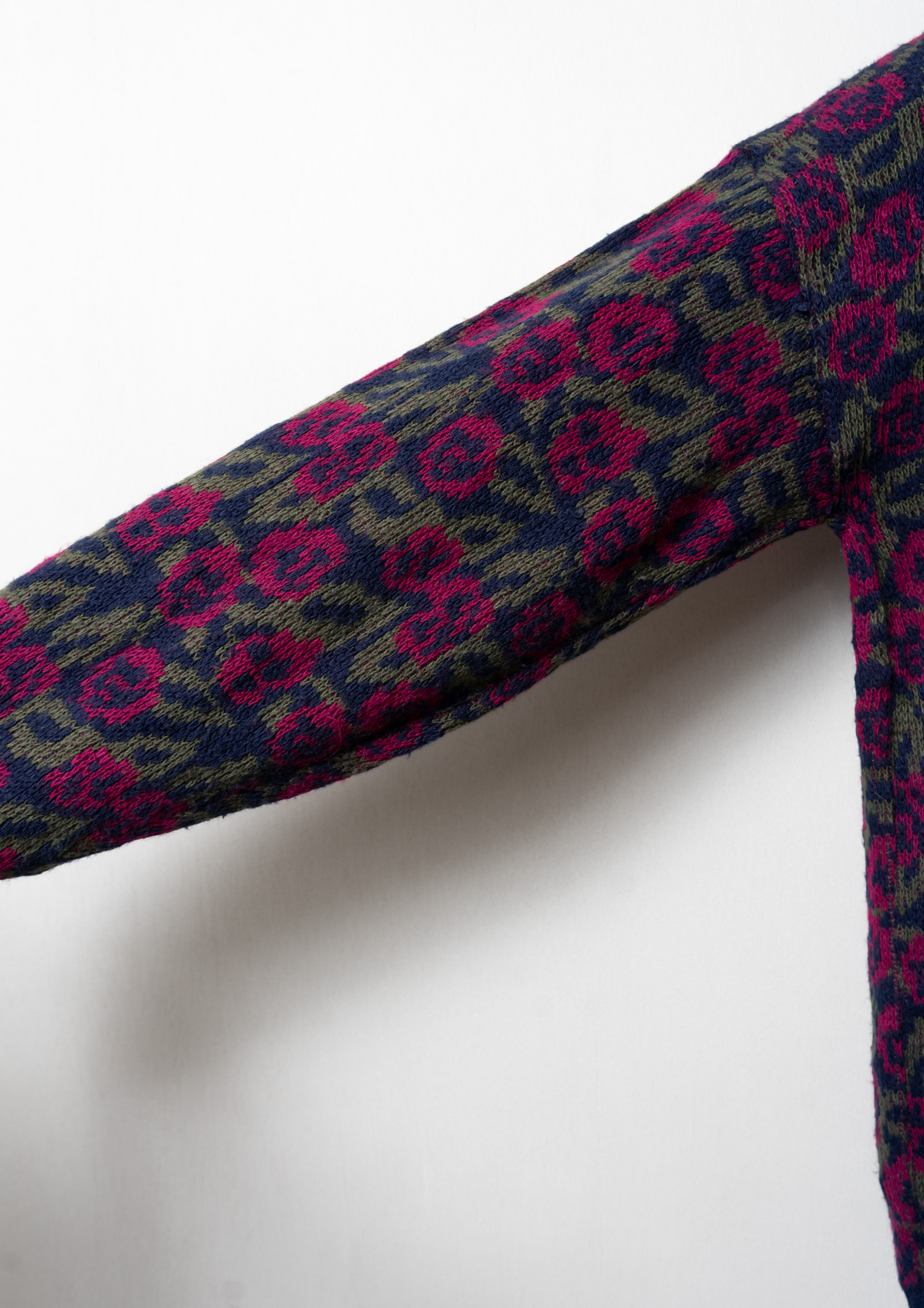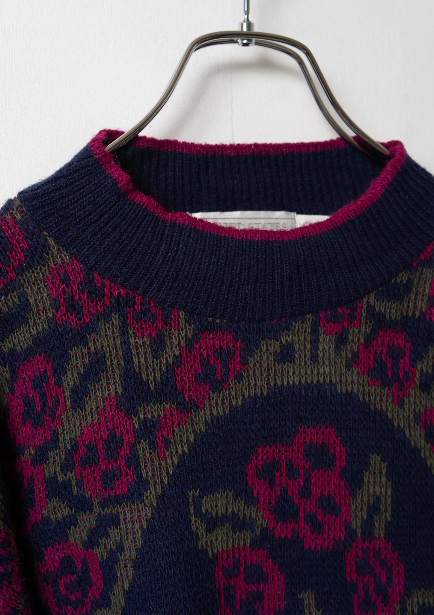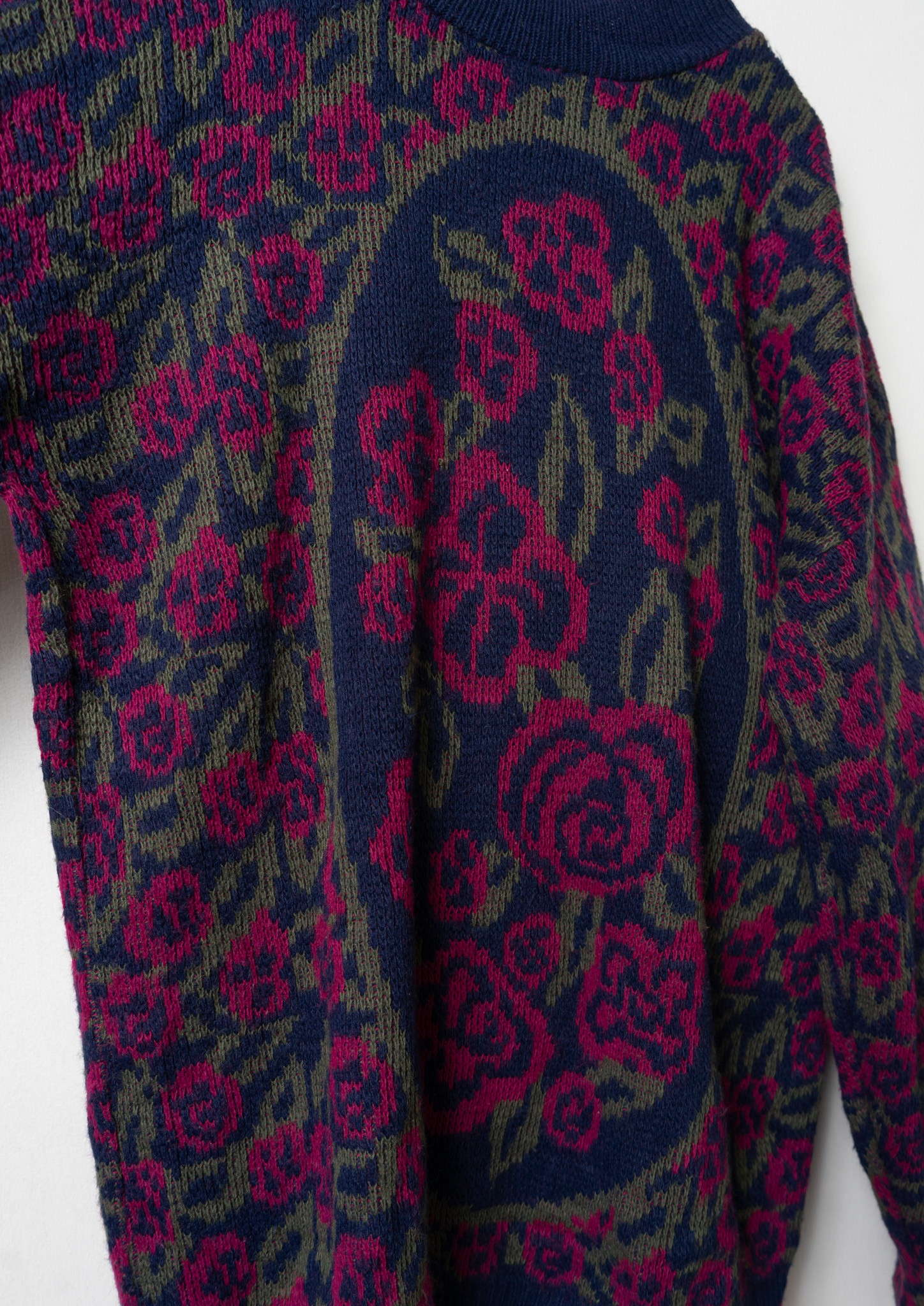 80's USA Flower Pattern Stand Neck Navy Sweater