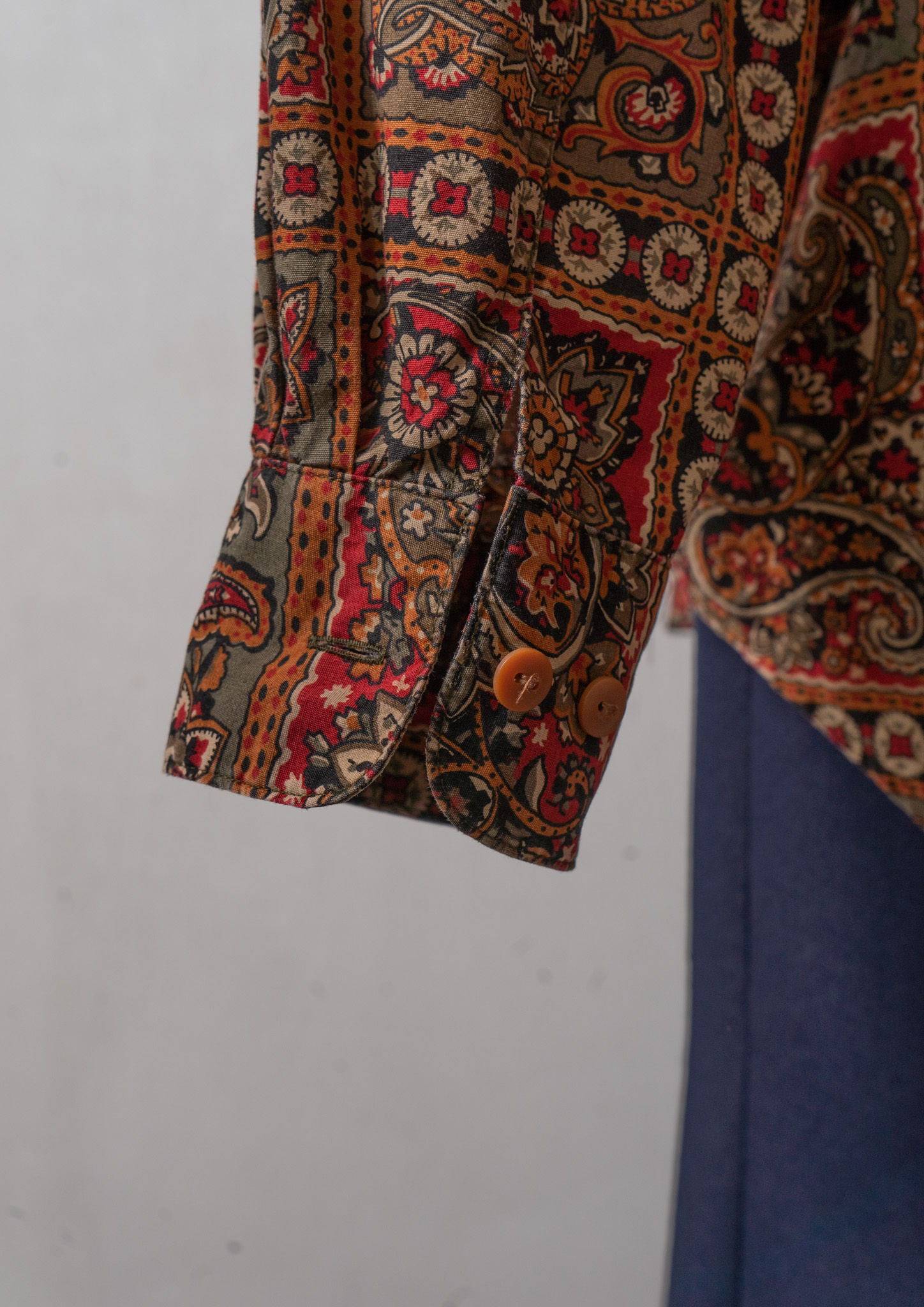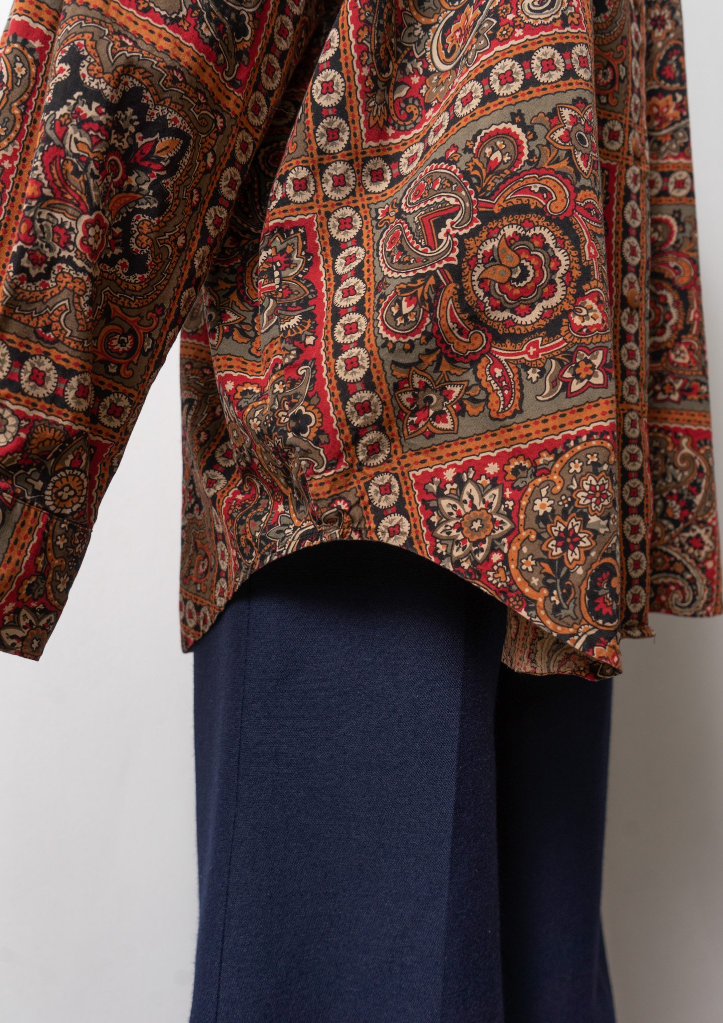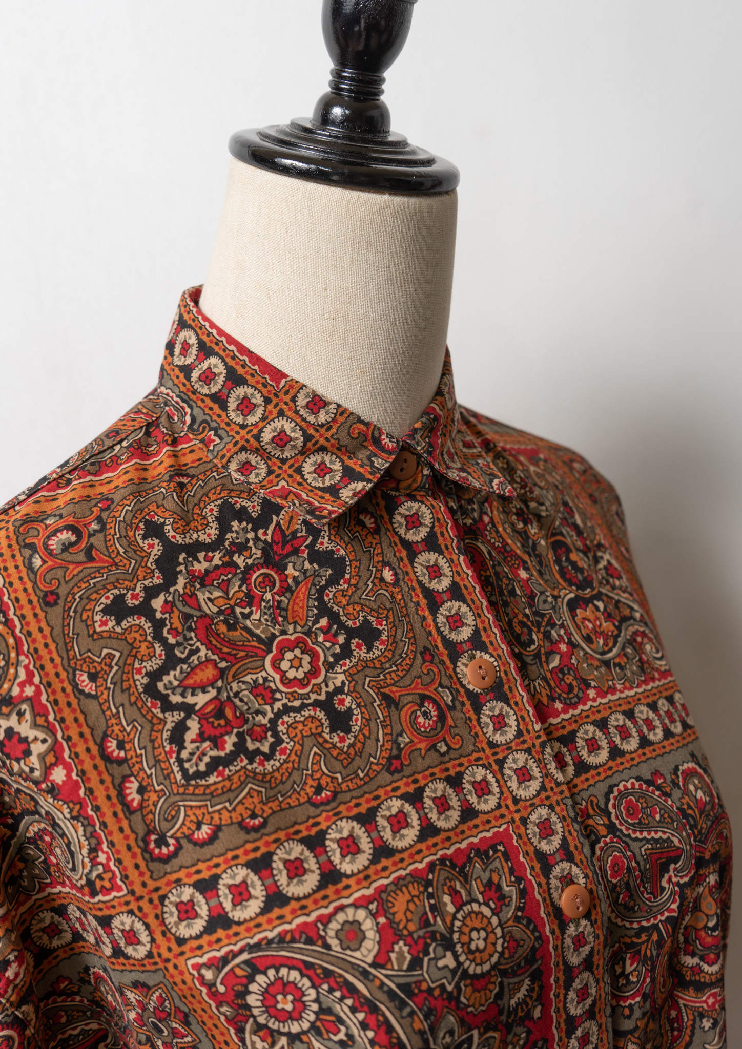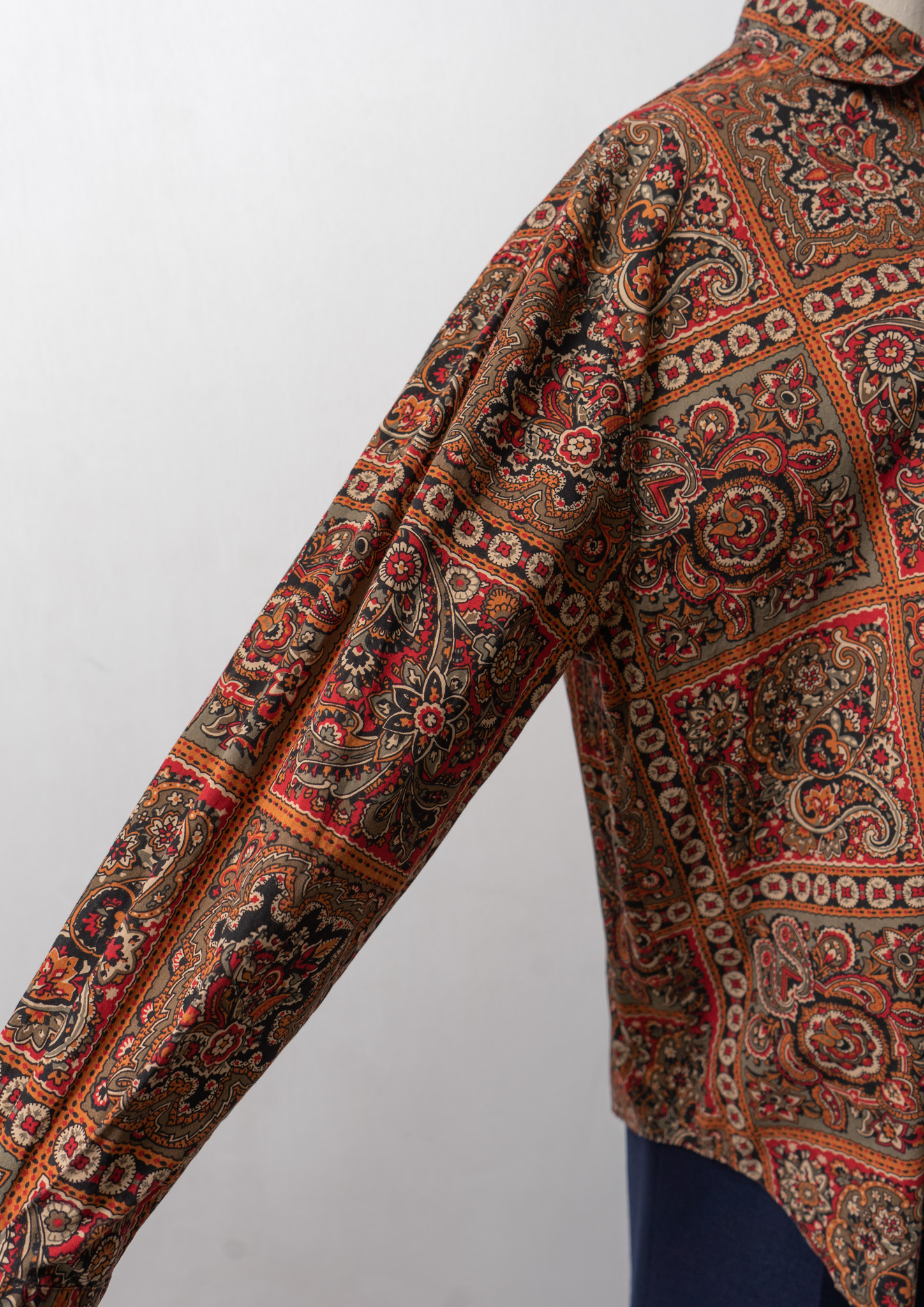 80~90's Paisley Patchwork Like Pattern Orange Blouse