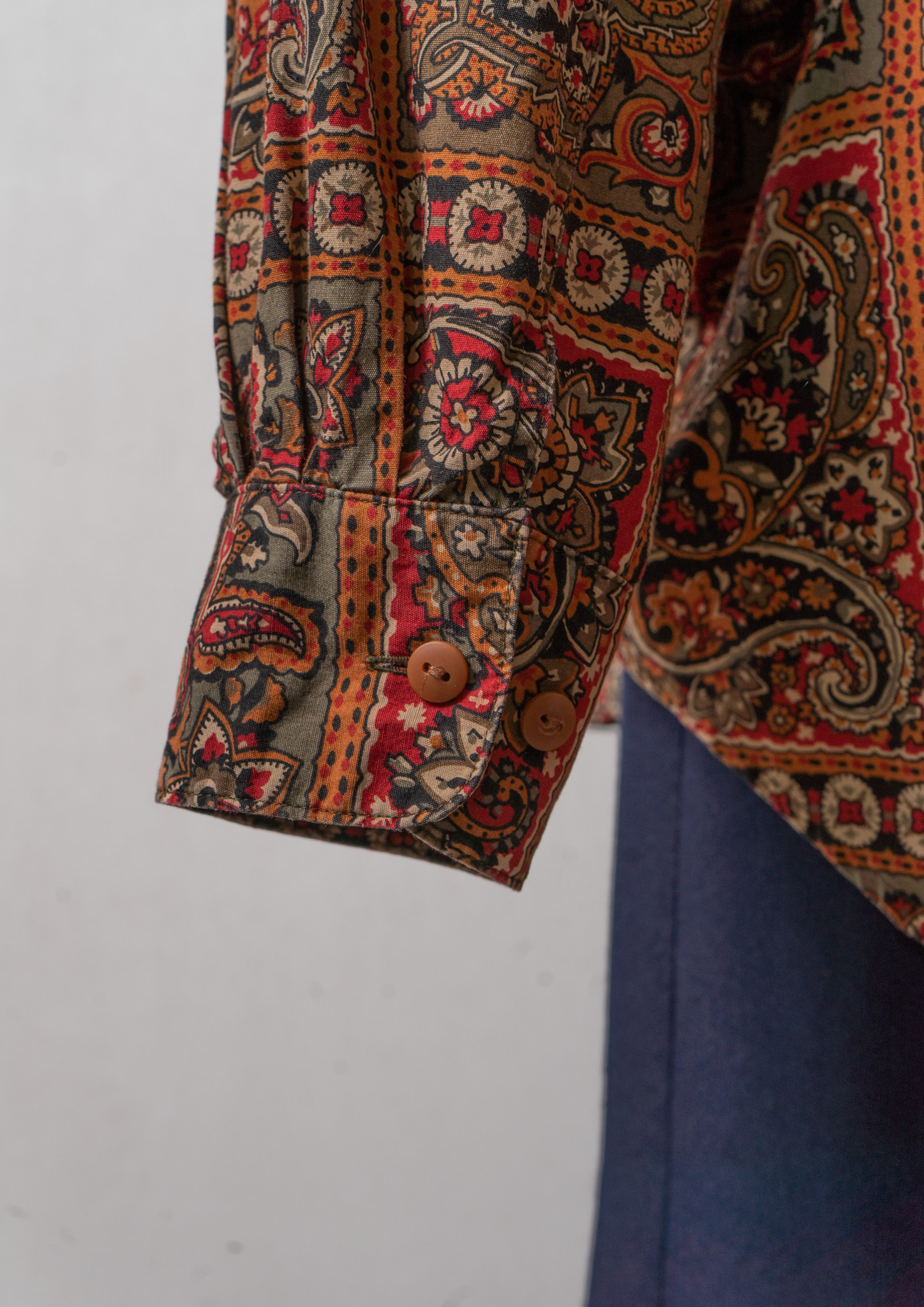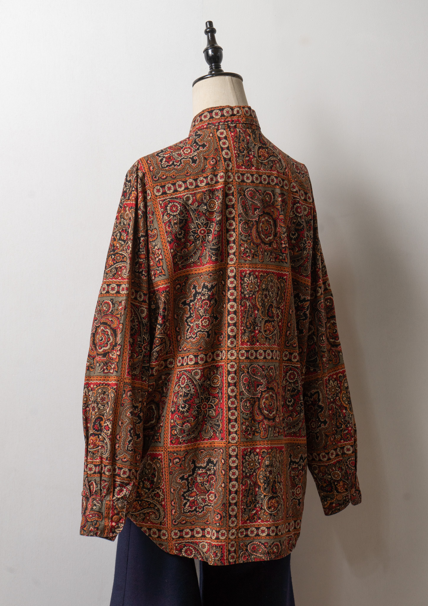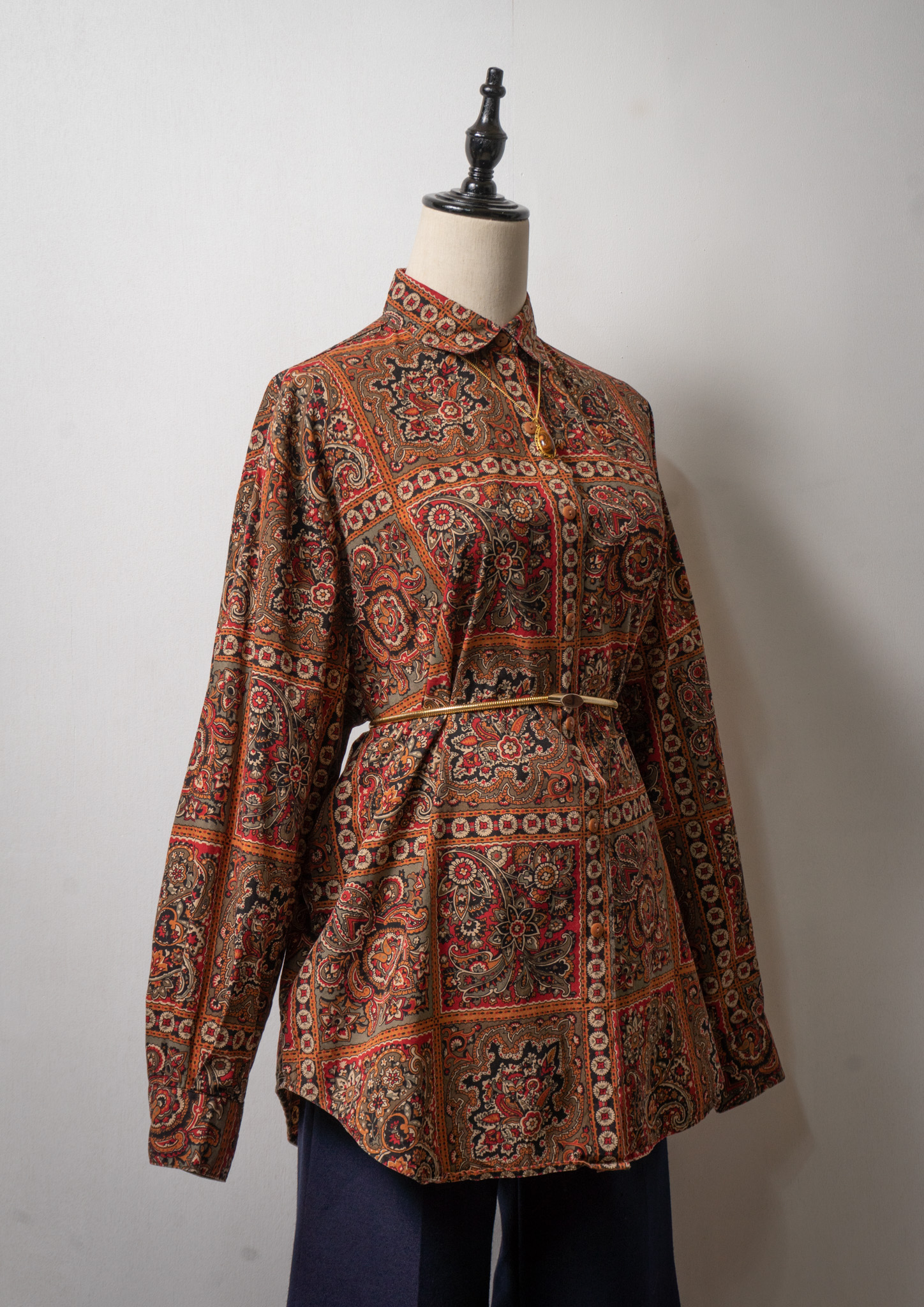 80~90's Paisley Patchwork Like Pattern Orange Blouse
