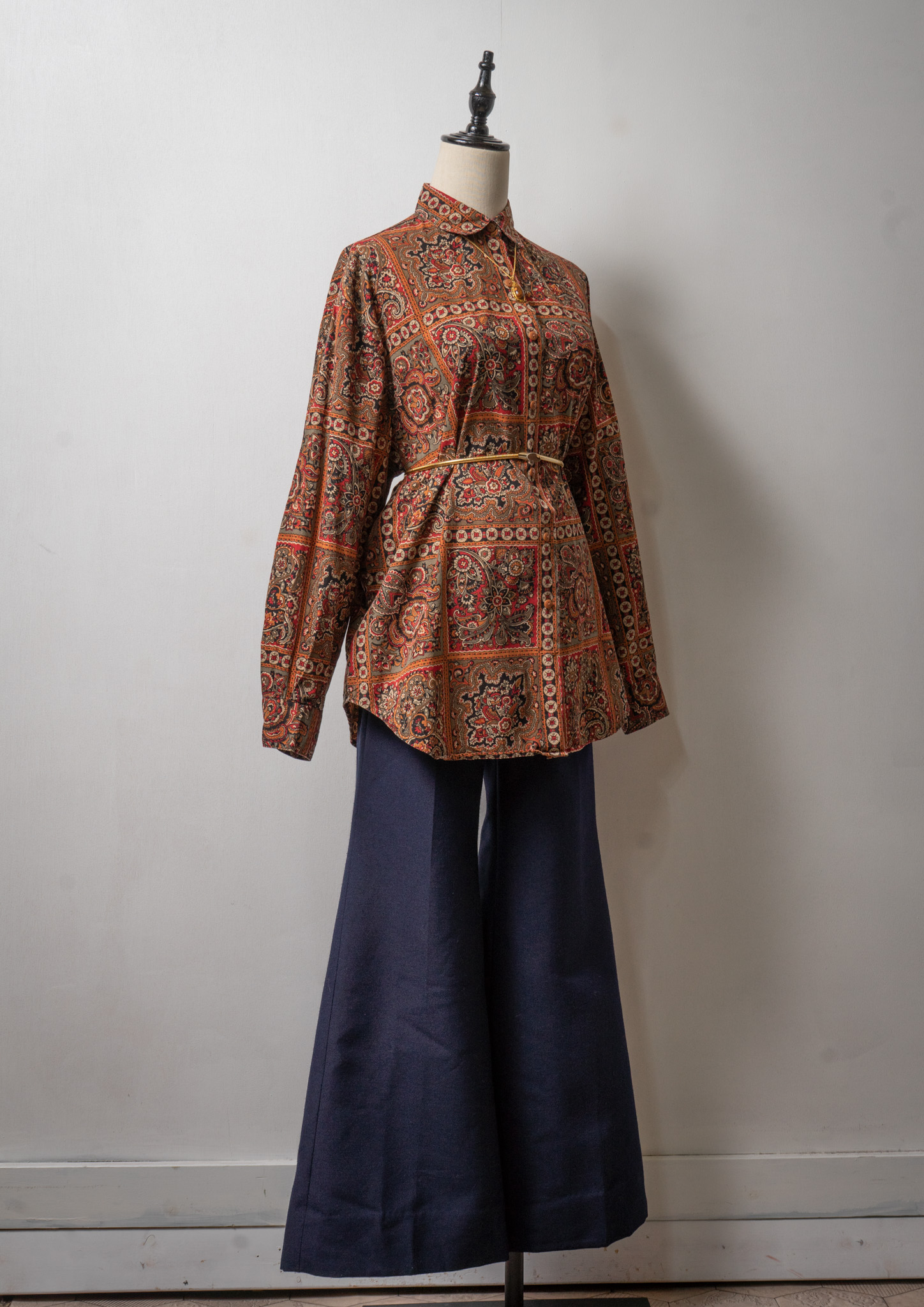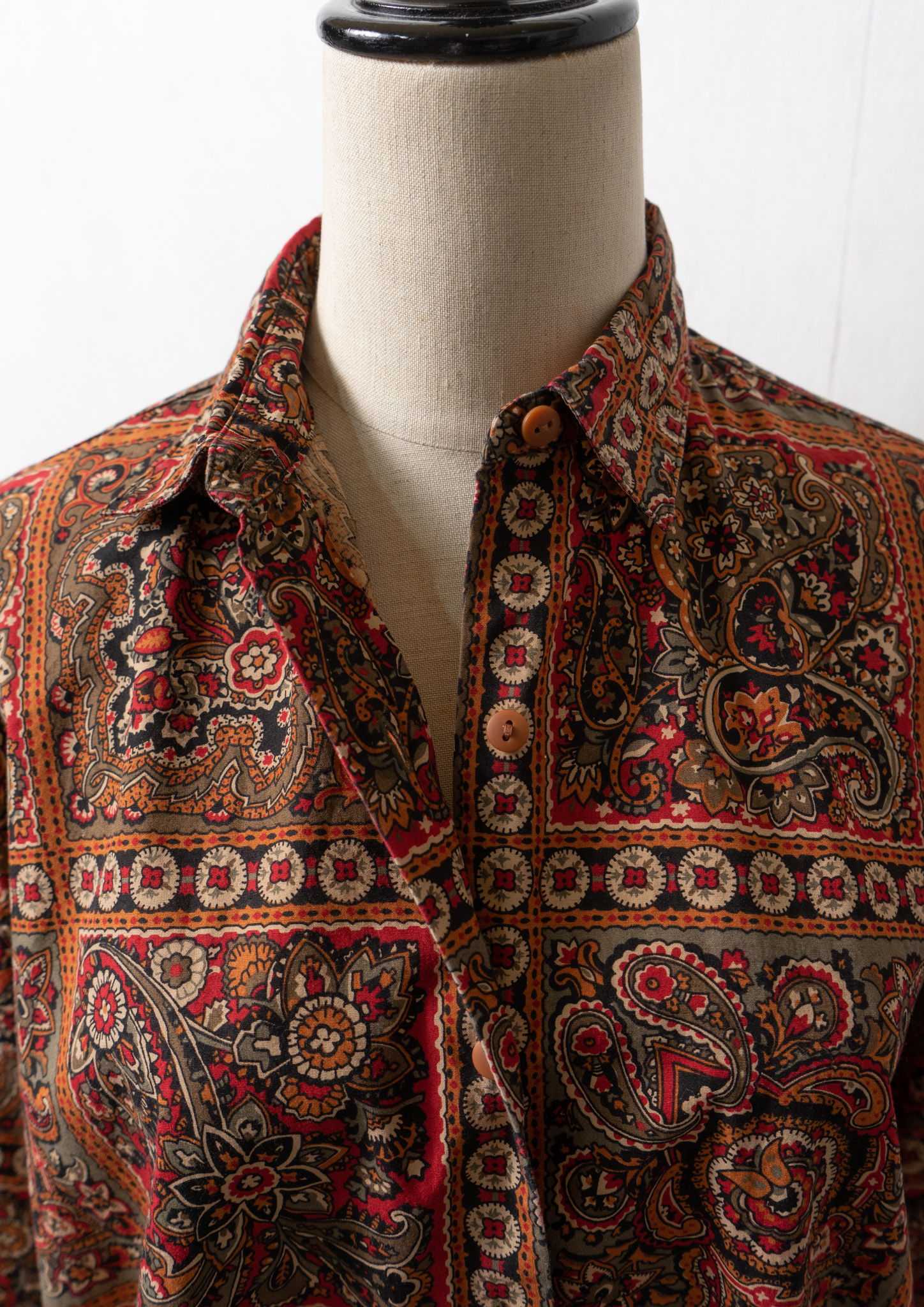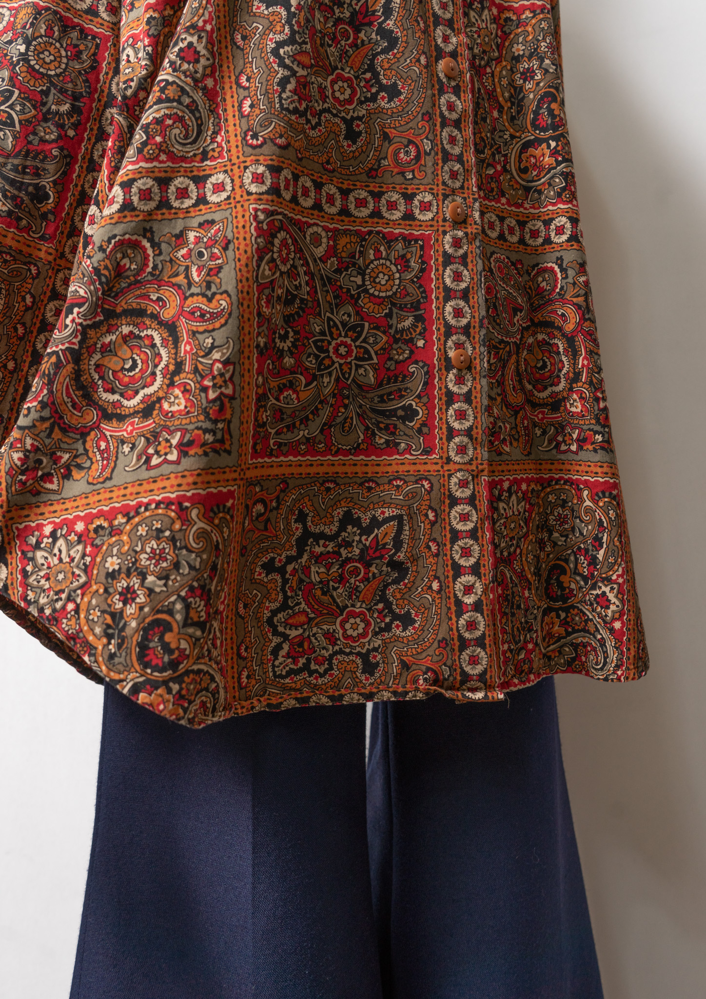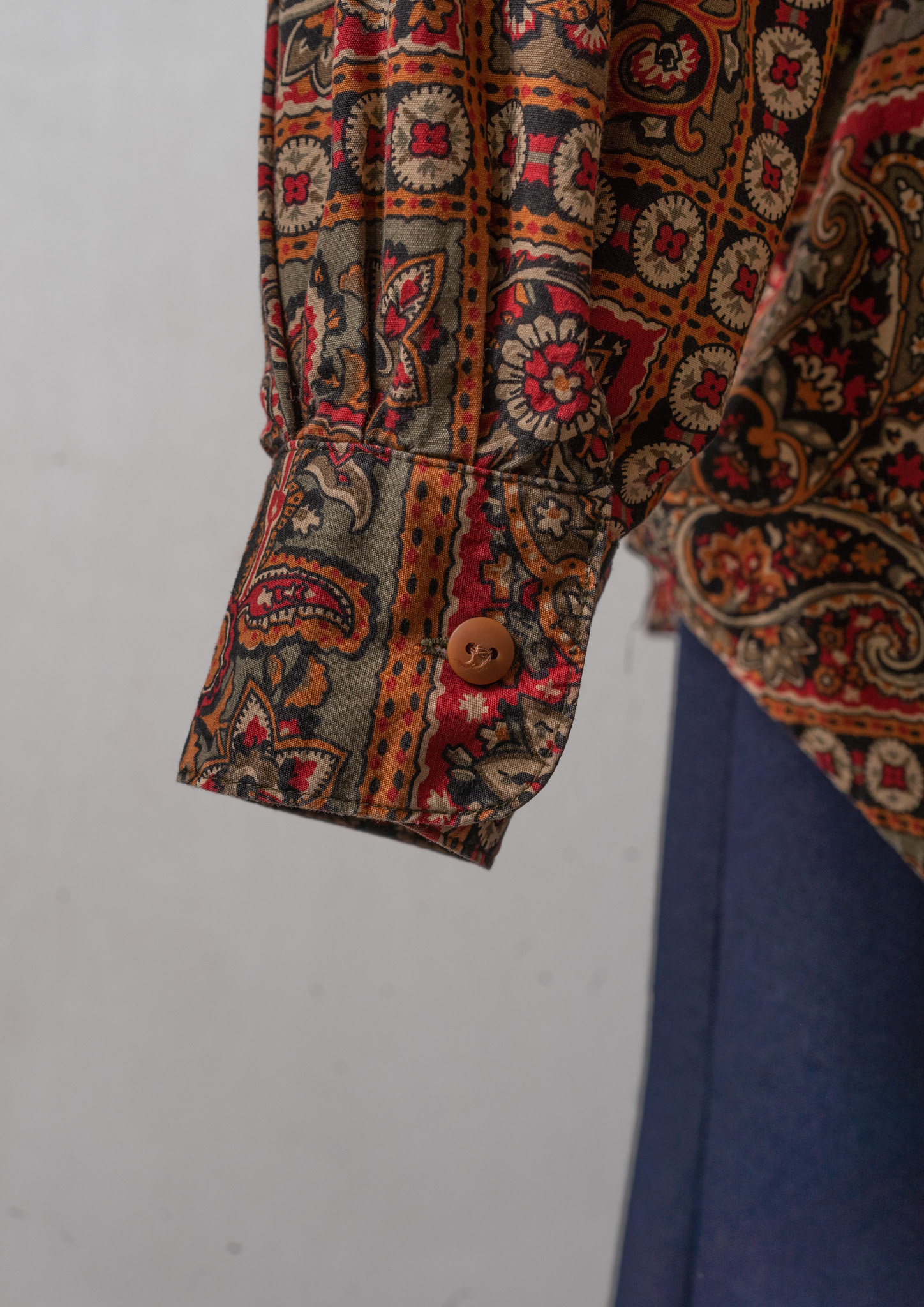 80~90's Paisley Patchwork Like Pattern Orange Blouse