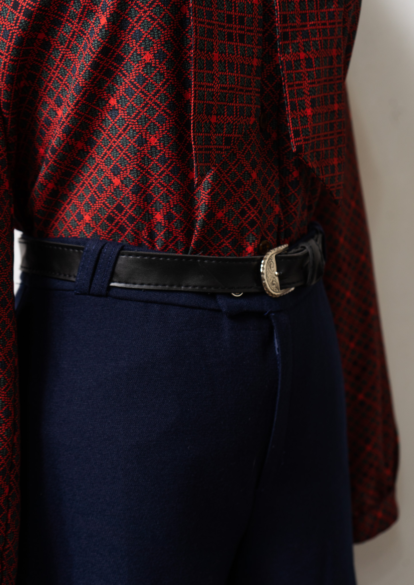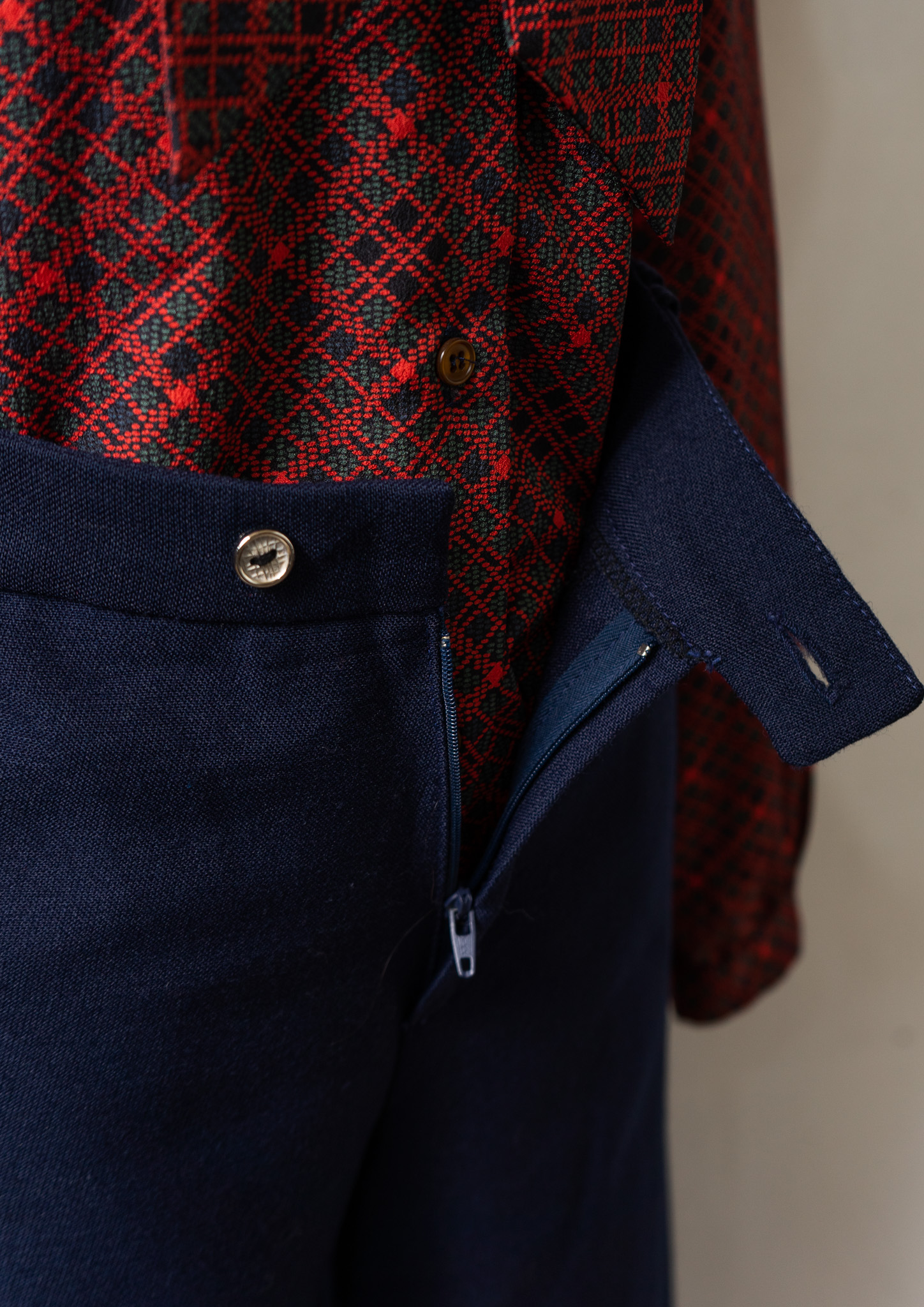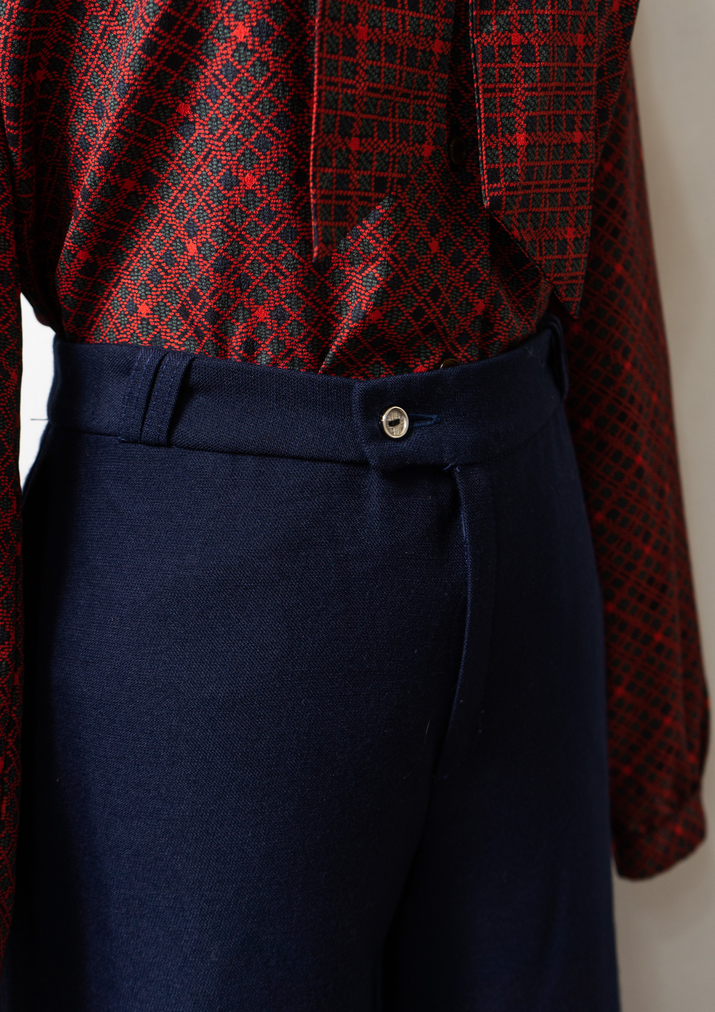 70's France Dark Red Glencheck Pattern Wool Pants