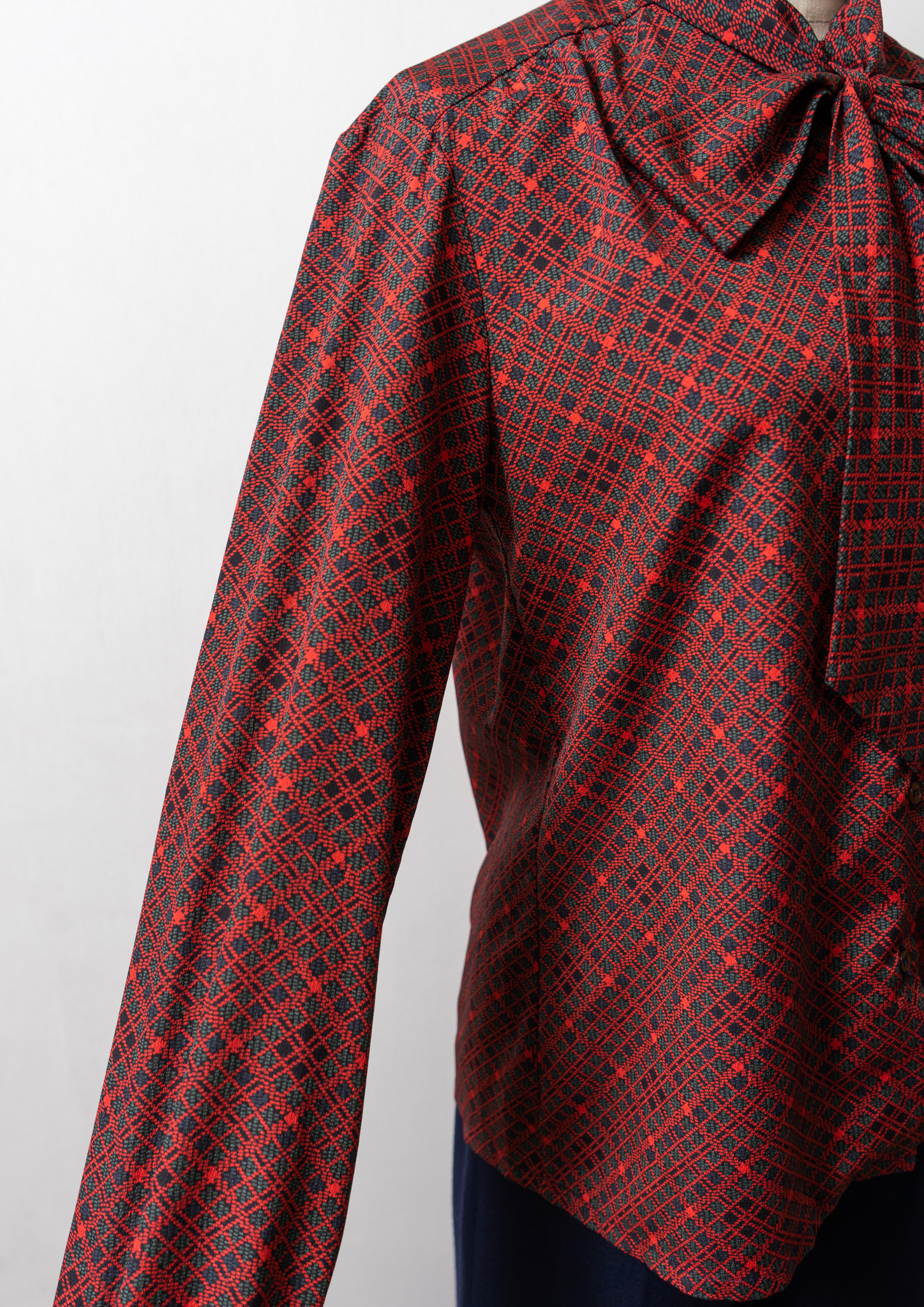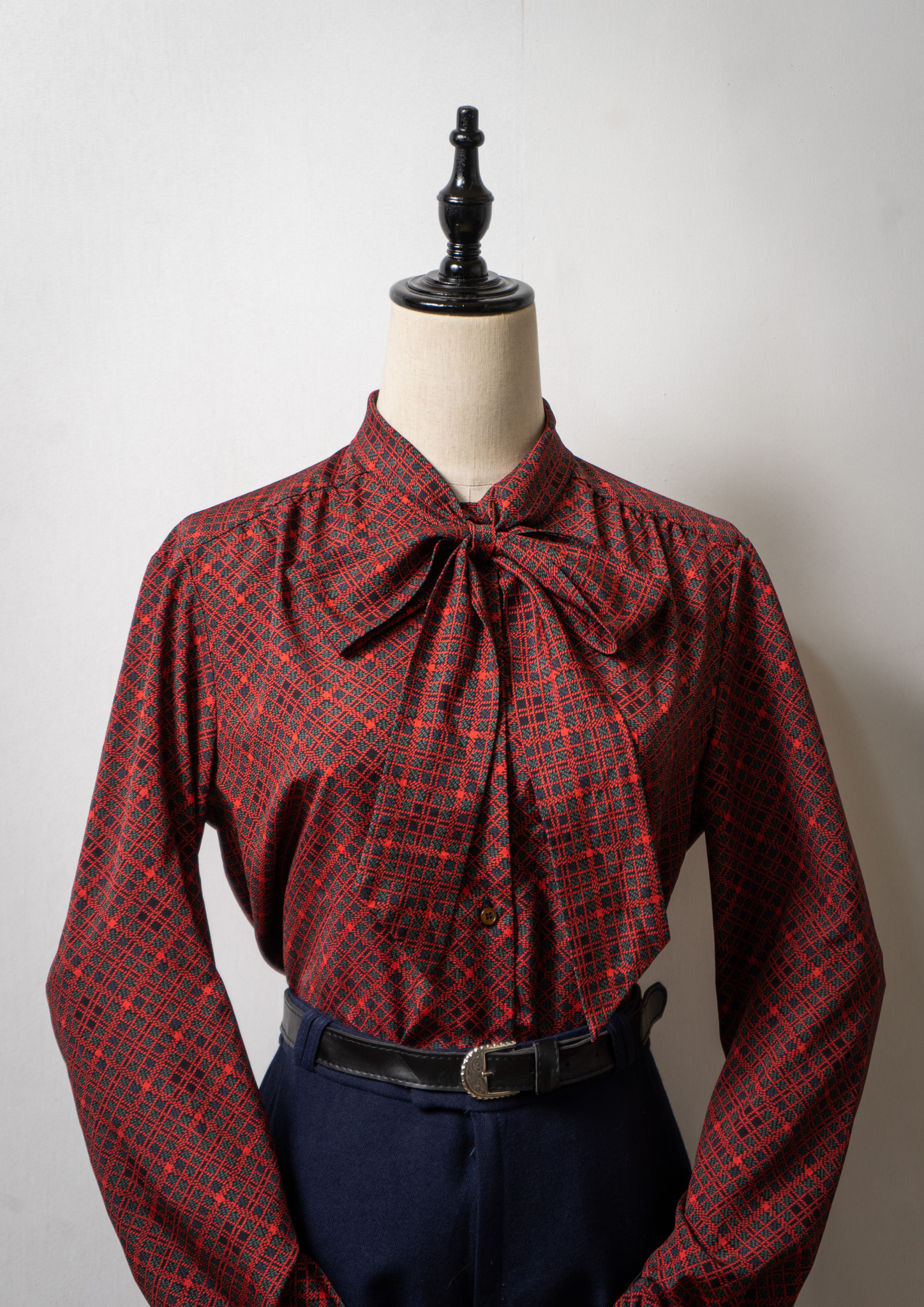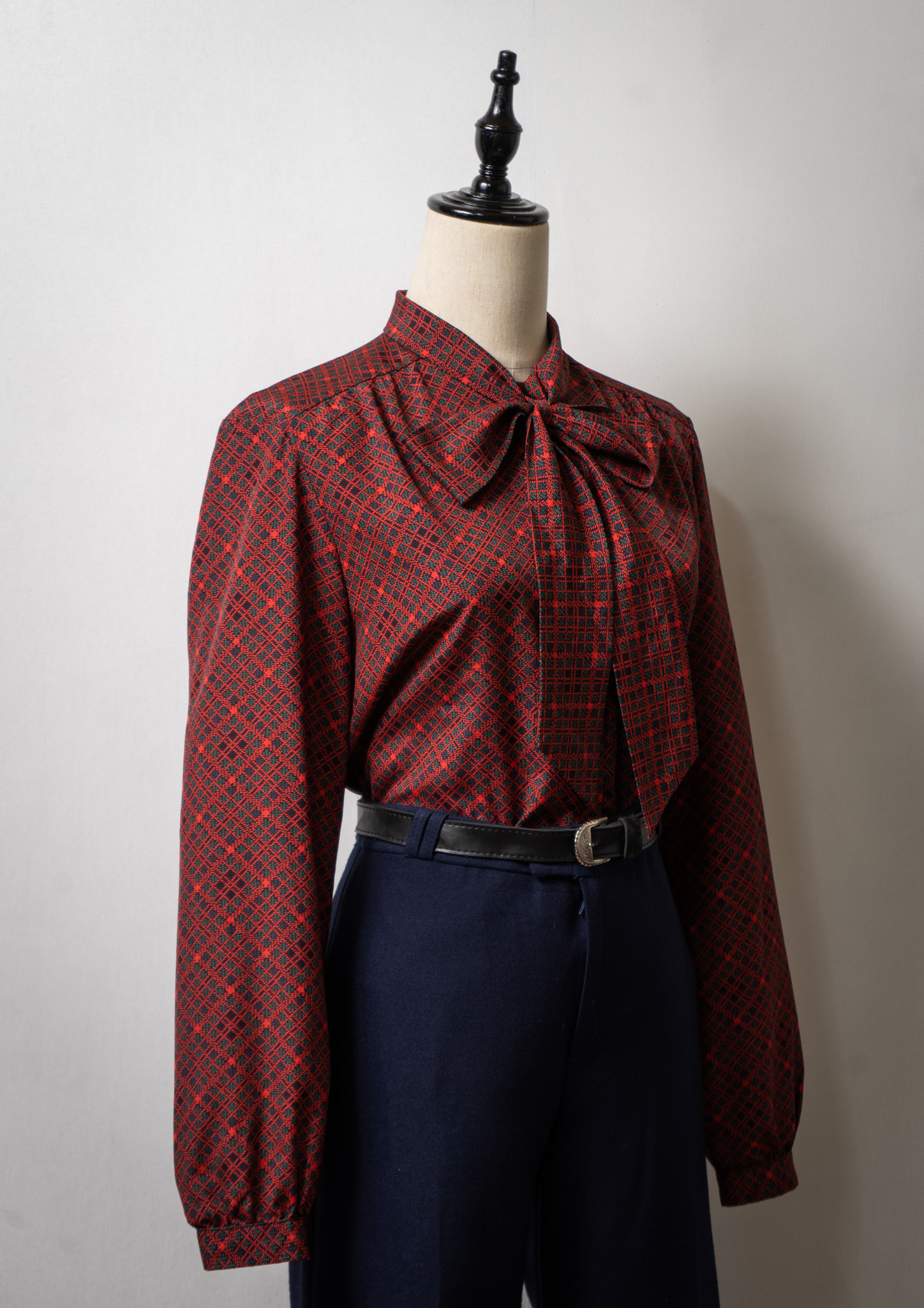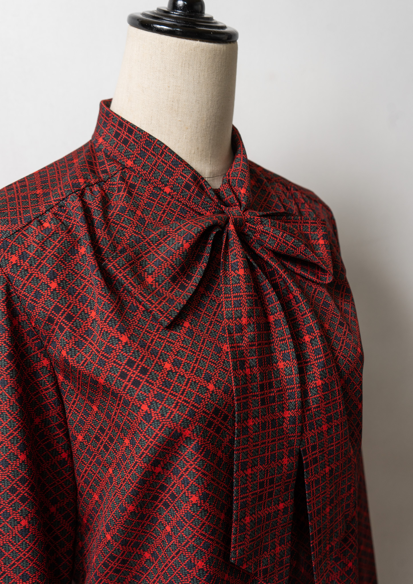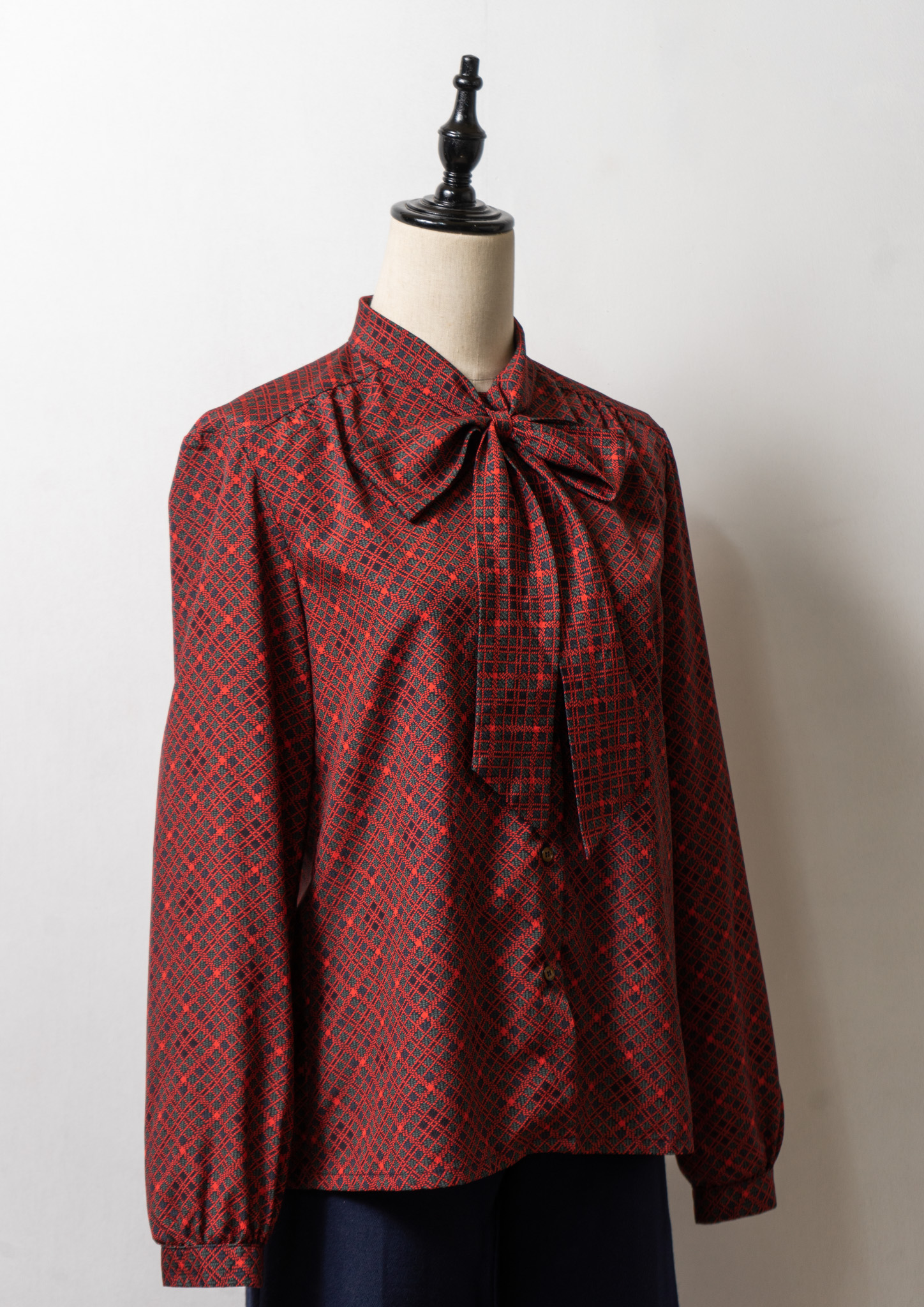 70~80's Dot Check Pattern Bow-tie Blouse