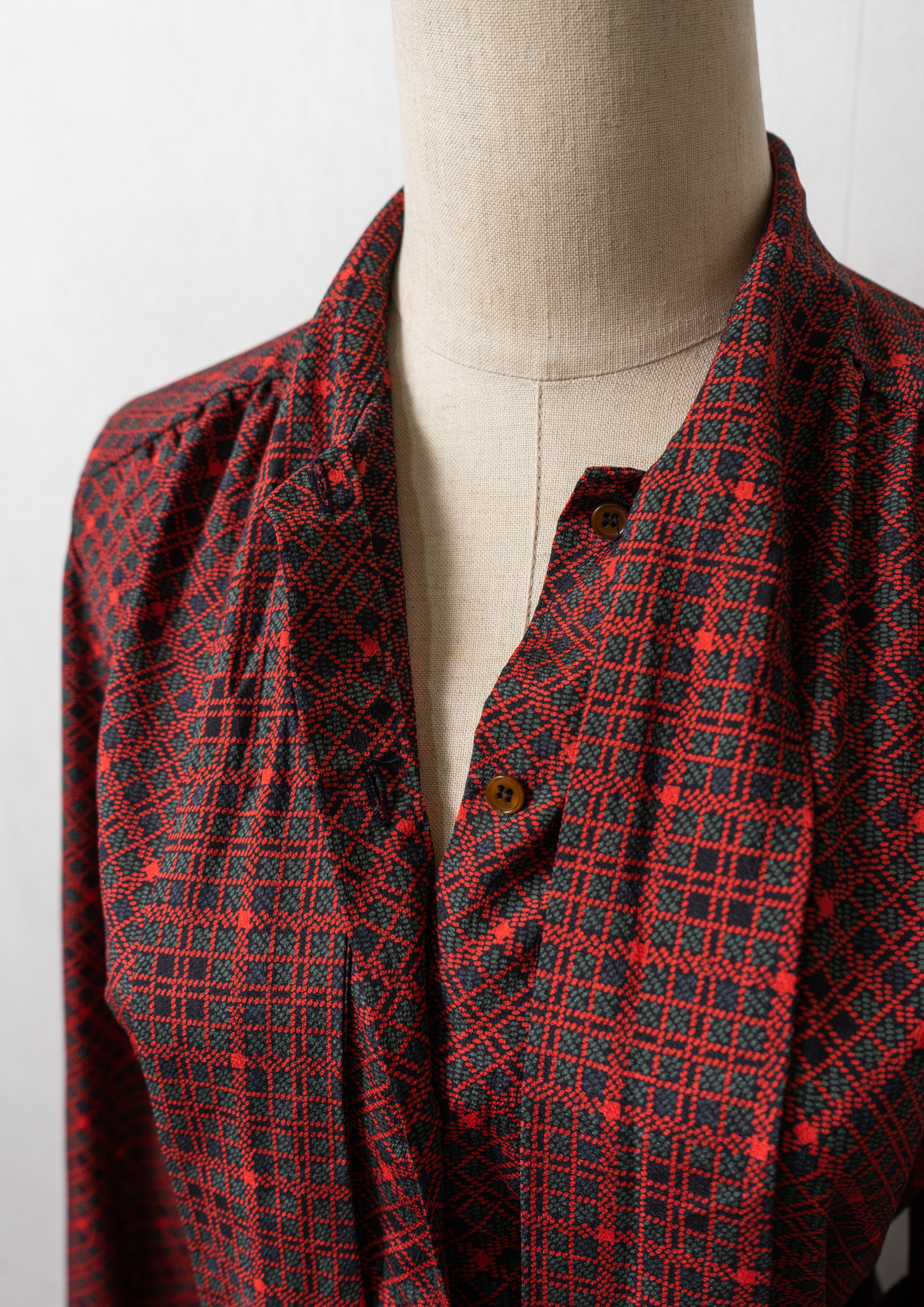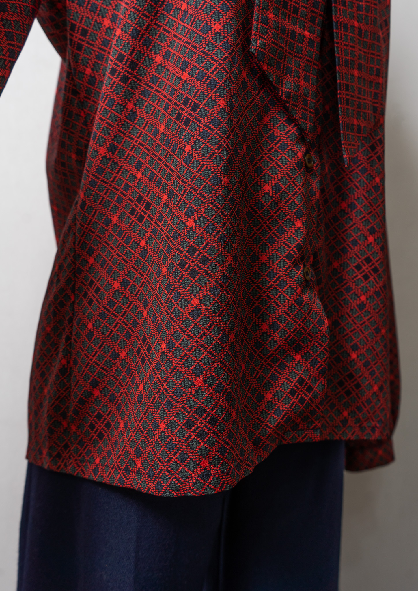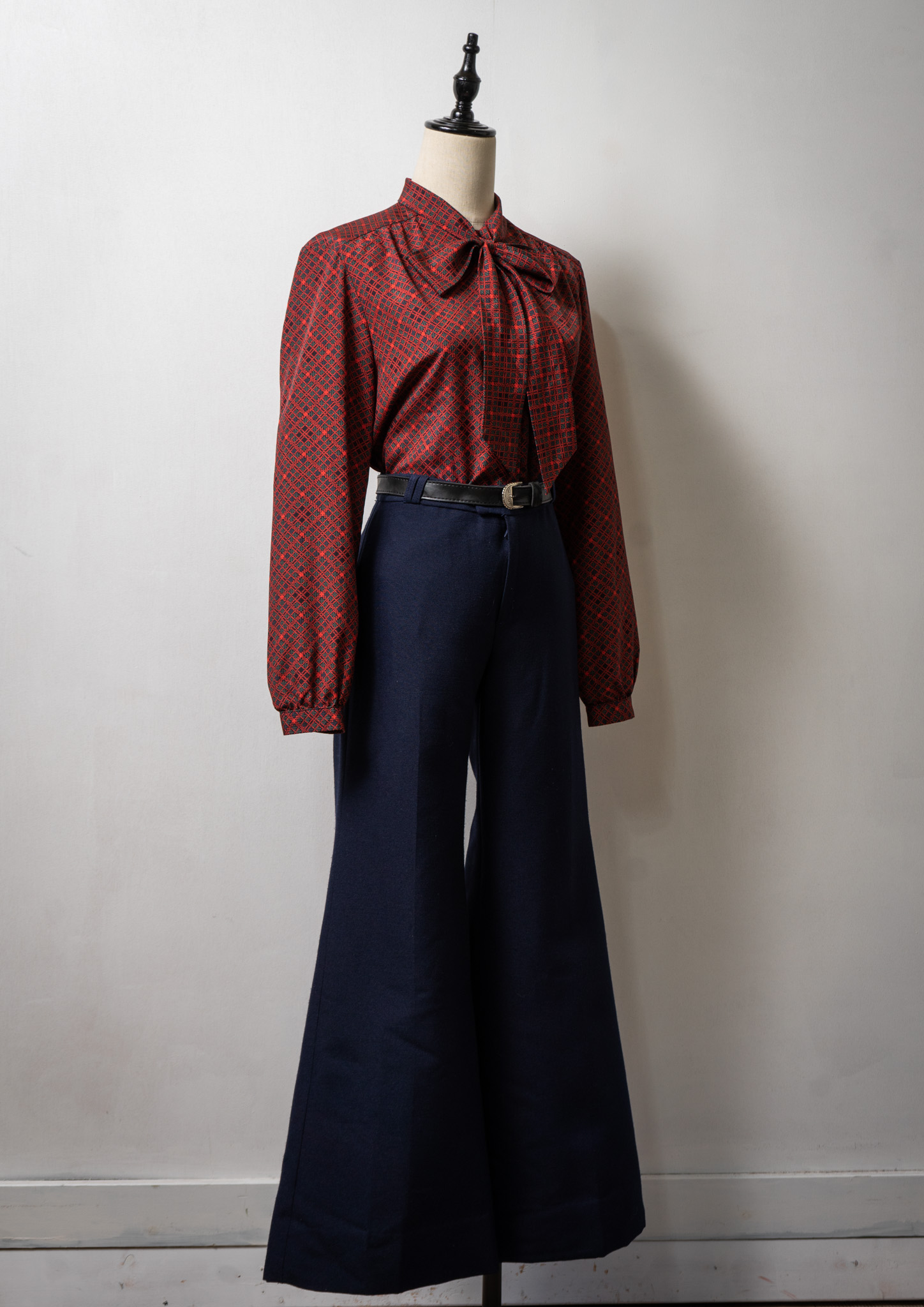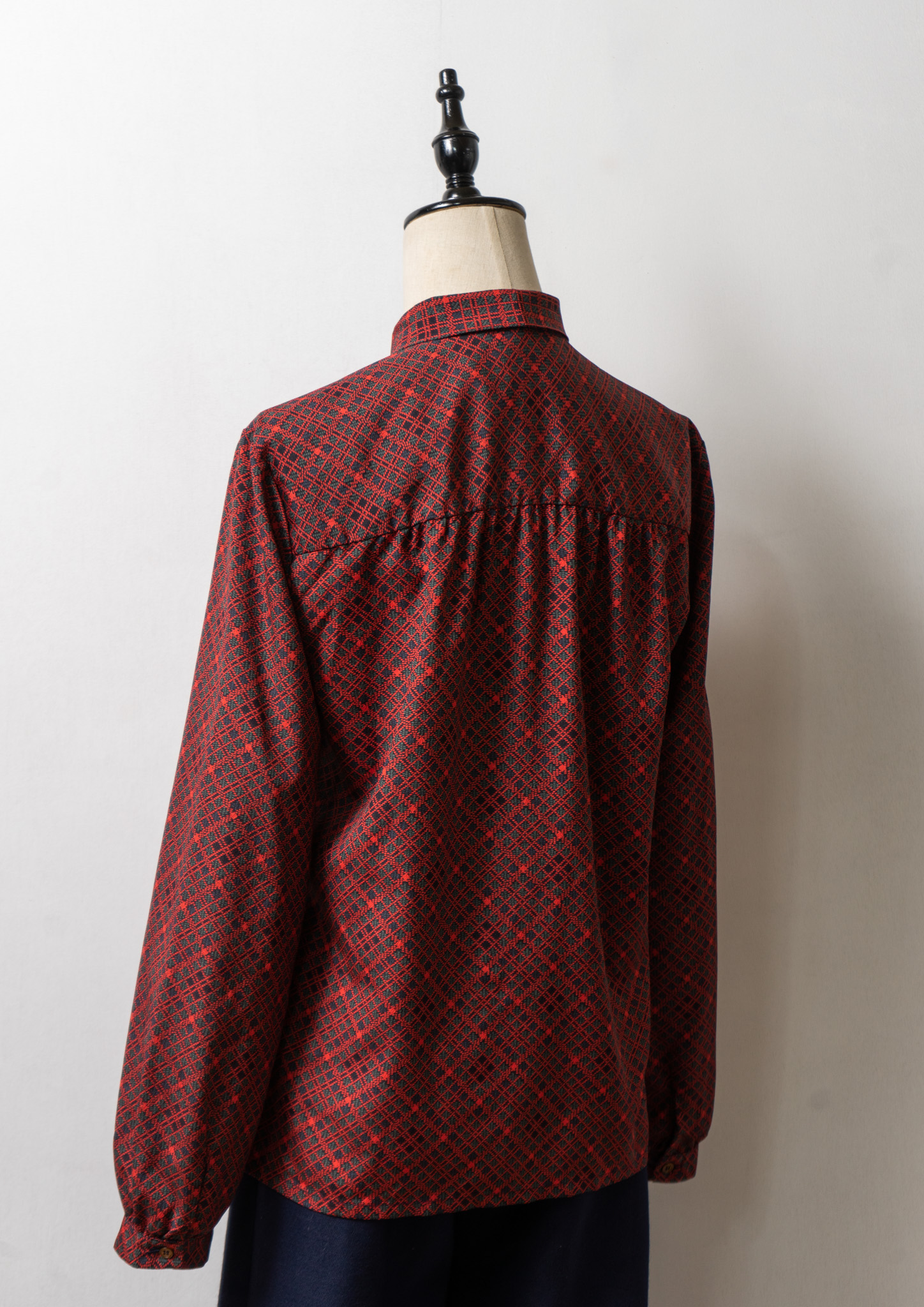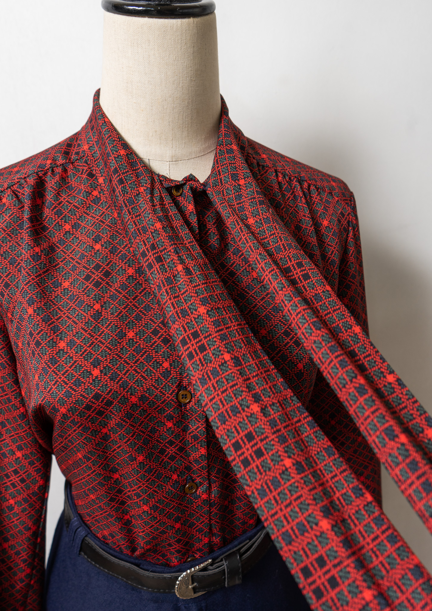 70~80's Dot Check Pattern Bow-tie Blouse