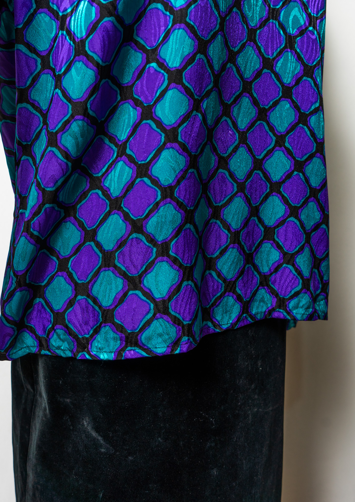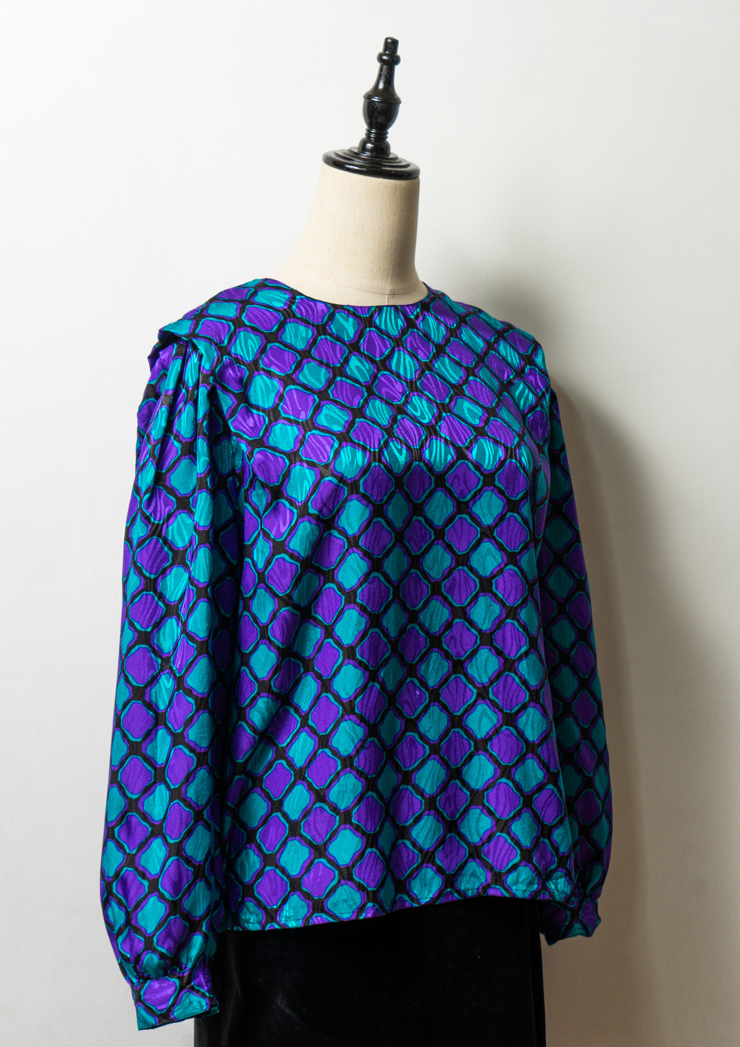 Turquoise × Purple Mosaic Like Pattern Blouse