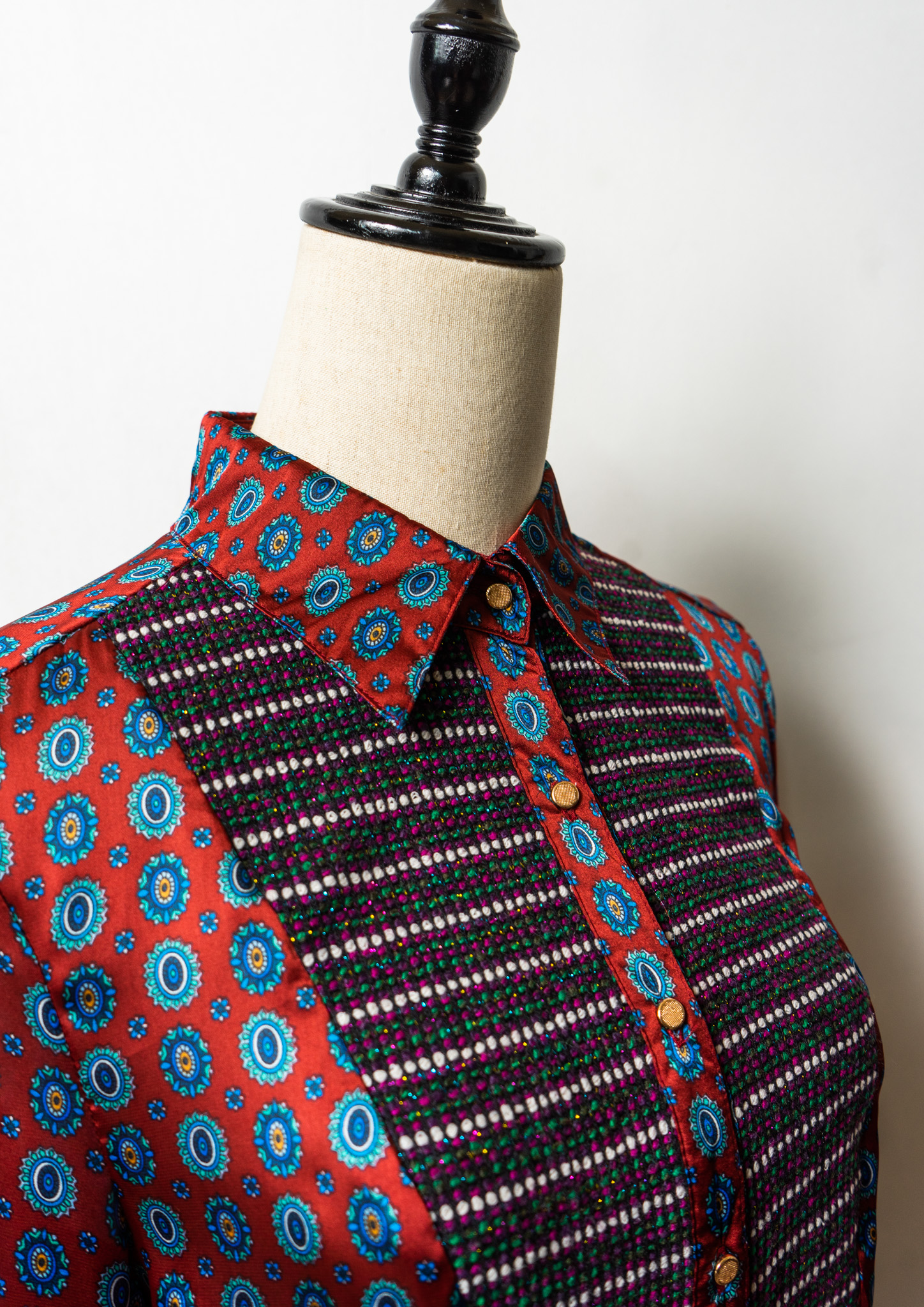 Medallion Like Geometric Pattern Glossy Blouse