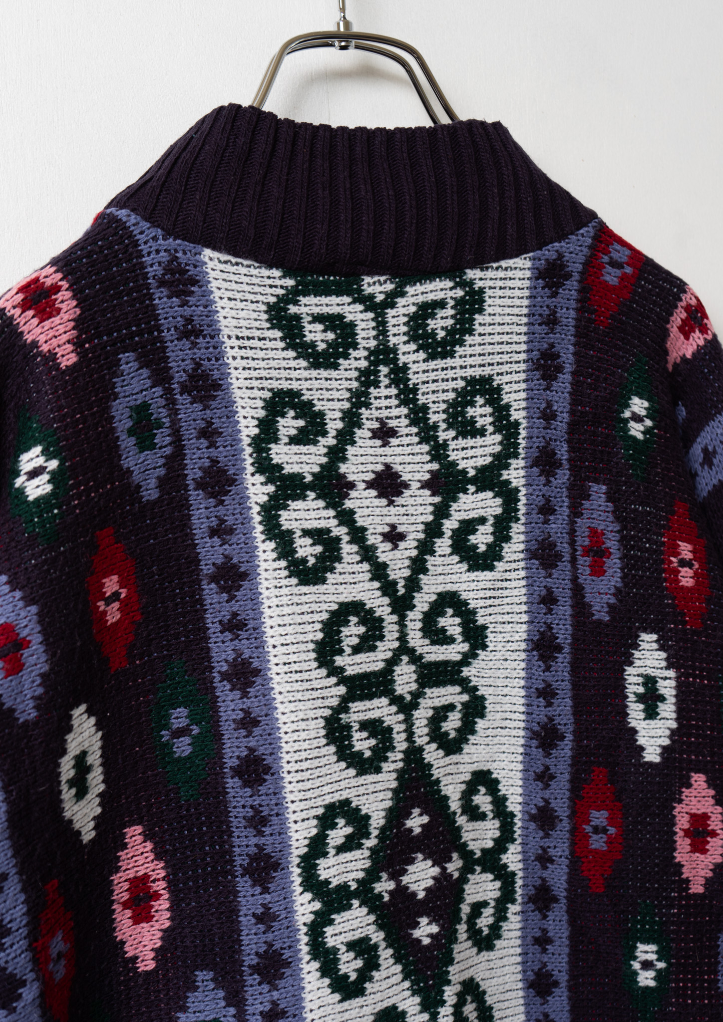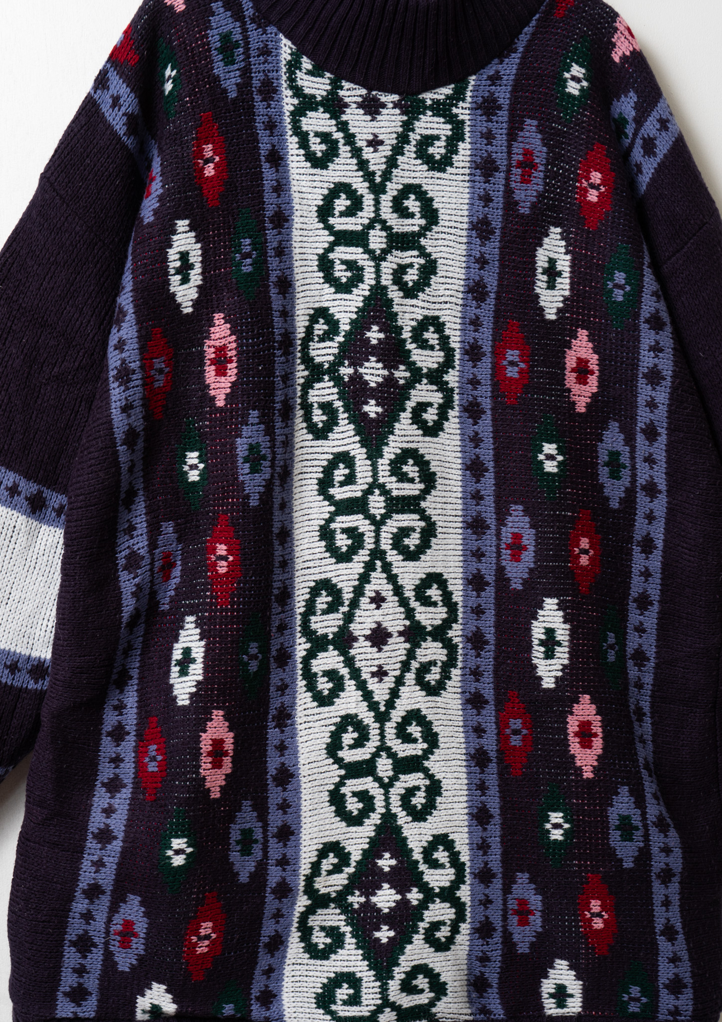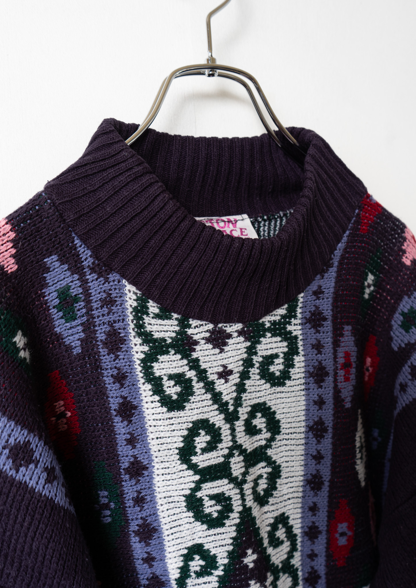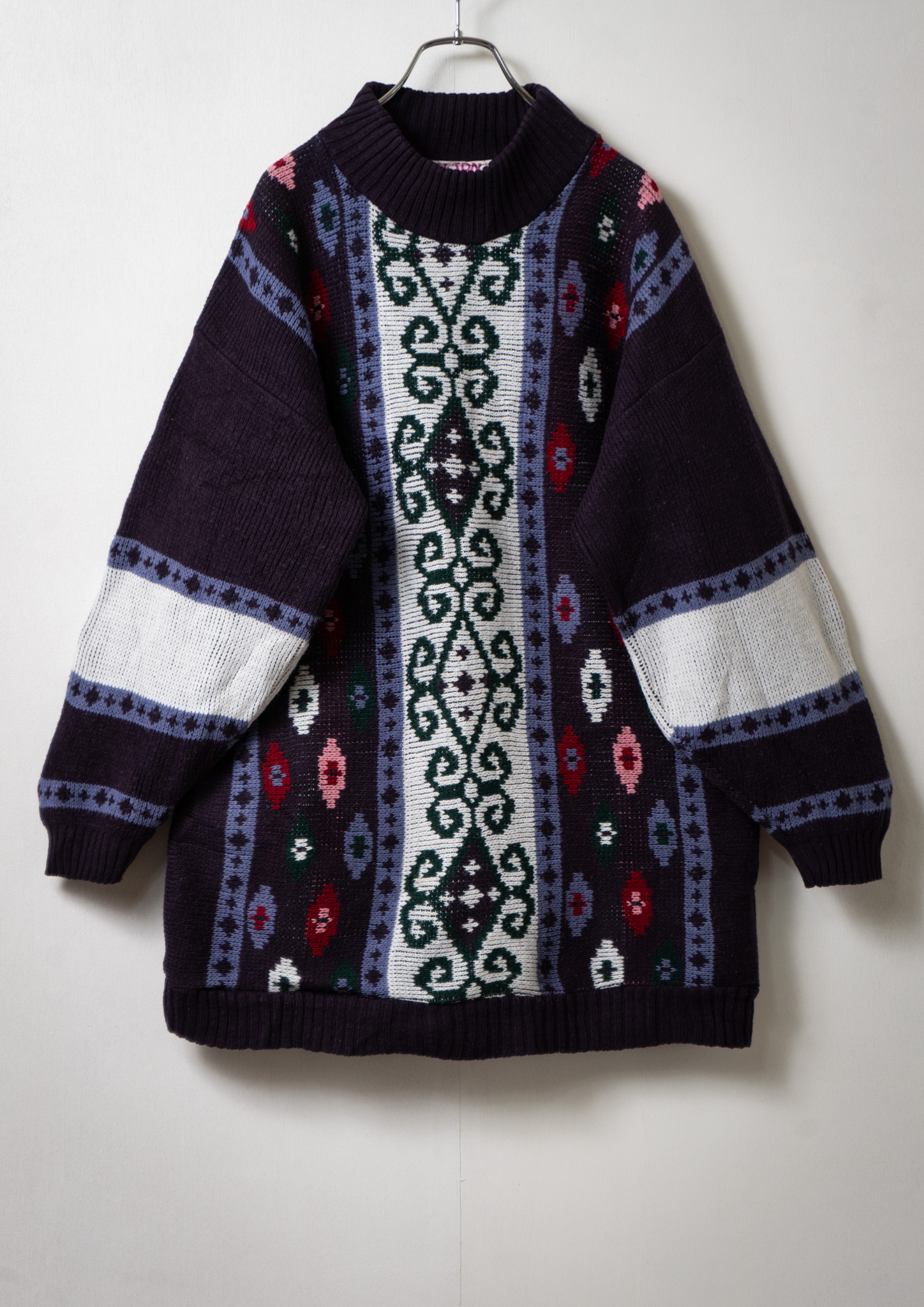 80's USA Arabesque Like Pattern Navy Sweater