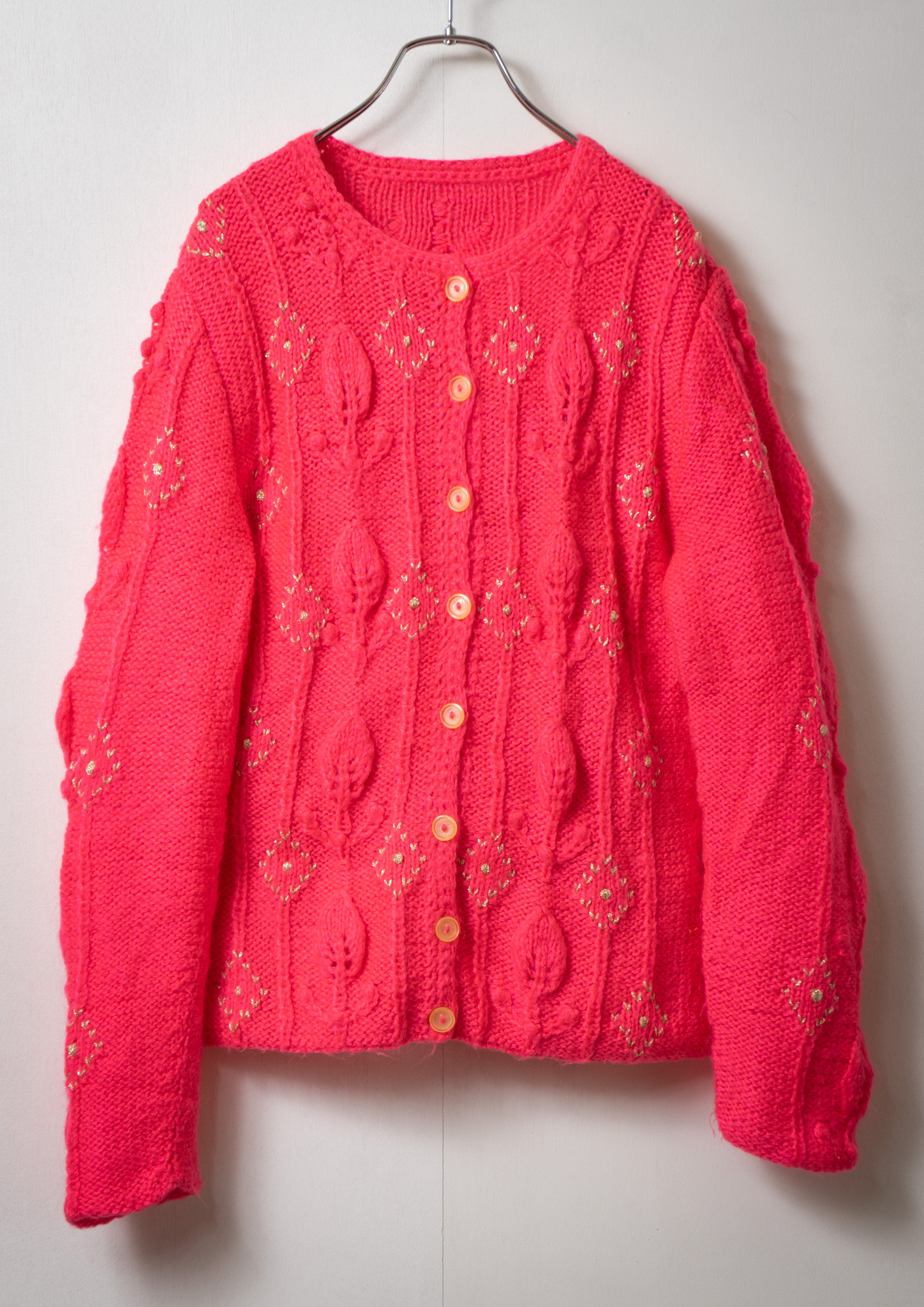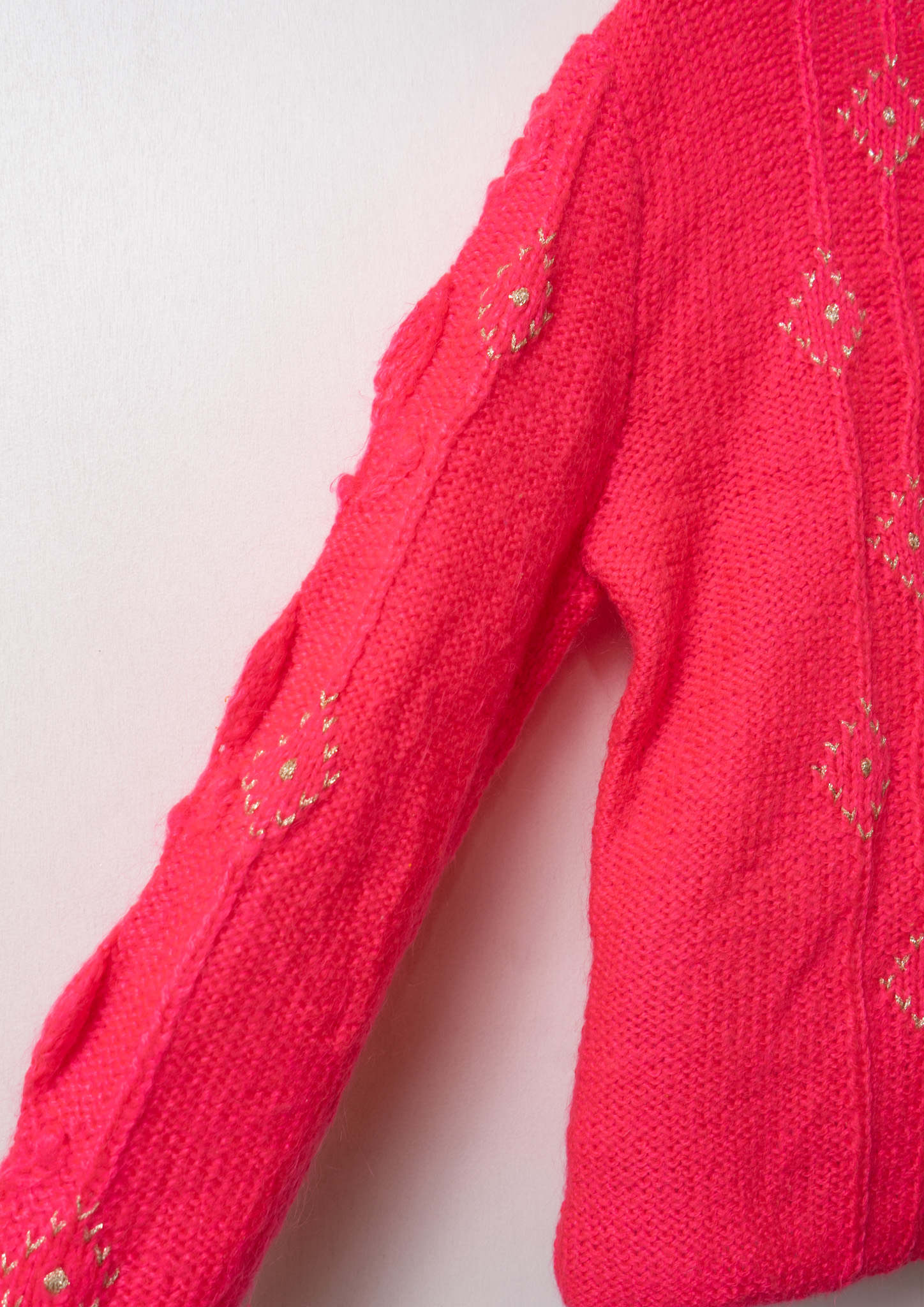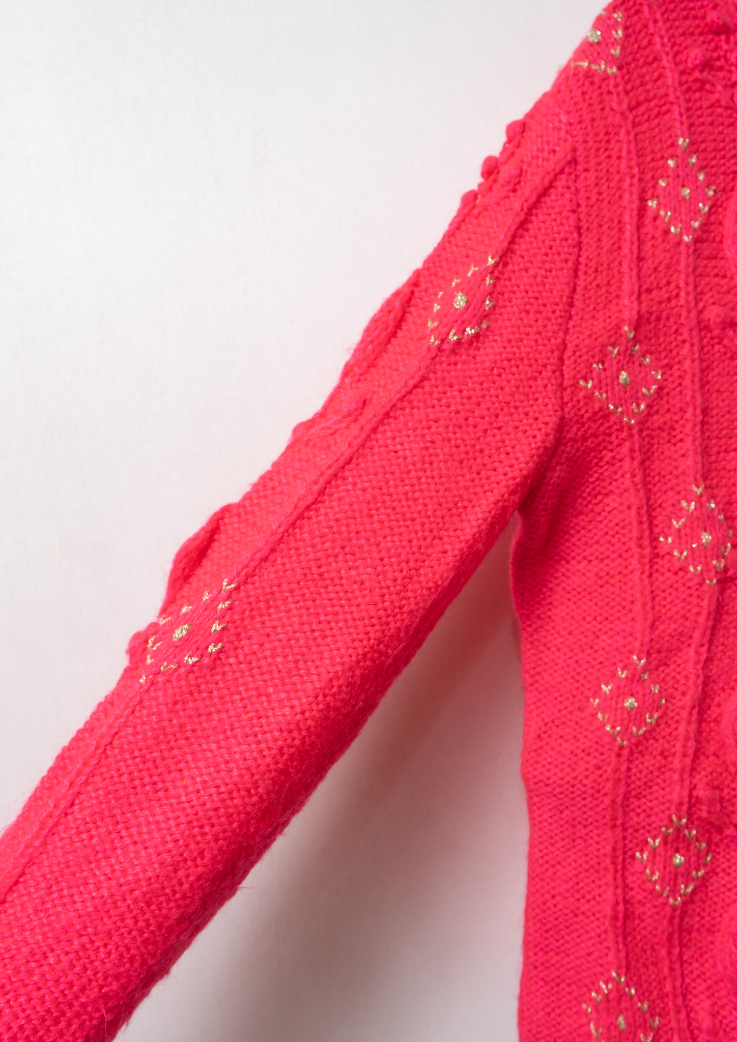 Glitter Diamond Pattern Vivid Pink Cable Knit Cardigan
