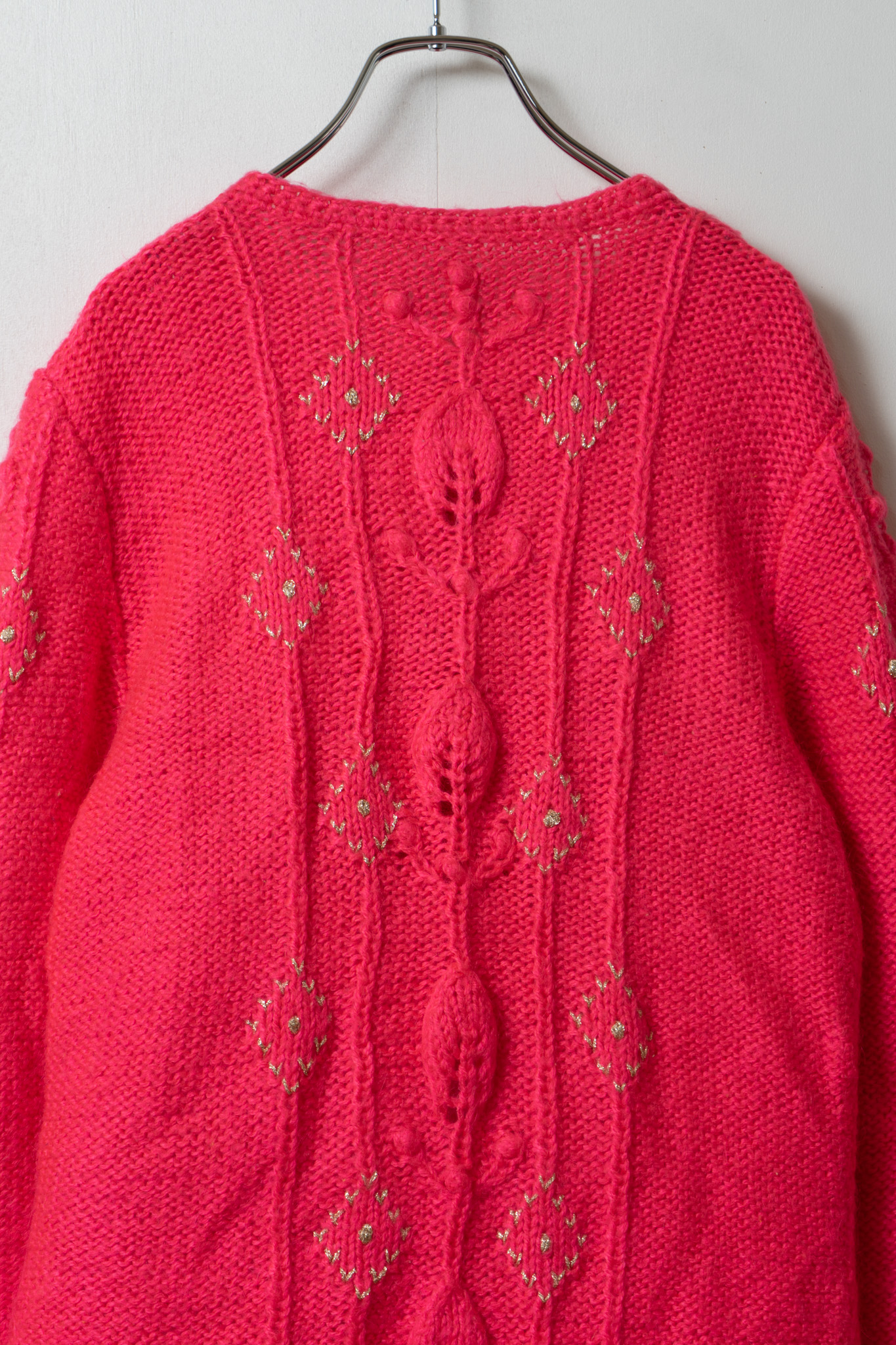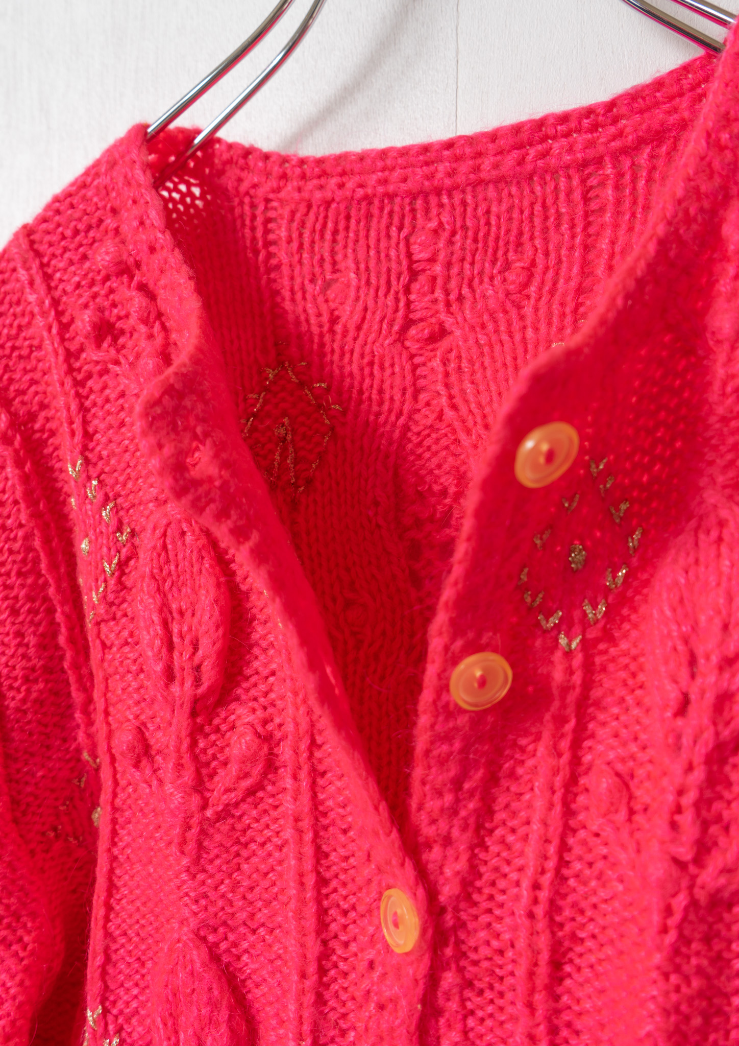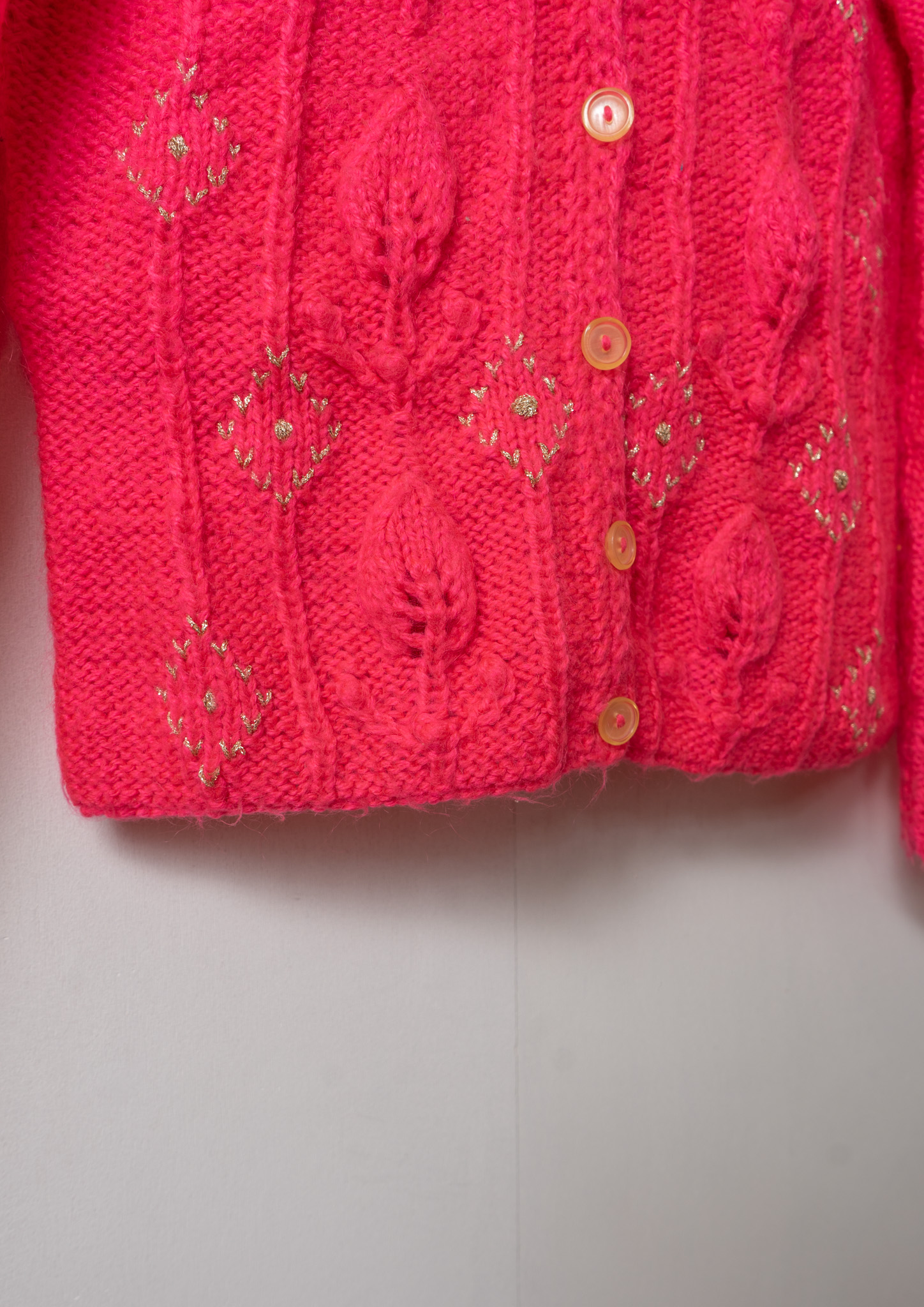 Glitter Diamond Pattern Vivid Pink Cable Knit Cardigan