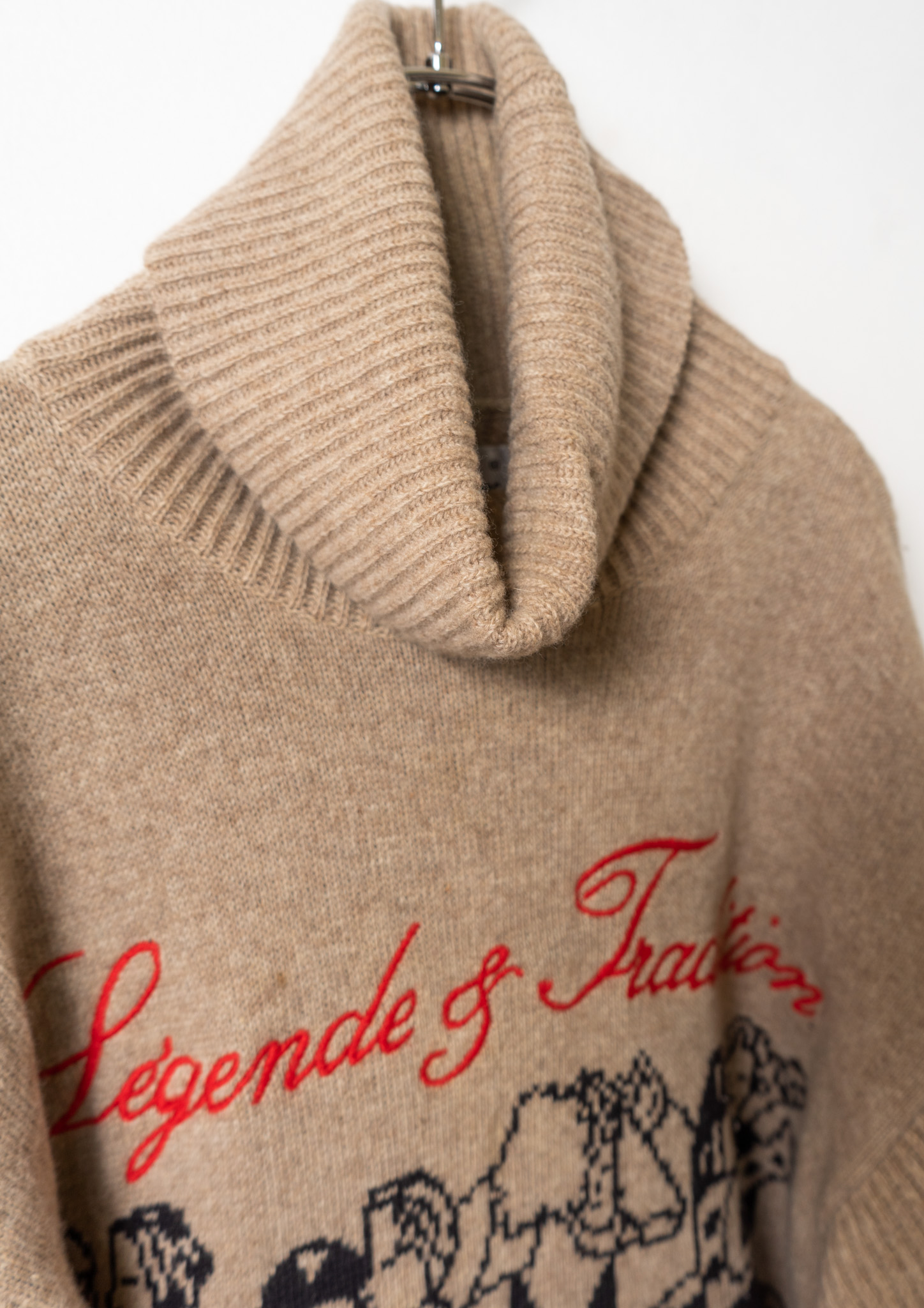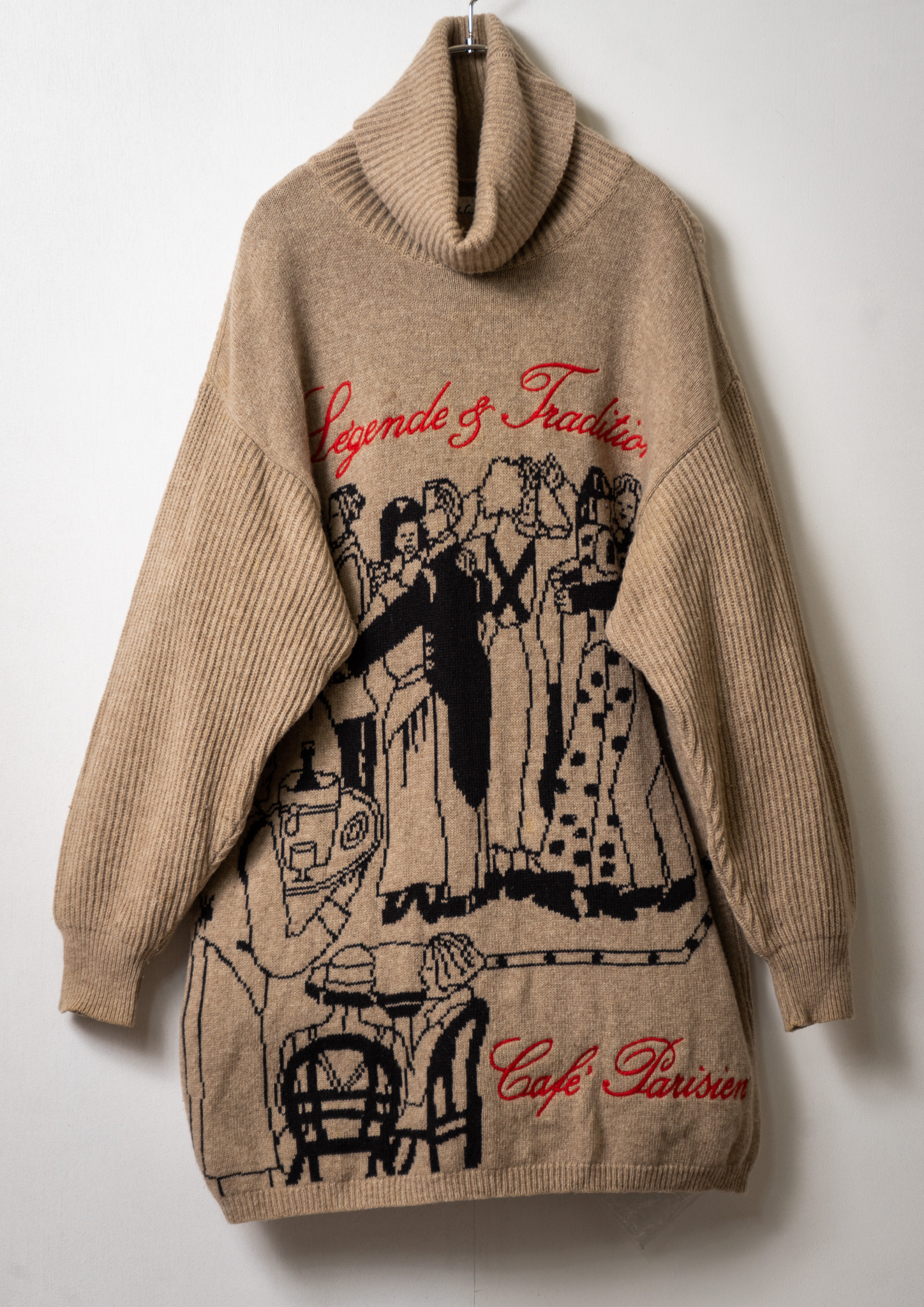 90's Itary Art Pattren Off Turtleneck Beige Sweater