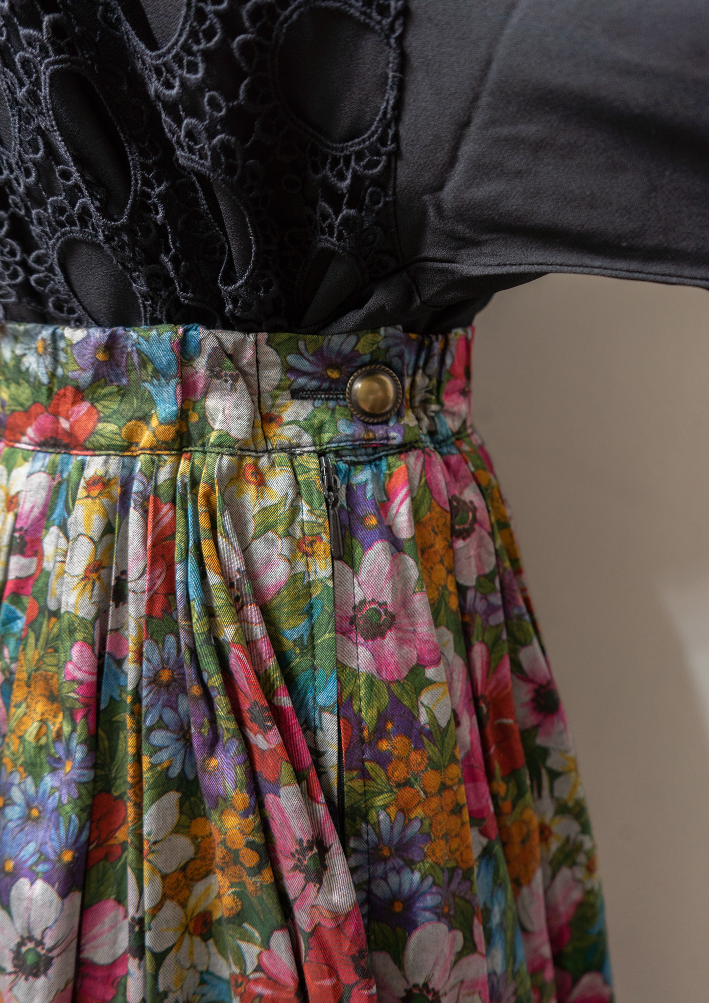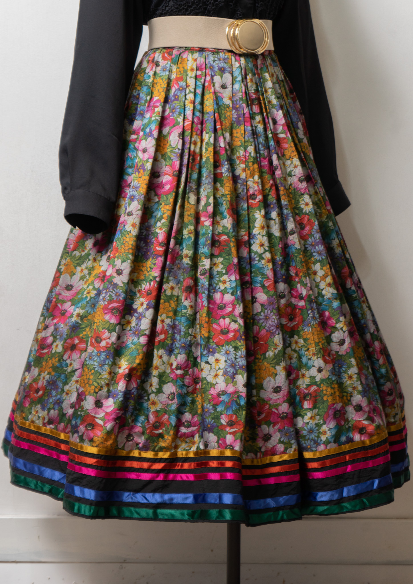 90's Euro Flower Stripe Pattern Tiered Skirt
