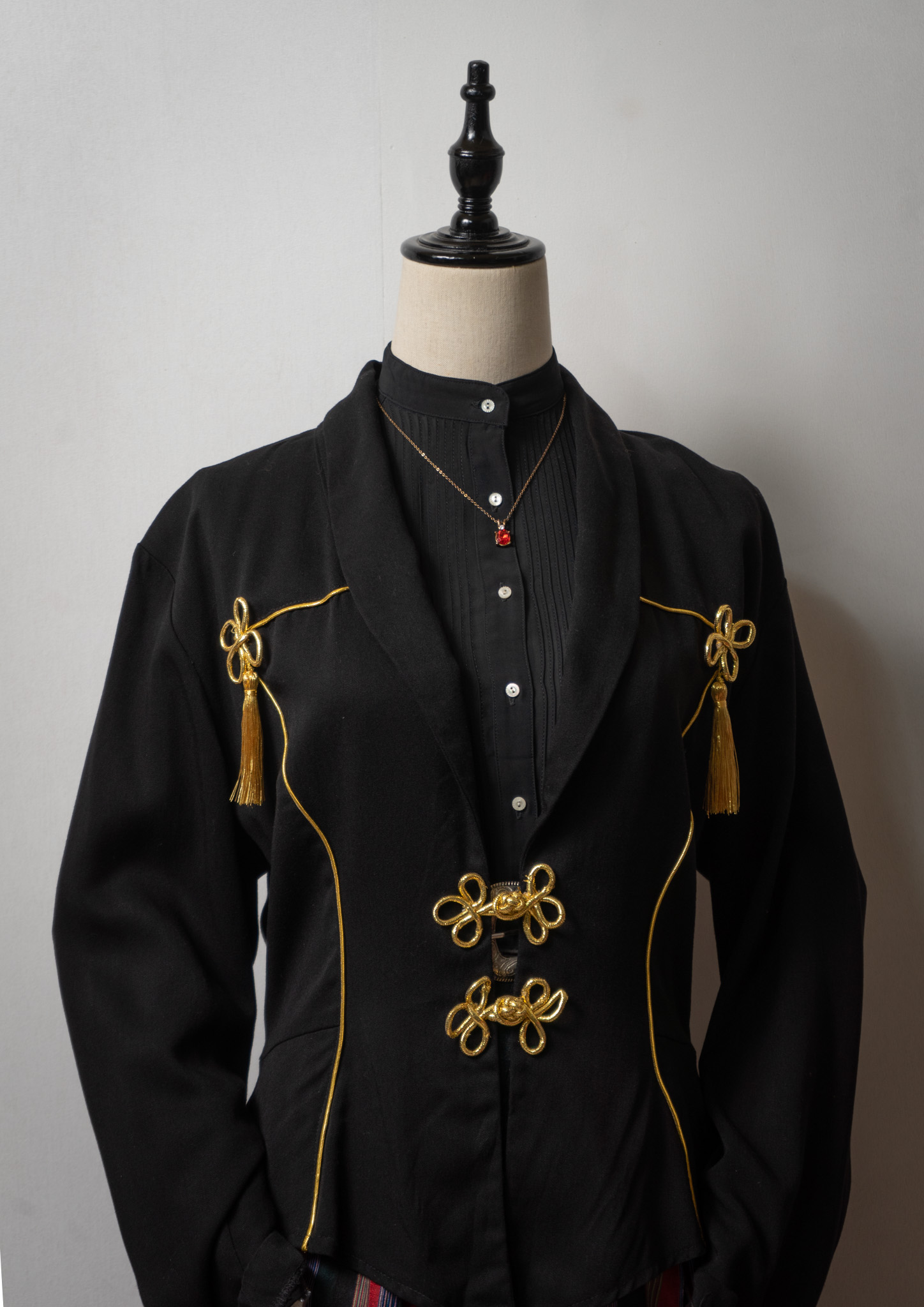80's USA Hem Design Gold China-button Black Jacket