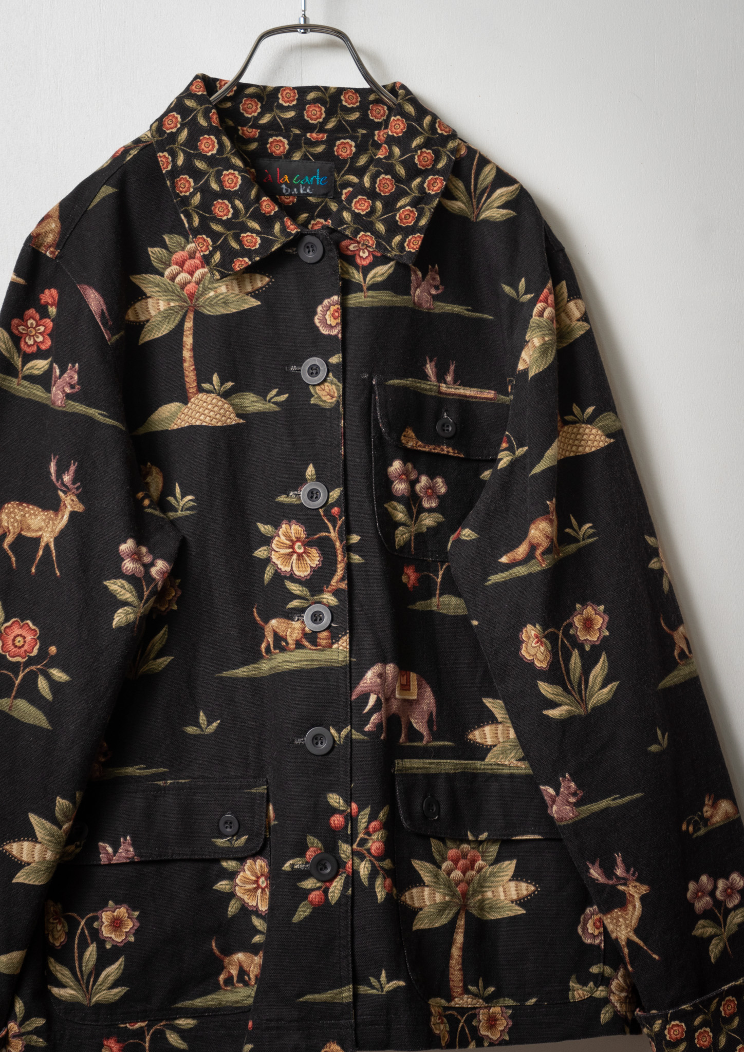 90's USA Animal × Flower pattern Black Jacket