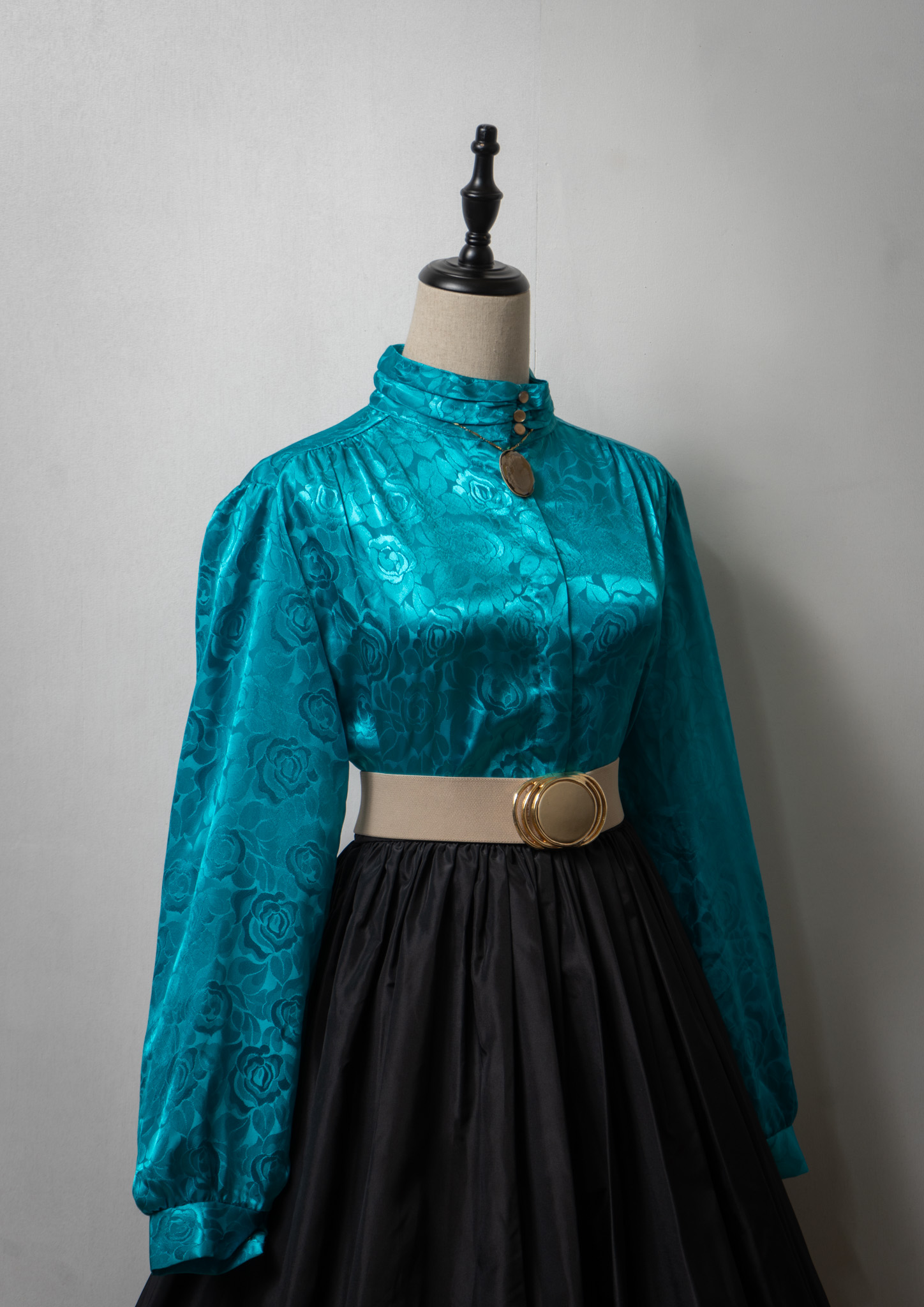 80's USA Rose Jaqard Pattern Blouse