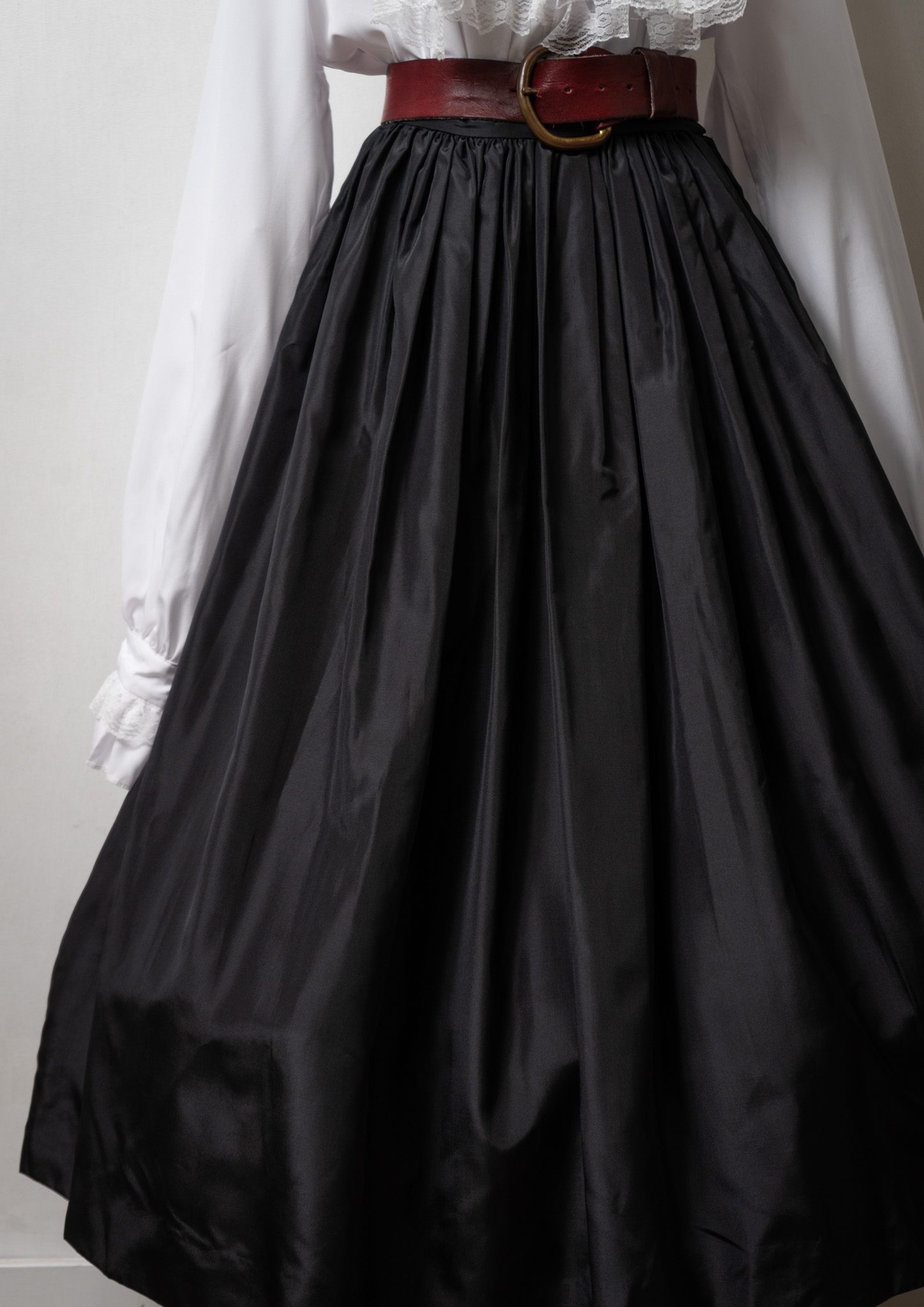 90's Fringe × Indian Like Charm Design Black Suede Skirt