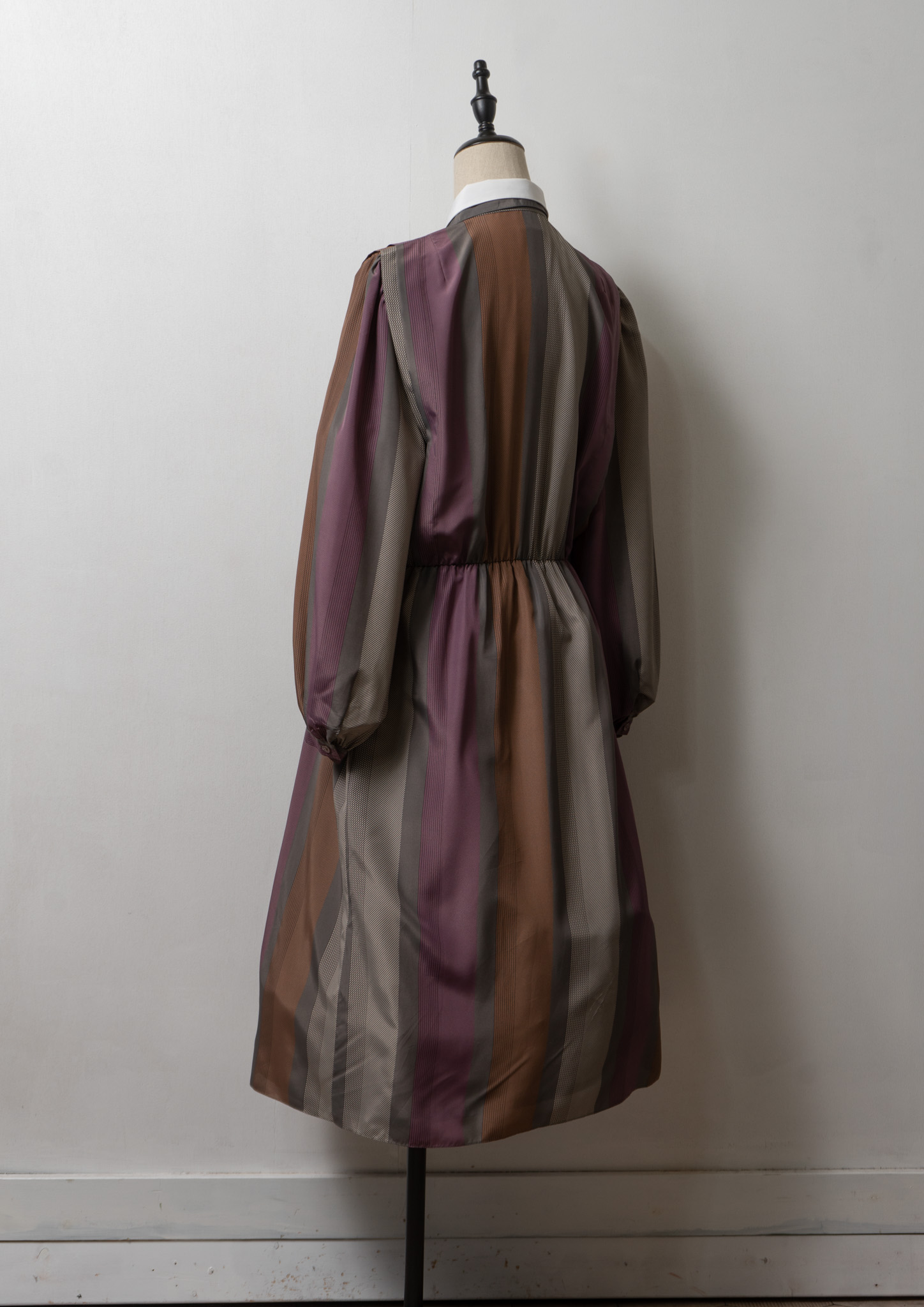 80~90's C&A Tuck Design Stripe Pattern Dress