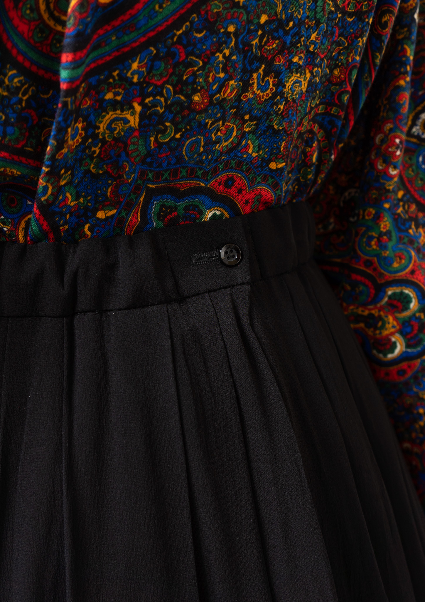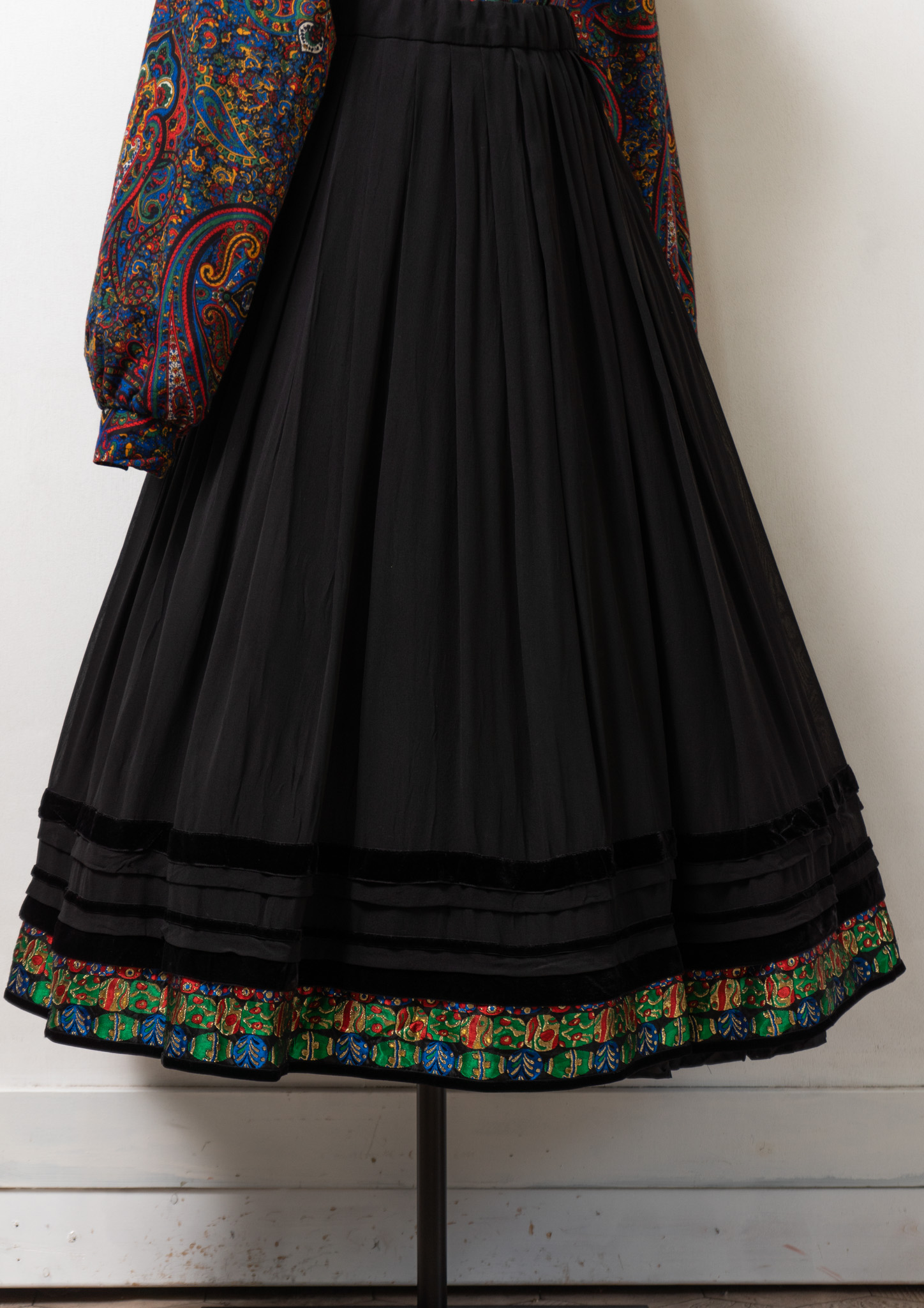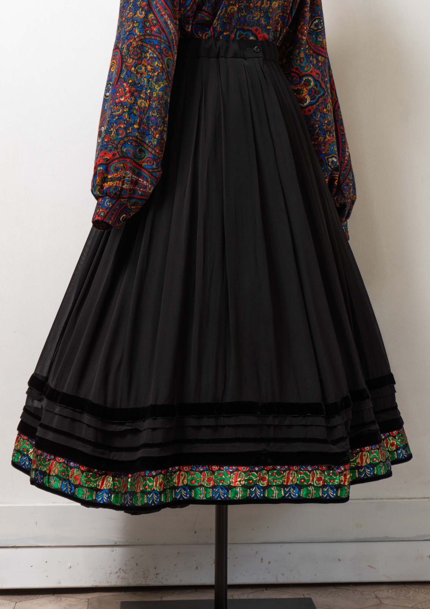 80's Euro Velours & Embroidery Tape Design Black Sheer Skirt