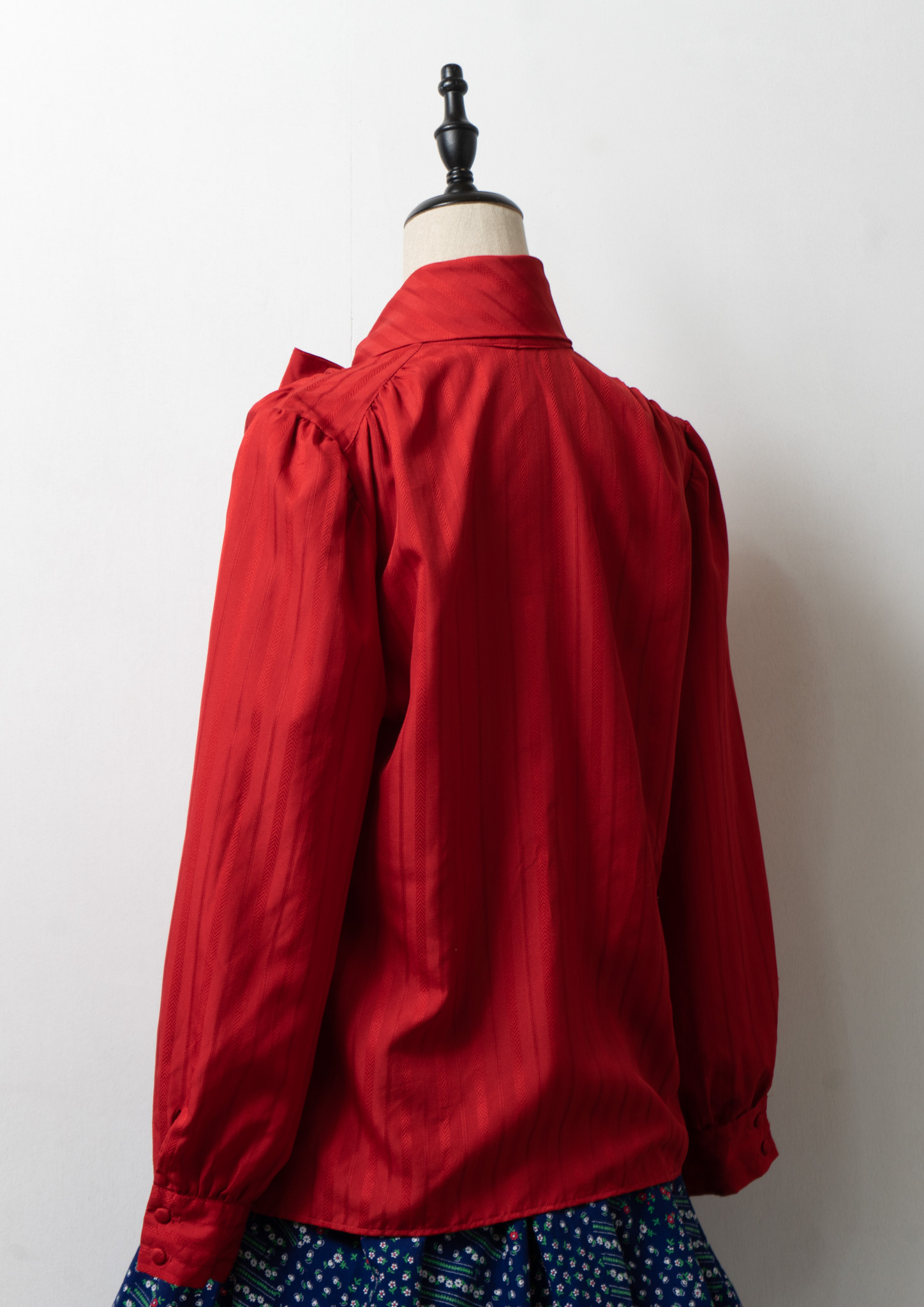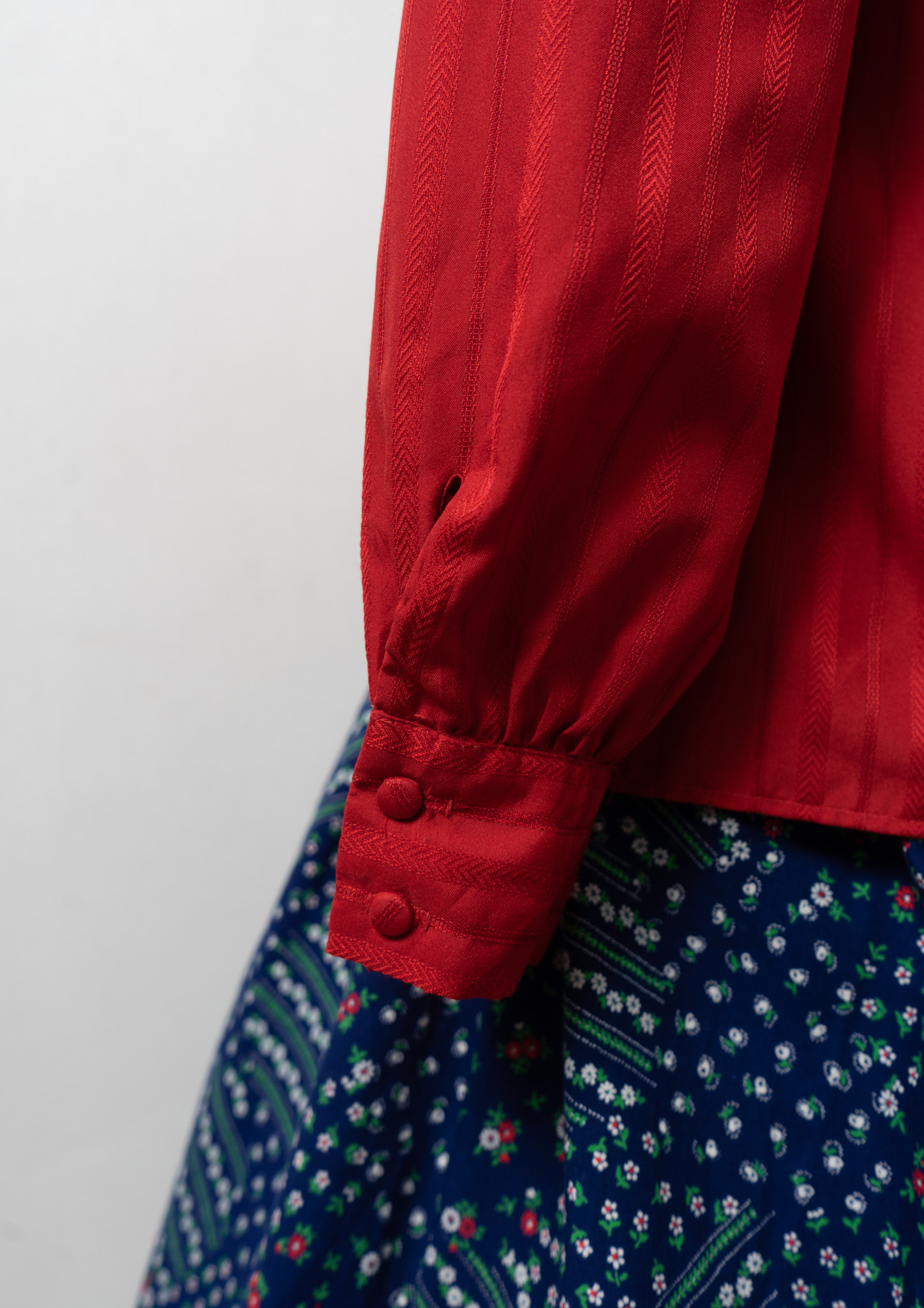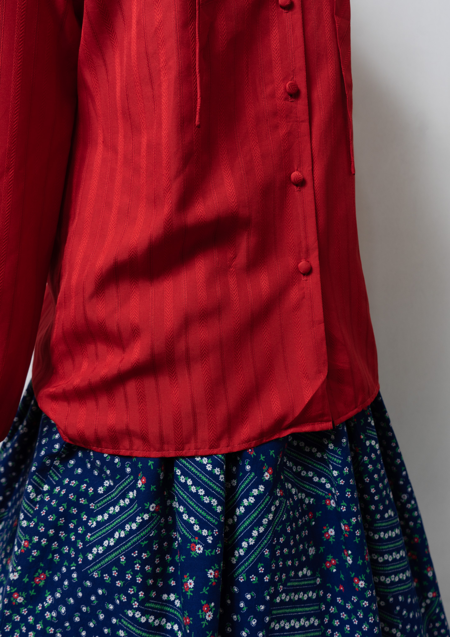 80's Paisley Flower Pattern Tuck Design Stand Neck Tops