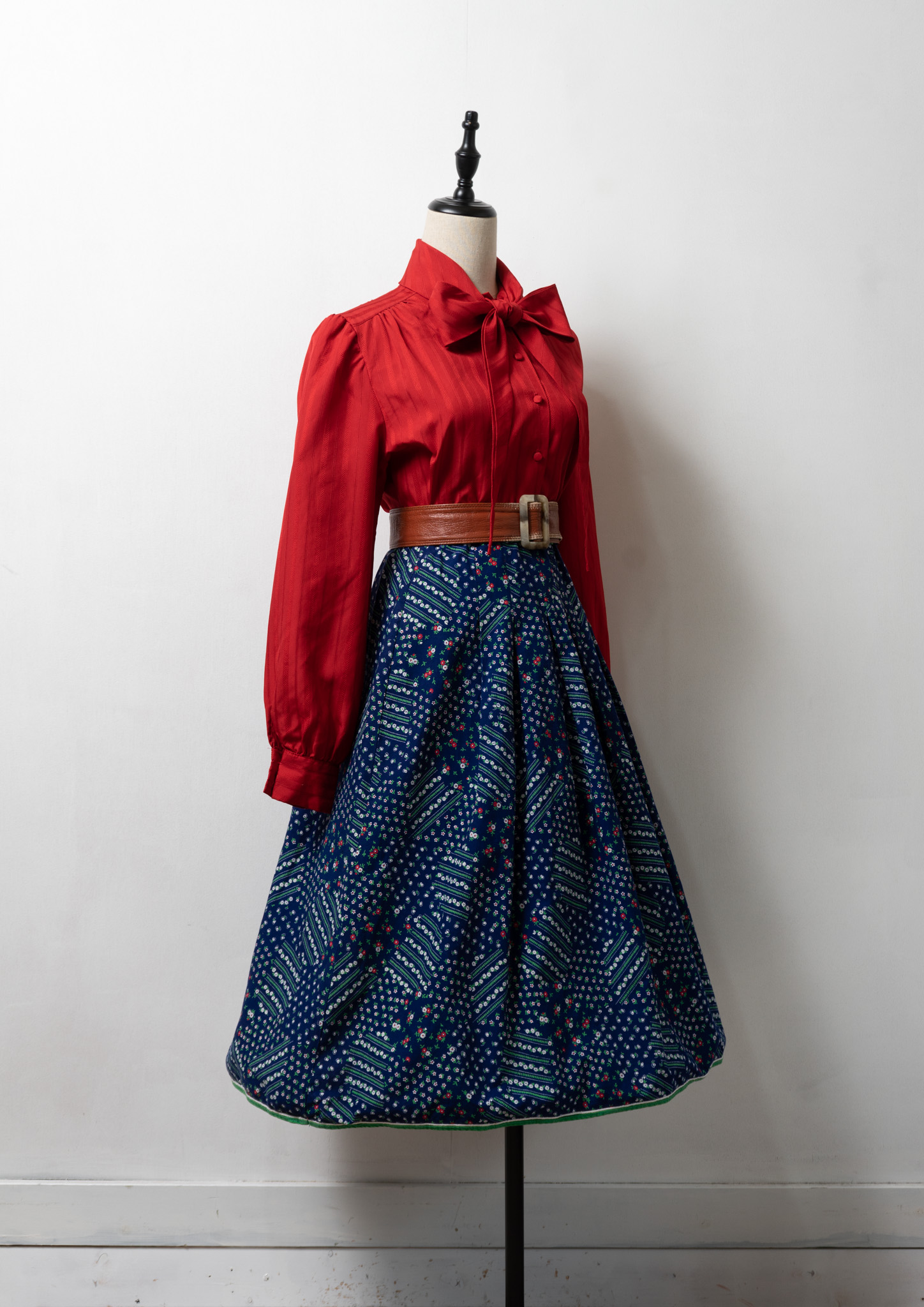 80's LESLIE FAY Paisley Pattern Double Pocket Design Blouse
