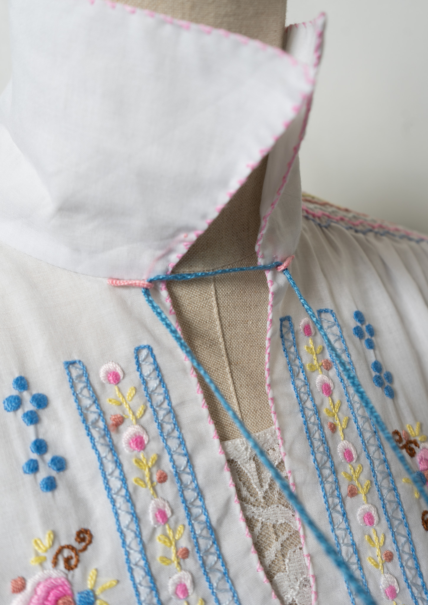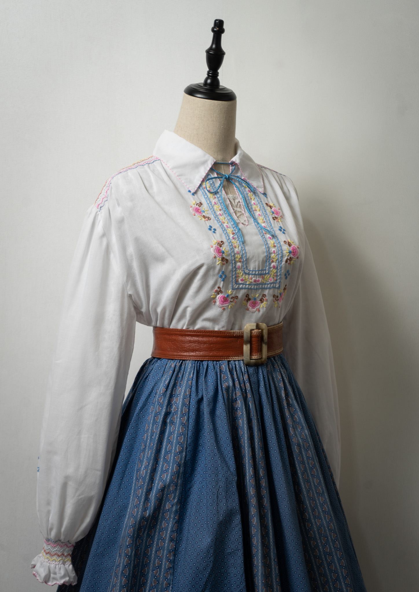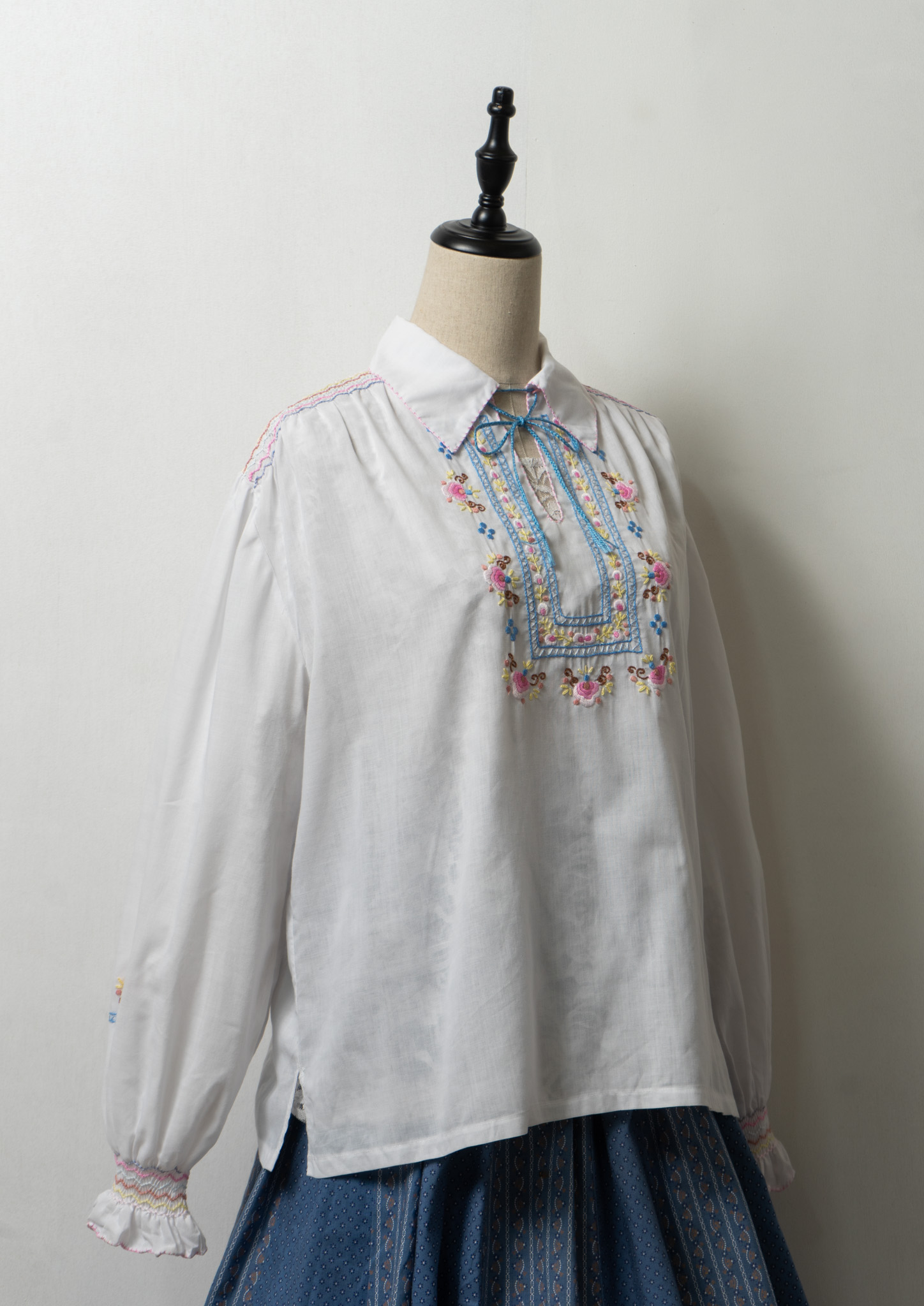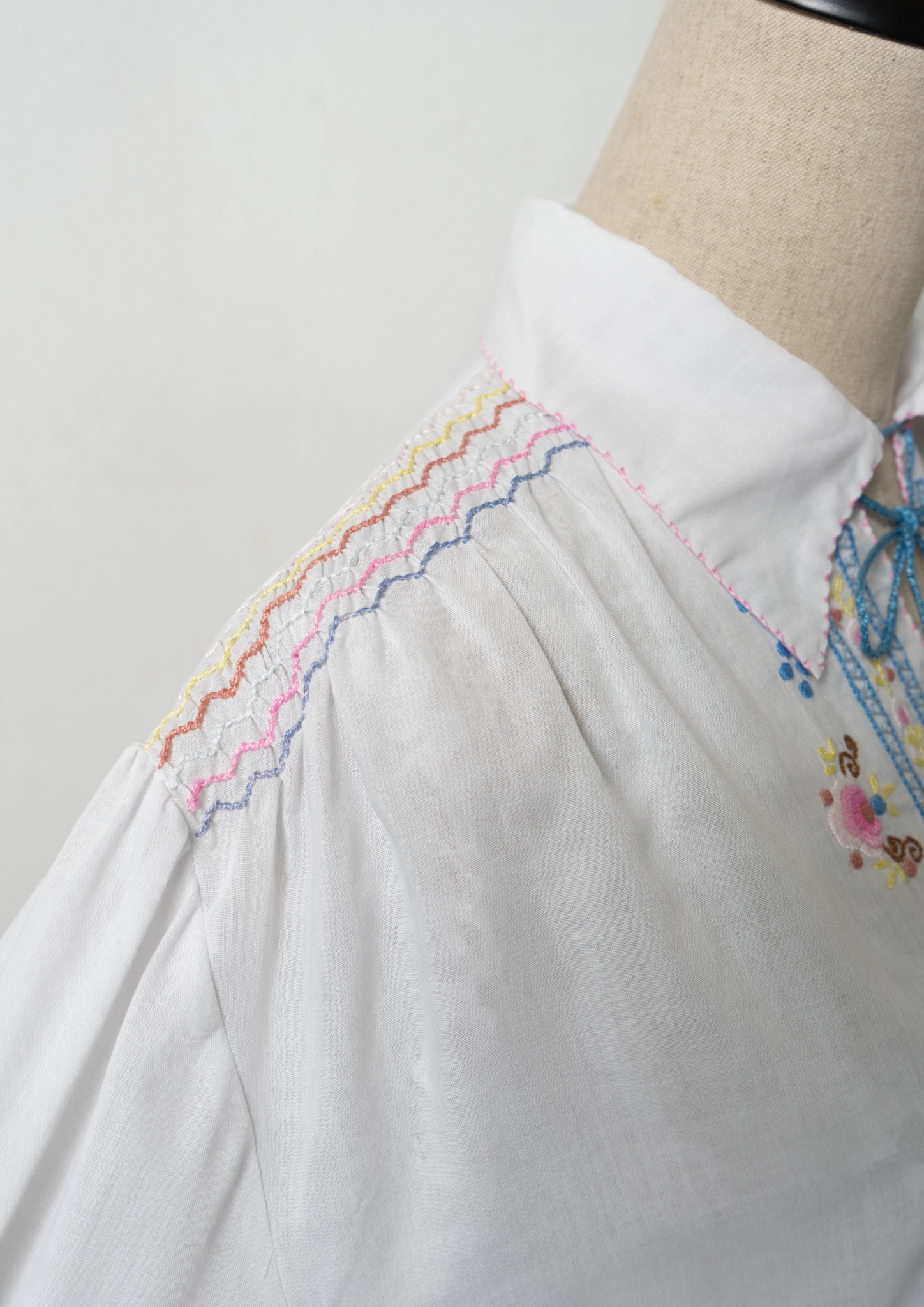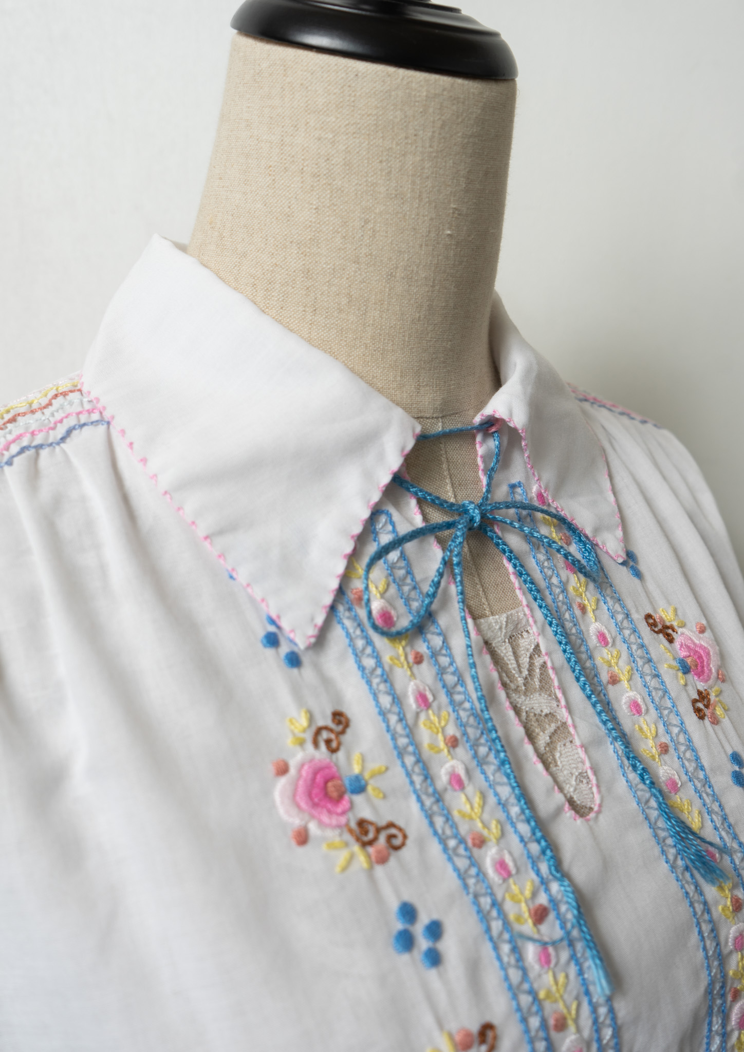 70's Multi Color Embroidery White Tops