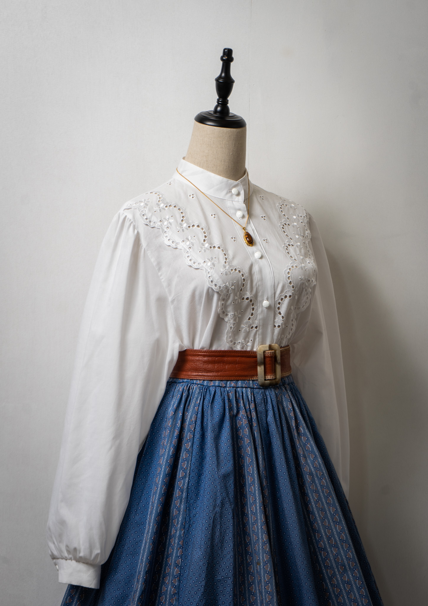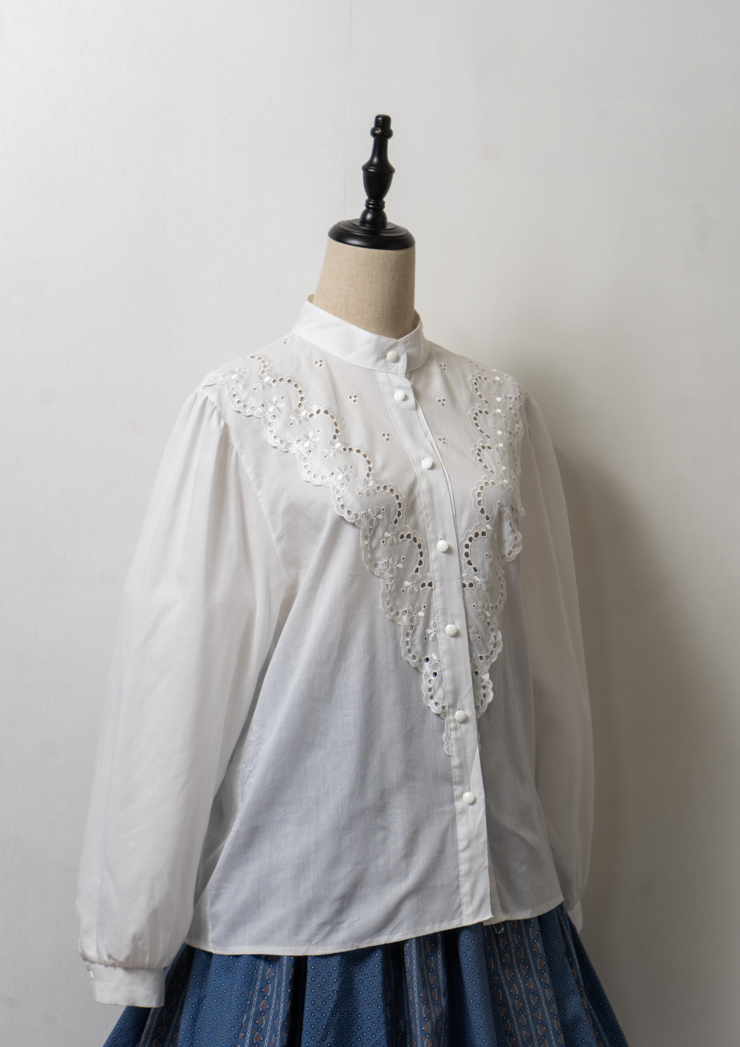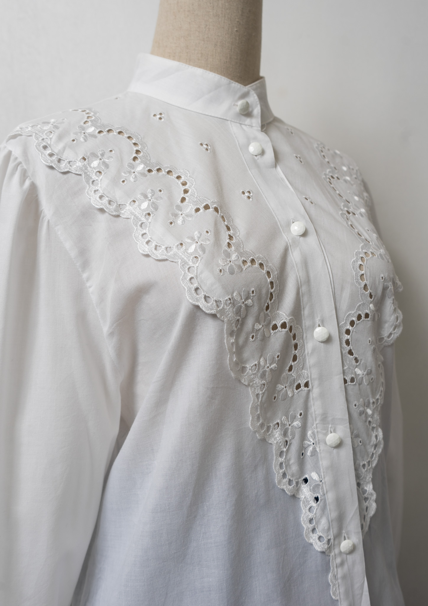 80~90's Lace Pattern White Blouse