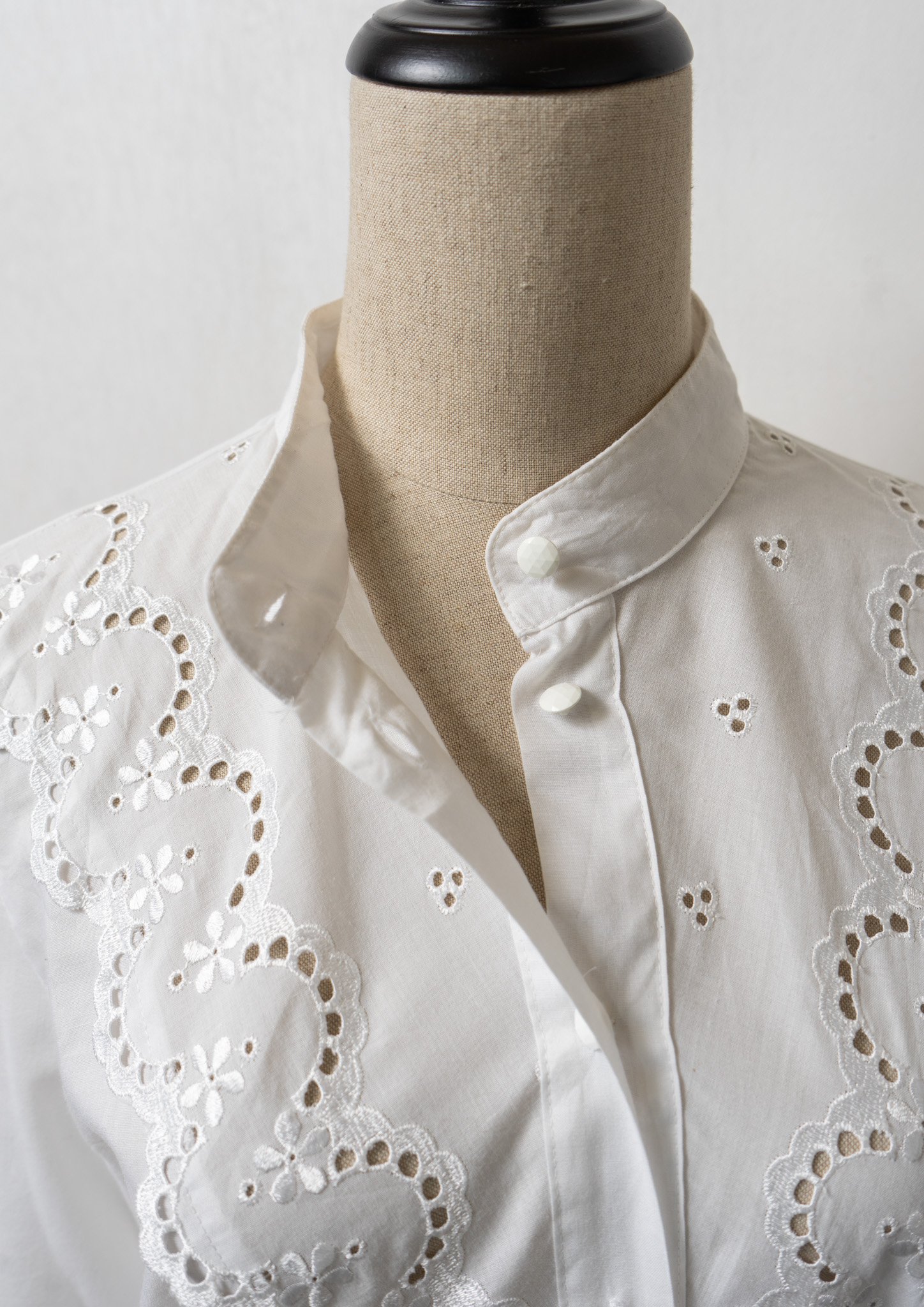 Scallop Lace Design Flower Embroidery Pattern White Blouse